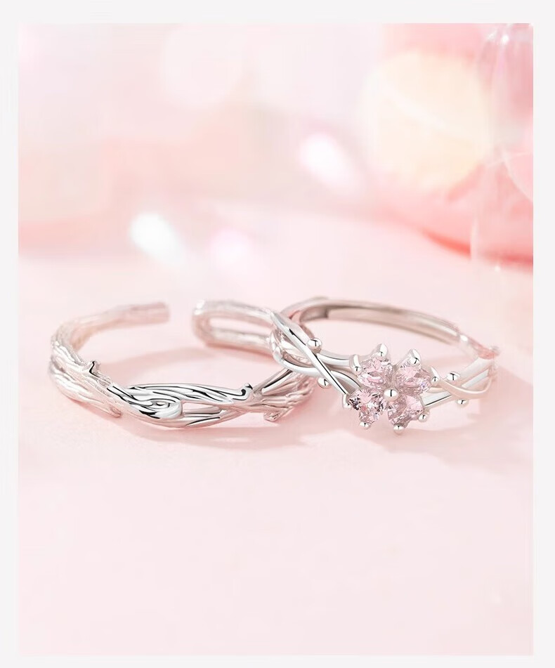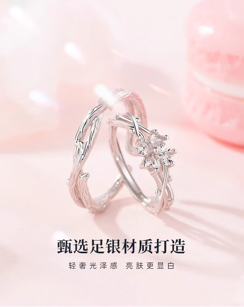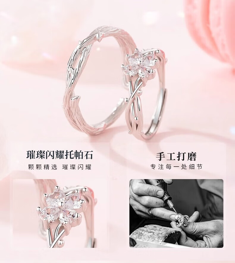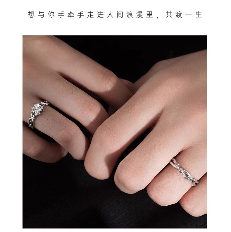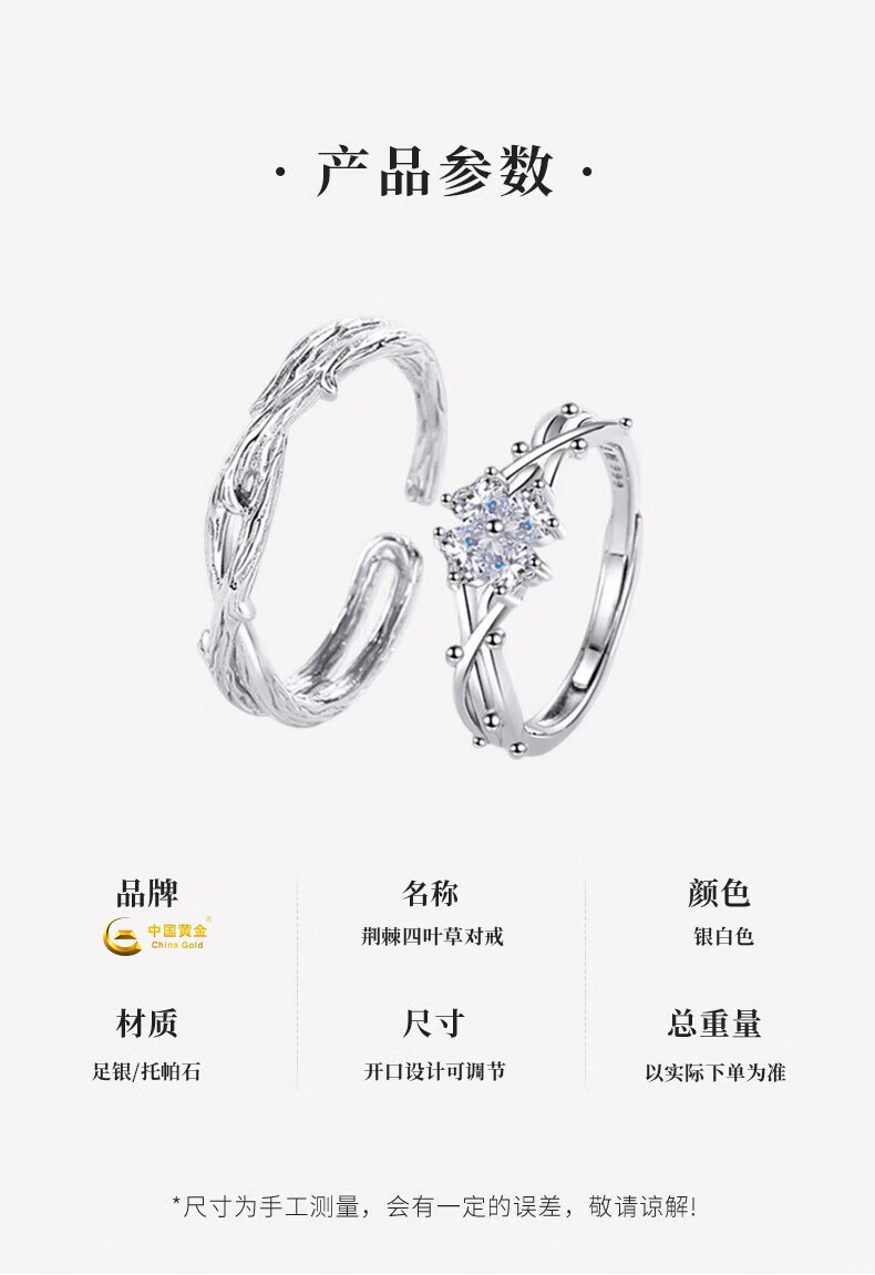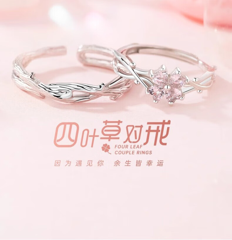 China Gold 990 Pure Silver Thorns and Four-leaf Clover Couple Rings Pair of Rings Wedding Anniversary Gifts for Girlfriends Four-leaf Clover Couple Rings - Couple Style Rose Gift Box *Same Day/Next Day Delivery