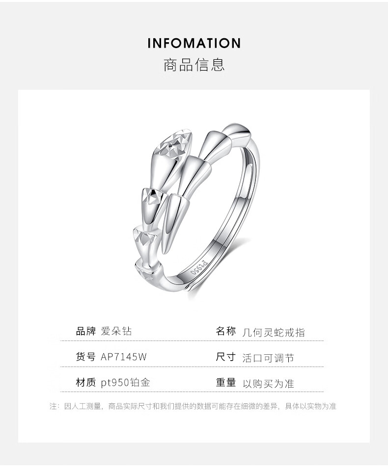 Aido diamond pt950 platinum ring for women fashionable platinum geometric zodiac snake design holiday gift weight 3.2-3.4 grams