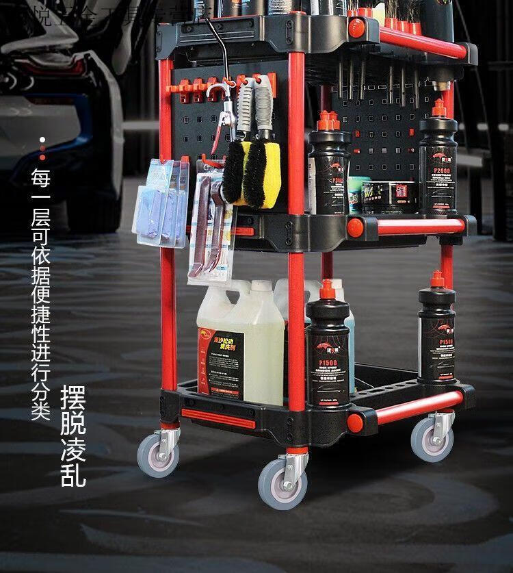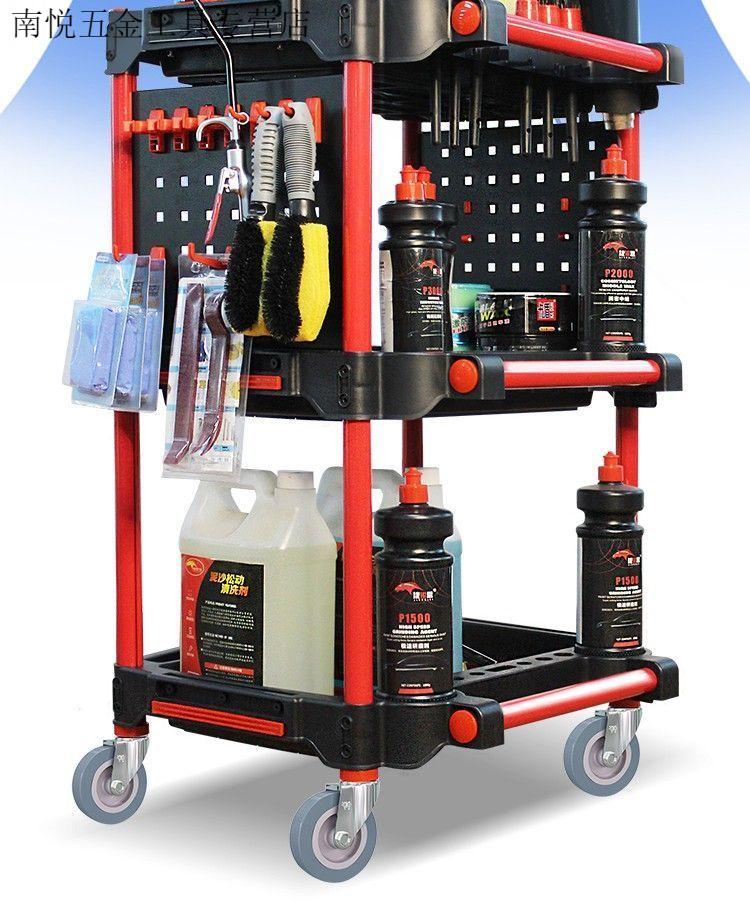 An Junsheng car wash shop car beauty tool cart special multi-functional plastic three-layer mobile storage trolley shelf TM-A tool cart without bucket (flat plate)
