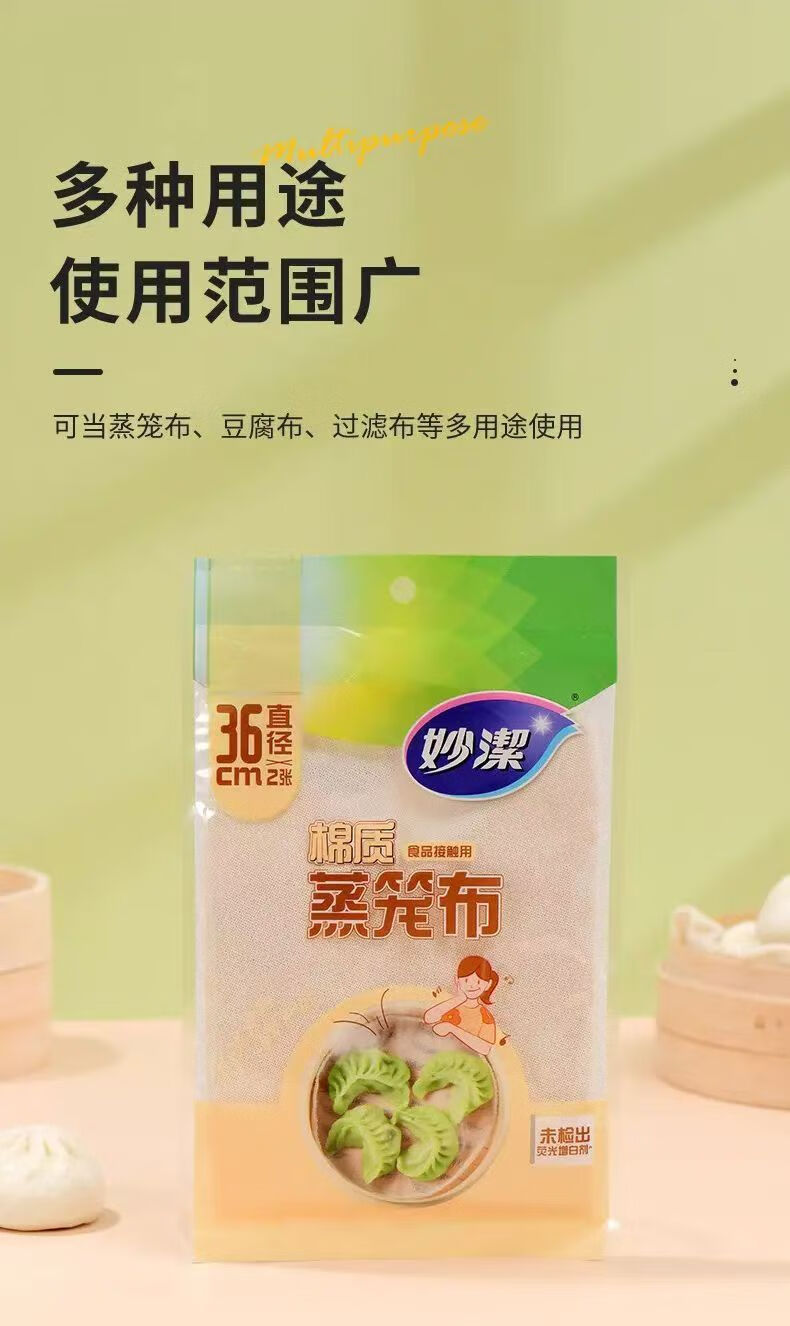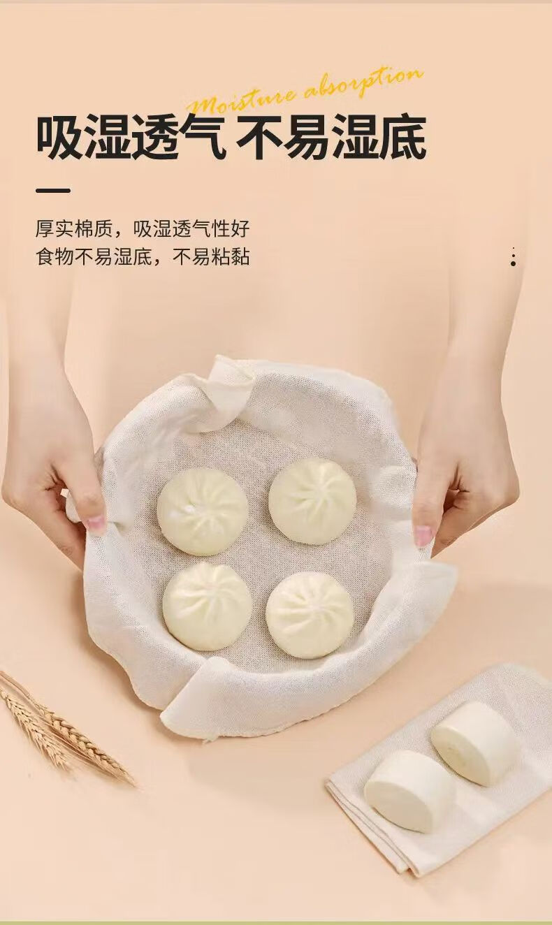 Miaojie steamer cloth food grade pure cotton steamer cloth kitchen household steamed buns are not easy to stick and reusable gauze (diameter 30cm) steamer cloth 1 pack total 2 pieces