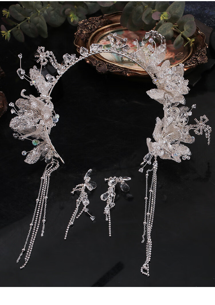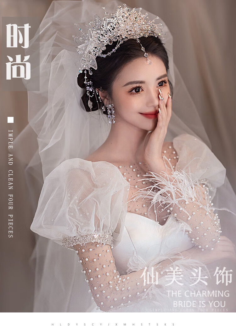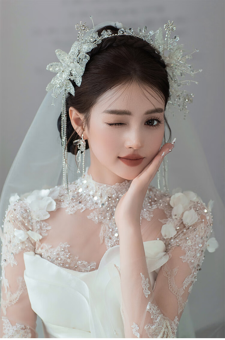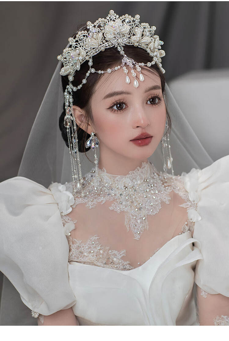 Princess Shiyun Bride’s Noble Crown Headdress 2025 New Style Heavy Industry Korean Crystal Eyebrow Pendant Wedding Crown Meet Headband + Ear Clip