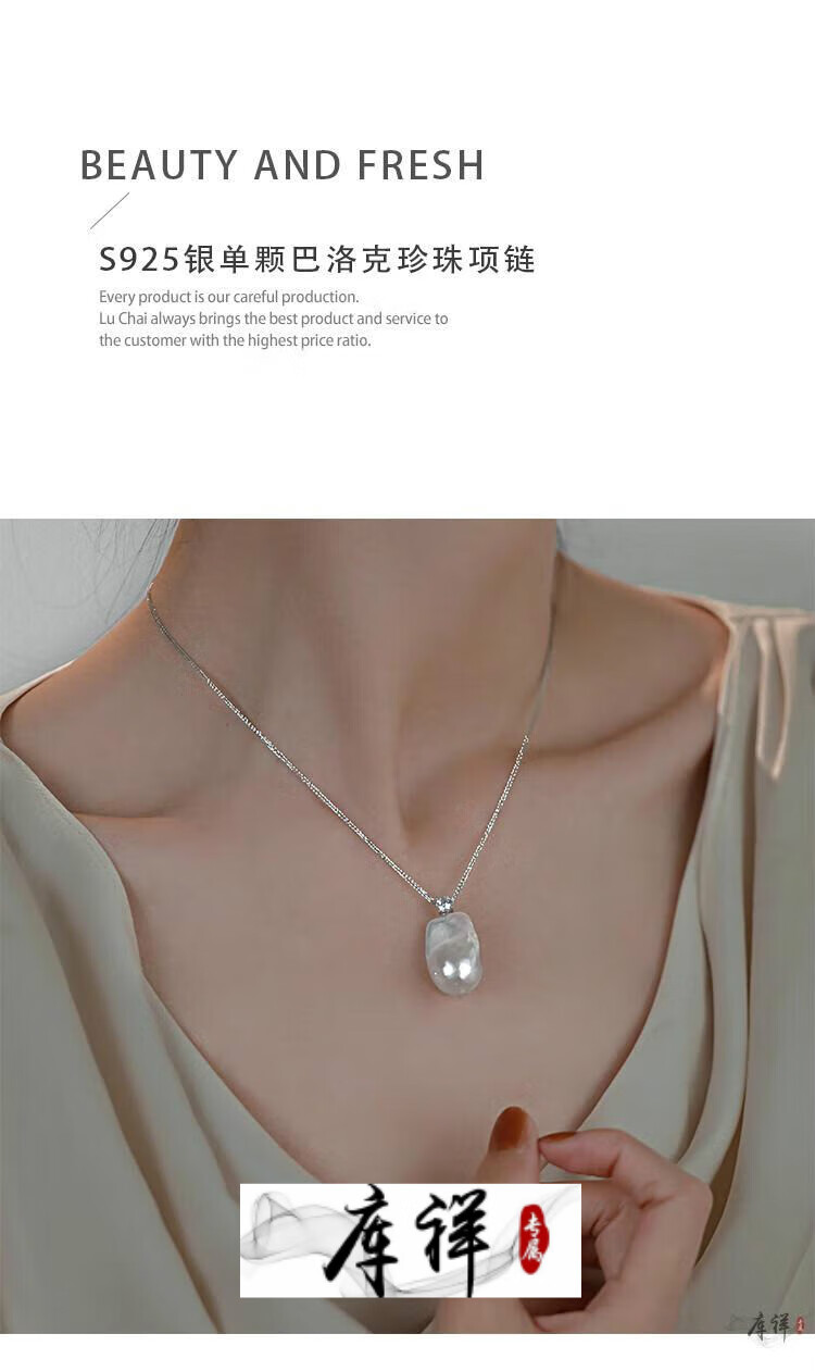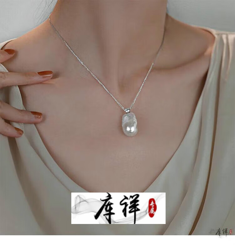 Kuxiang Baroque Pearl Pendant Sterling Silver Necklace Women's 2024 New Women's Light Luxury Niche Silver Jewelry Clavicle Chain Trendy Baroque Necklace