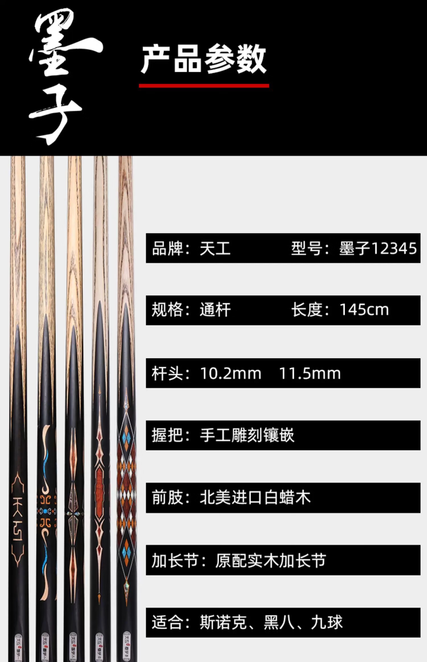 Hengyi Tiangong Mozi 123456 Mozi 2345 Nanjiang Xingling Tiangong Buyi Billiard Cue Chinese Black 8 Cue New Tiangong Mozi 2+ Maintenance Set + Original Aluminum Box
