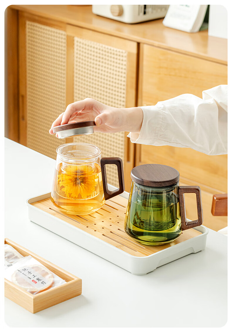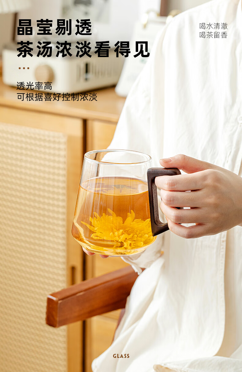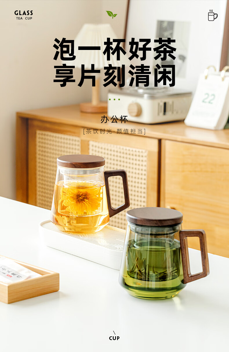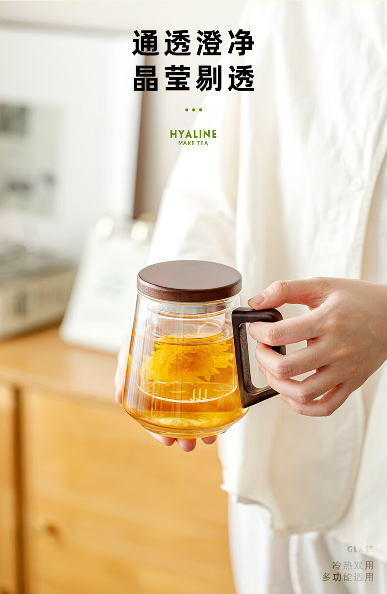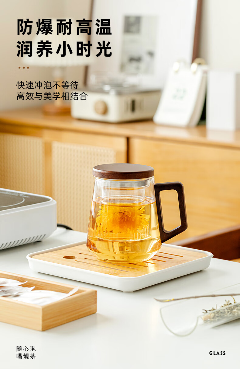 Heat-resistant and explosion-proof tea cup, tea water separation, high-grade borosilicate heat-resistant glass tea cup, high-end unisex household, Crow Blue Deep Space Three-piece Cup 450ml 1 piece