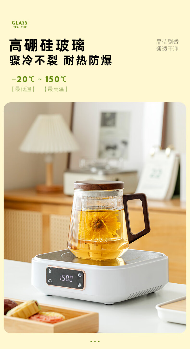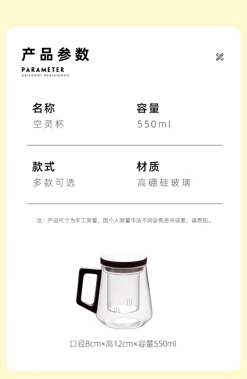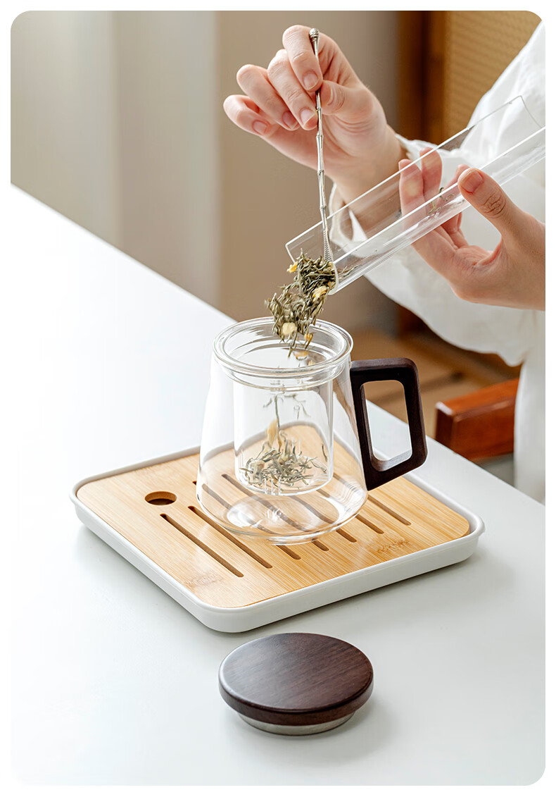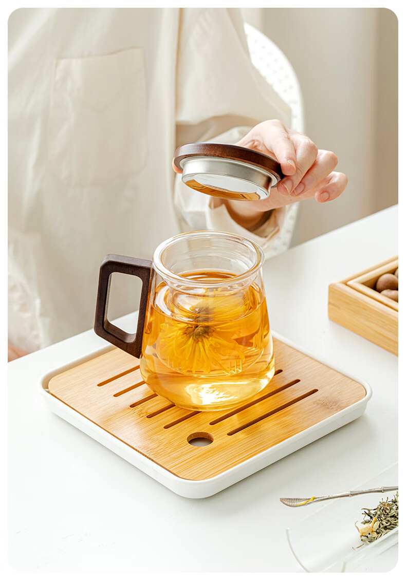 Heat-resistant and explosion-proof tea cup, tea water separation, high-grade borosilicate heat-resistant glass tea cup, high-end unisex household, Crow Blue Deep Space Three-piece Cup 450ml 1 piece