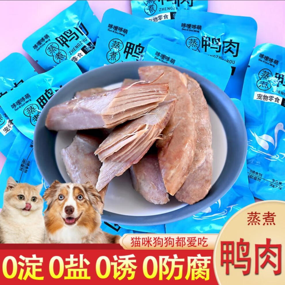 Duoduoduomeng steamed duck meat, boiled duck breast, pet cat and dog nutritional snacks, wet food, dried meat, steamed duck meat, steamed duck meat 30g/bag, zero conscience quality, 4 bags