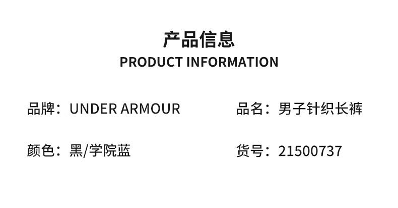 Under Armor autumn men's sweatpants quick-drying breathable training running fitness casual sports pants black 23600704-001 L