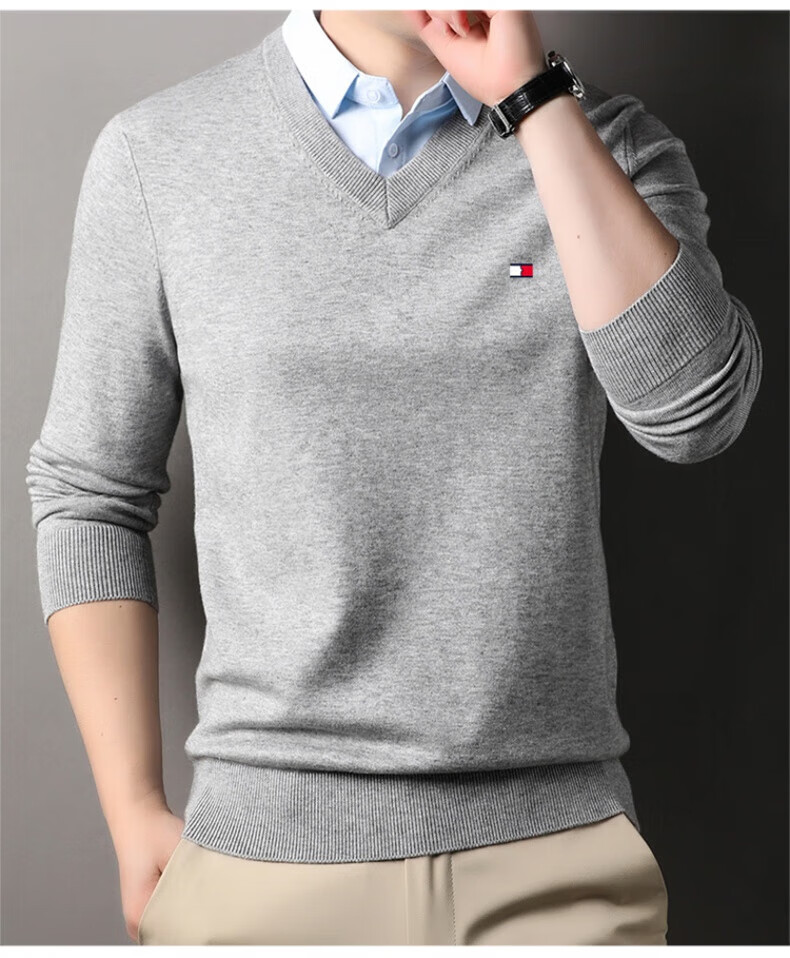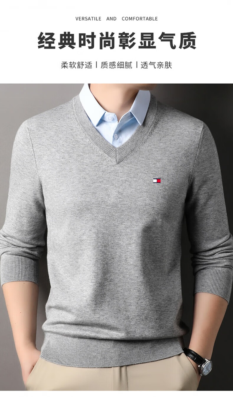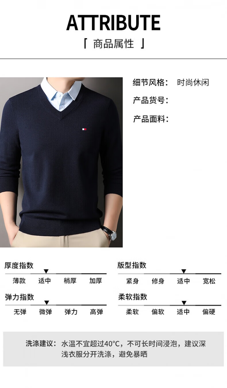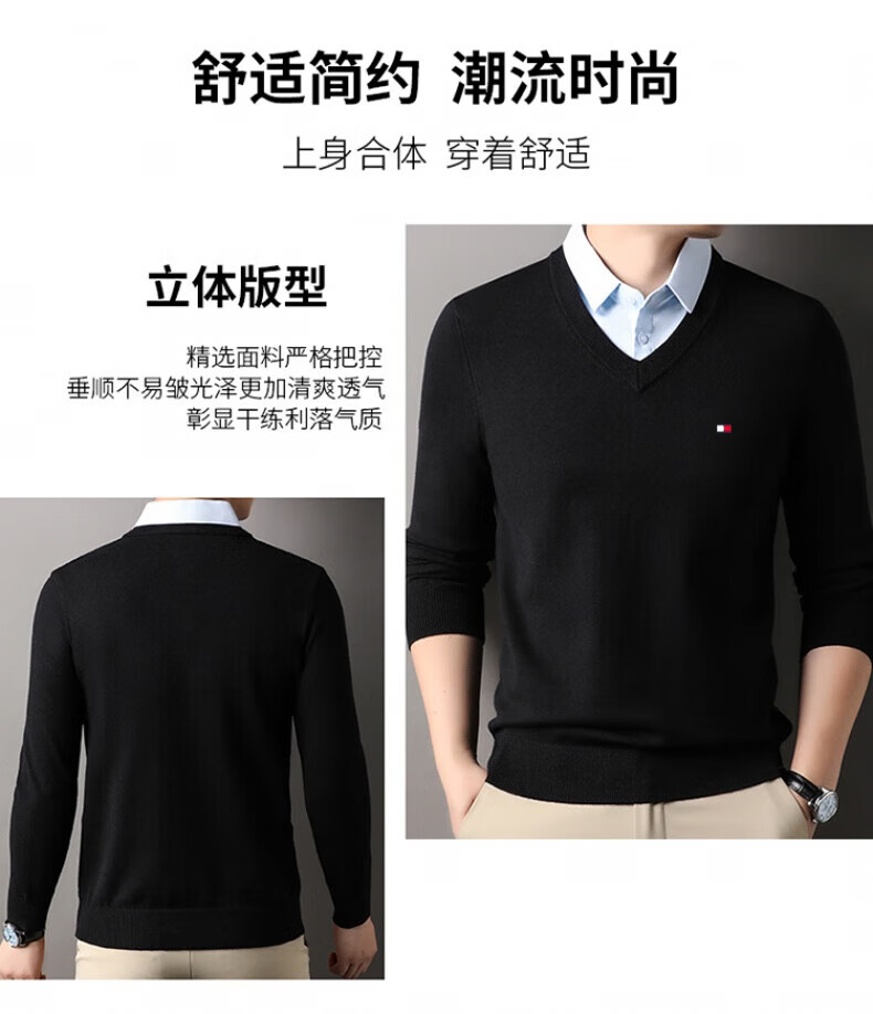 TOME BORNEK American Tommy Autumn and Winter Cardigan Men's Fake Two-Piece V-neck Sweater Warm Thickened Business Shirt Sweater Navy XL 115 (recommended 140-160Jin Jin equals 0.5 kg)