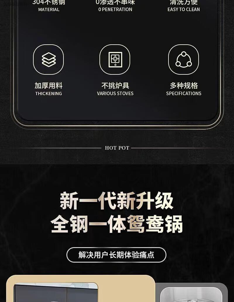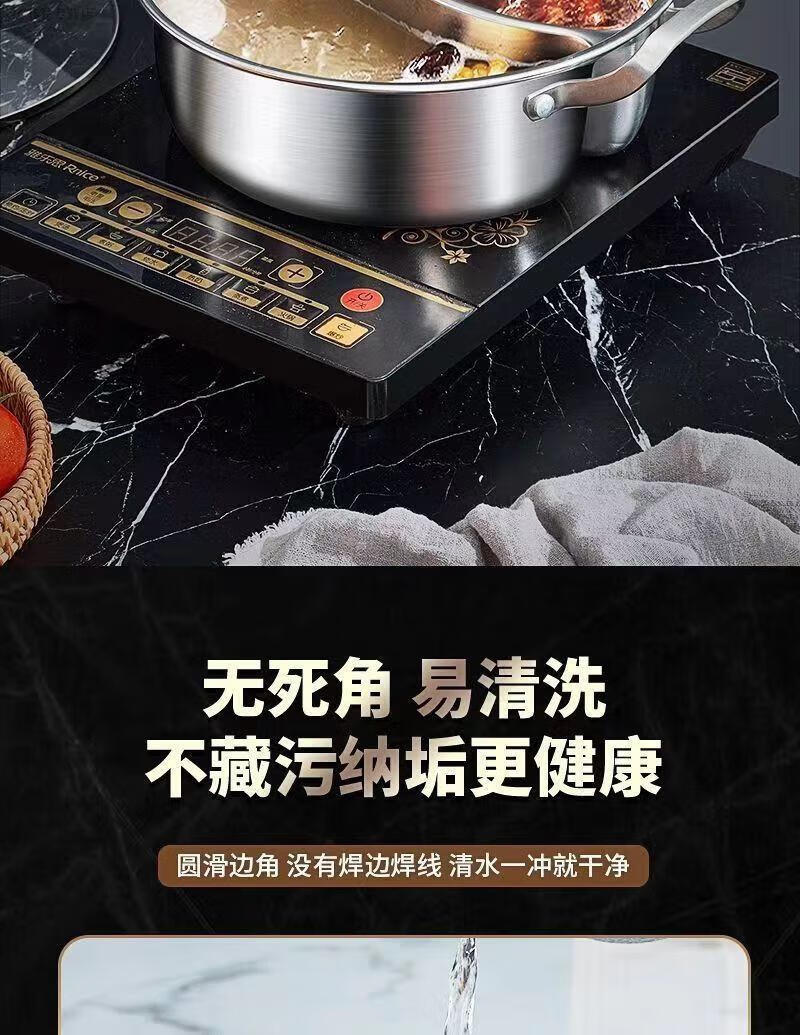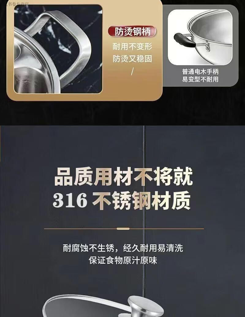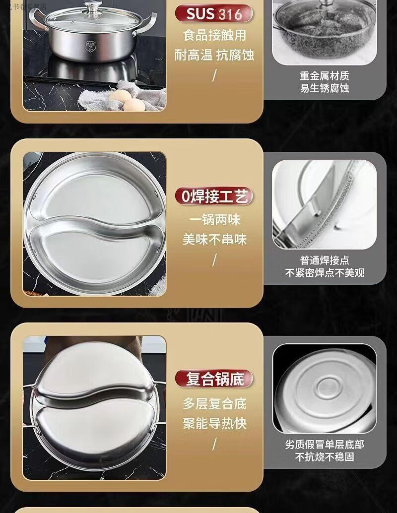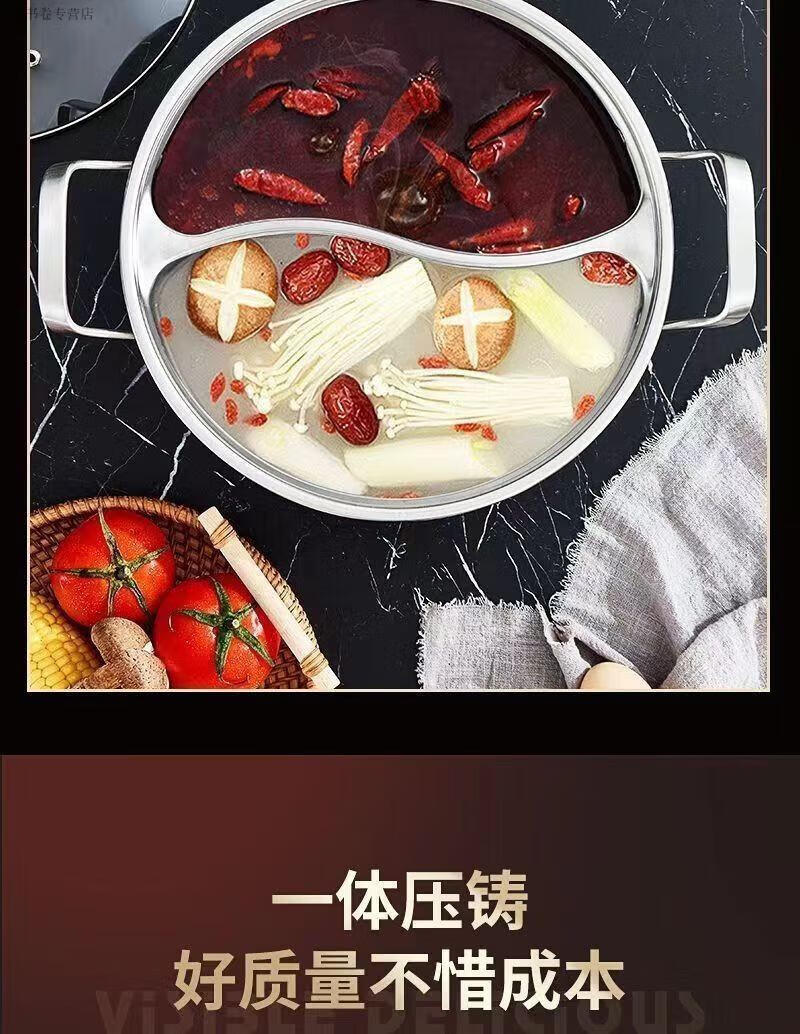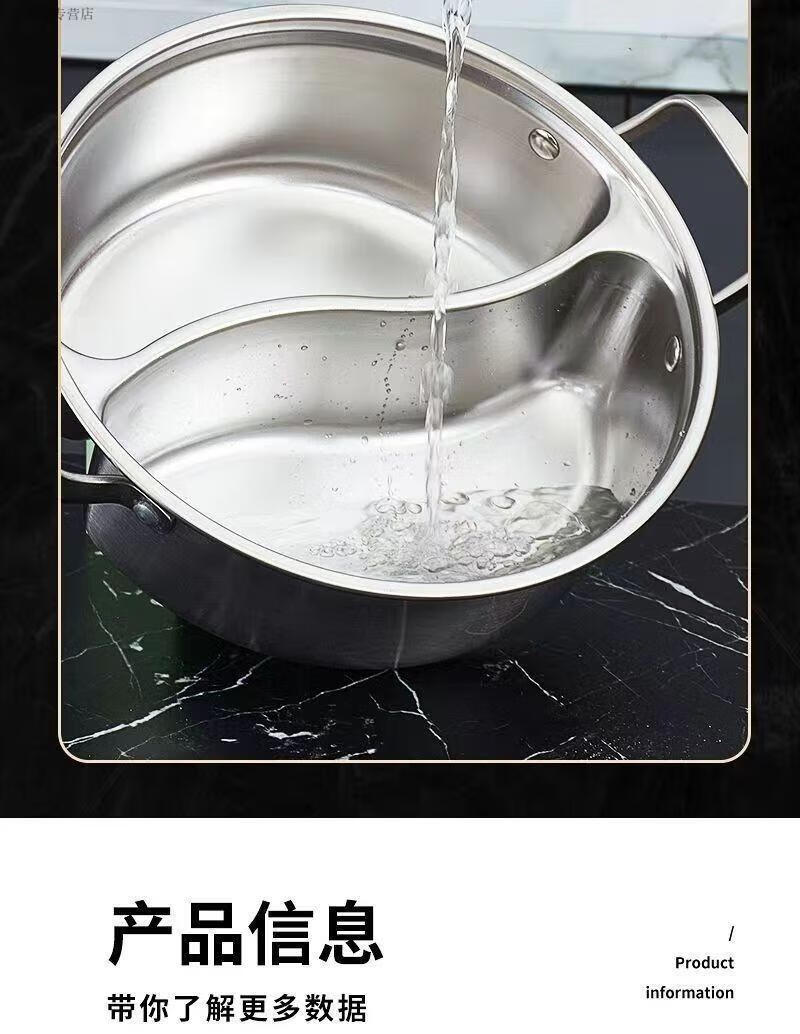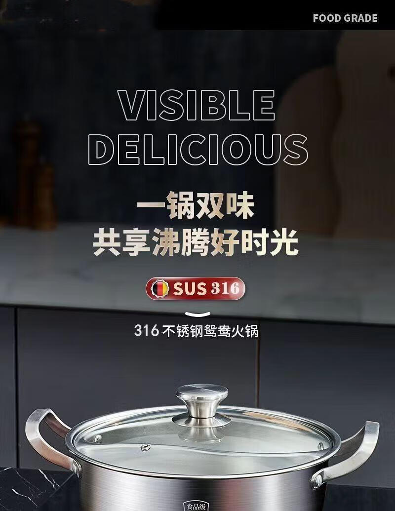 Jiuyang Jiaren one-piece 316 stainless steel mandarin duck pot thickened double-ear soup pot commercial compartmented hot pot household soup pot 34cm mandarin duck pot with lid one-piece molding