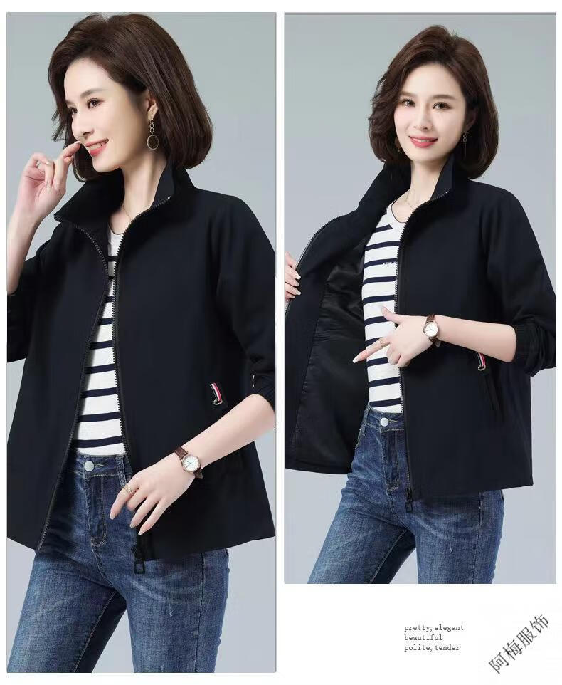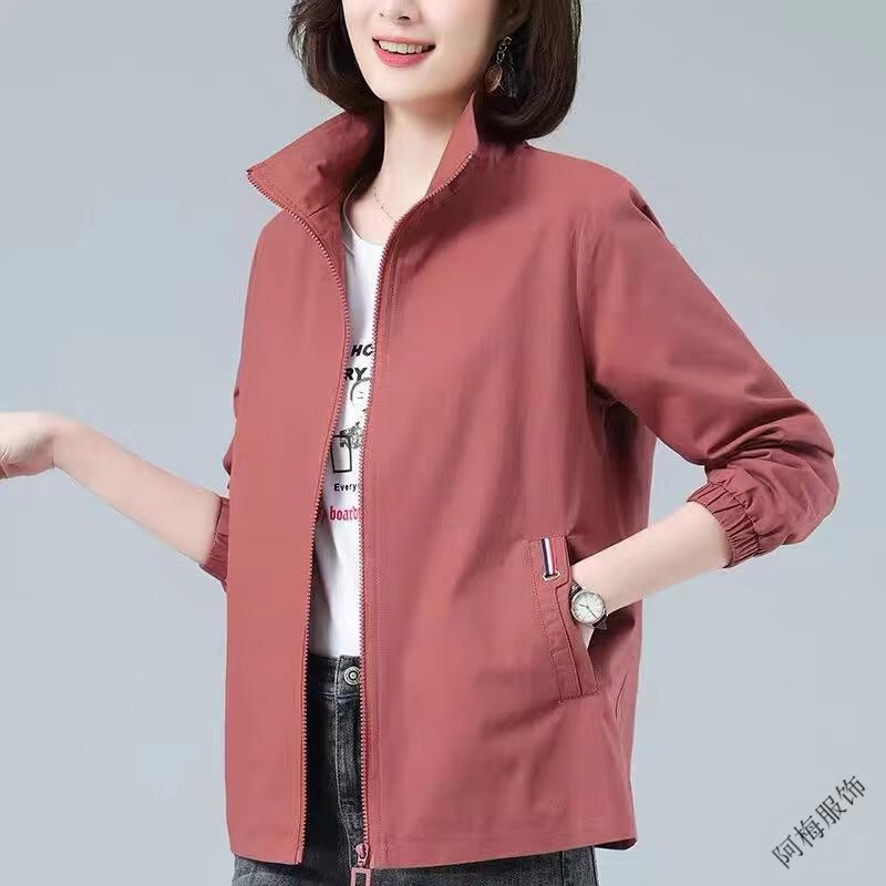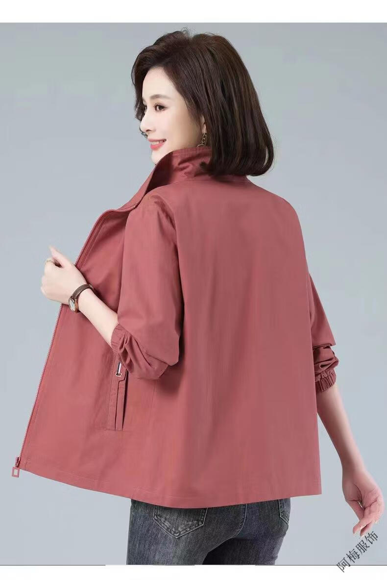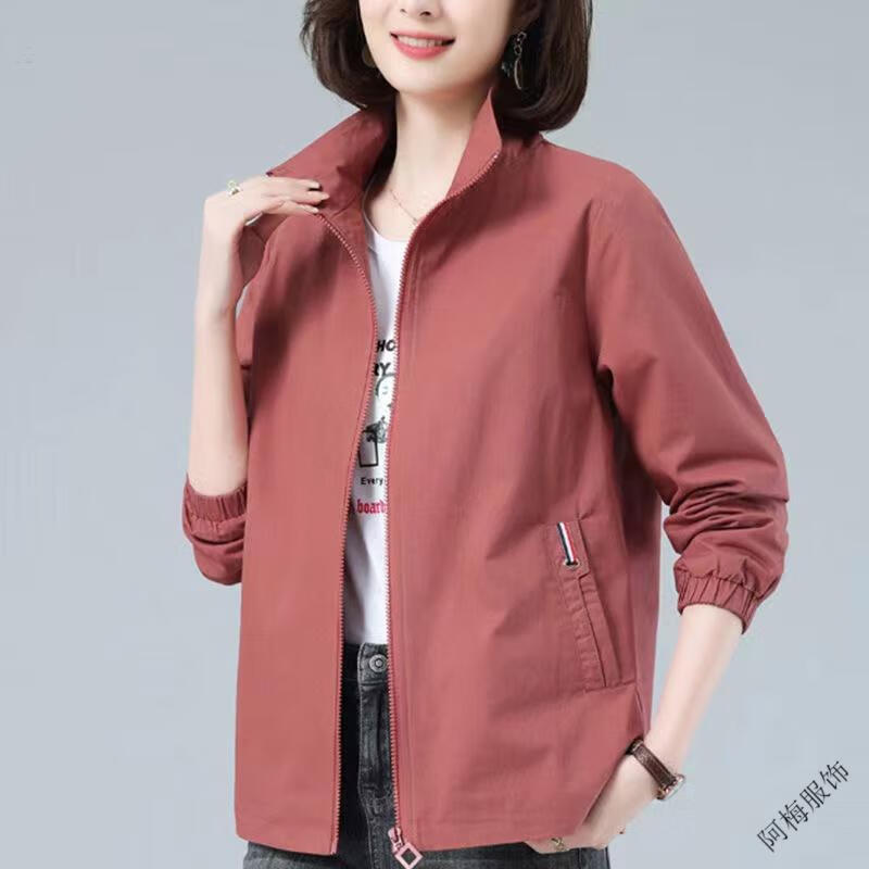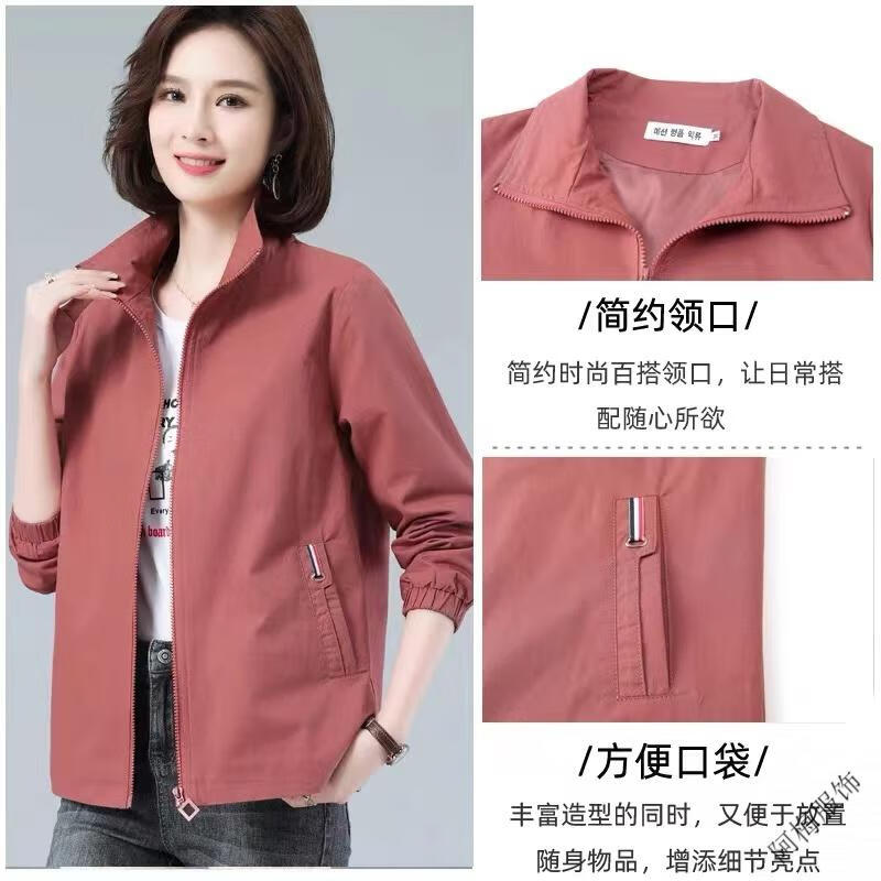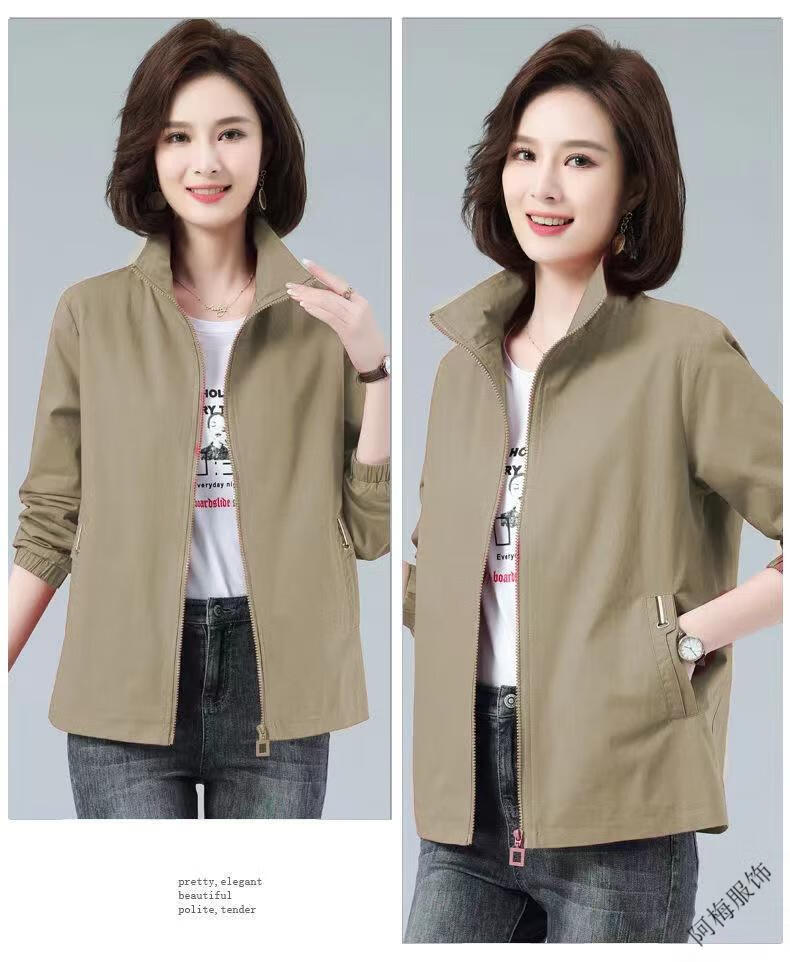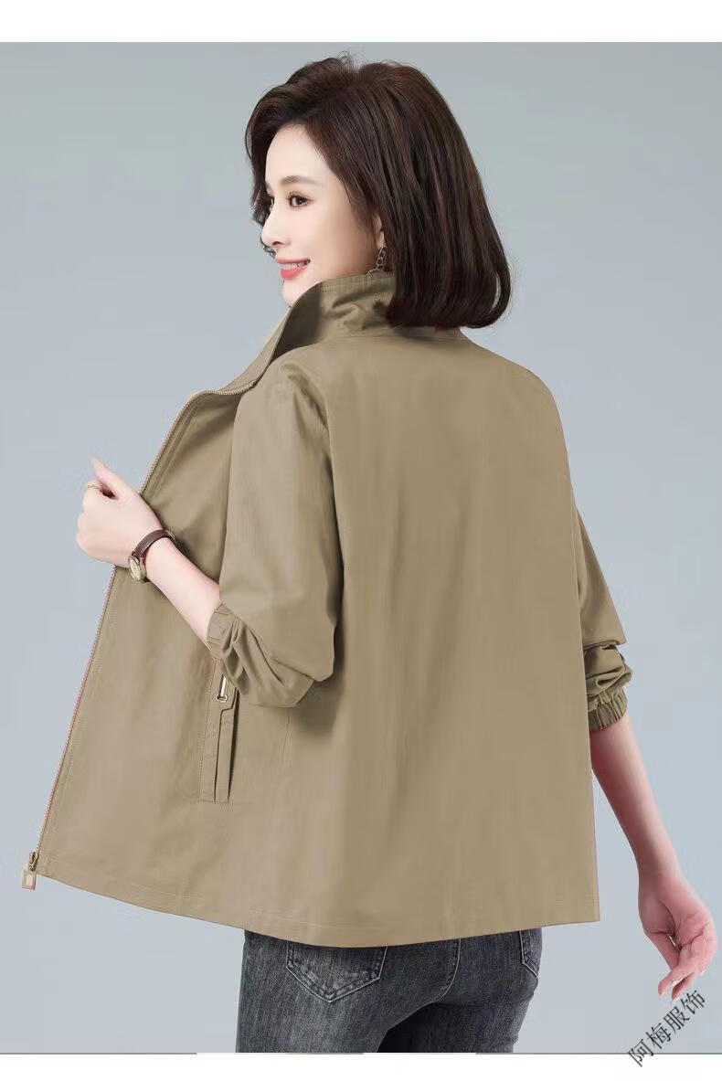 Pierre Cardin (Pierre Cardin) February and August double-layered lined women's spring and autumn new stand-up collar large size slim temperament windbreaker short coat khaki color high quality XL recommended 115-130Jin Jin equals 0.5 kg