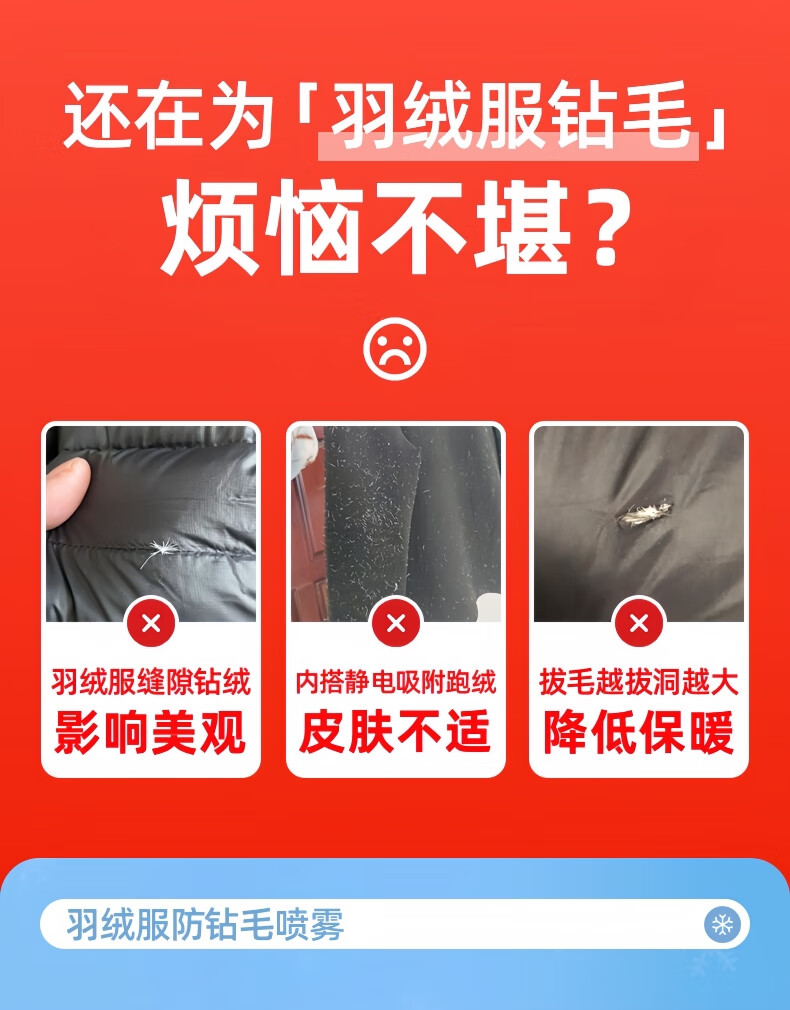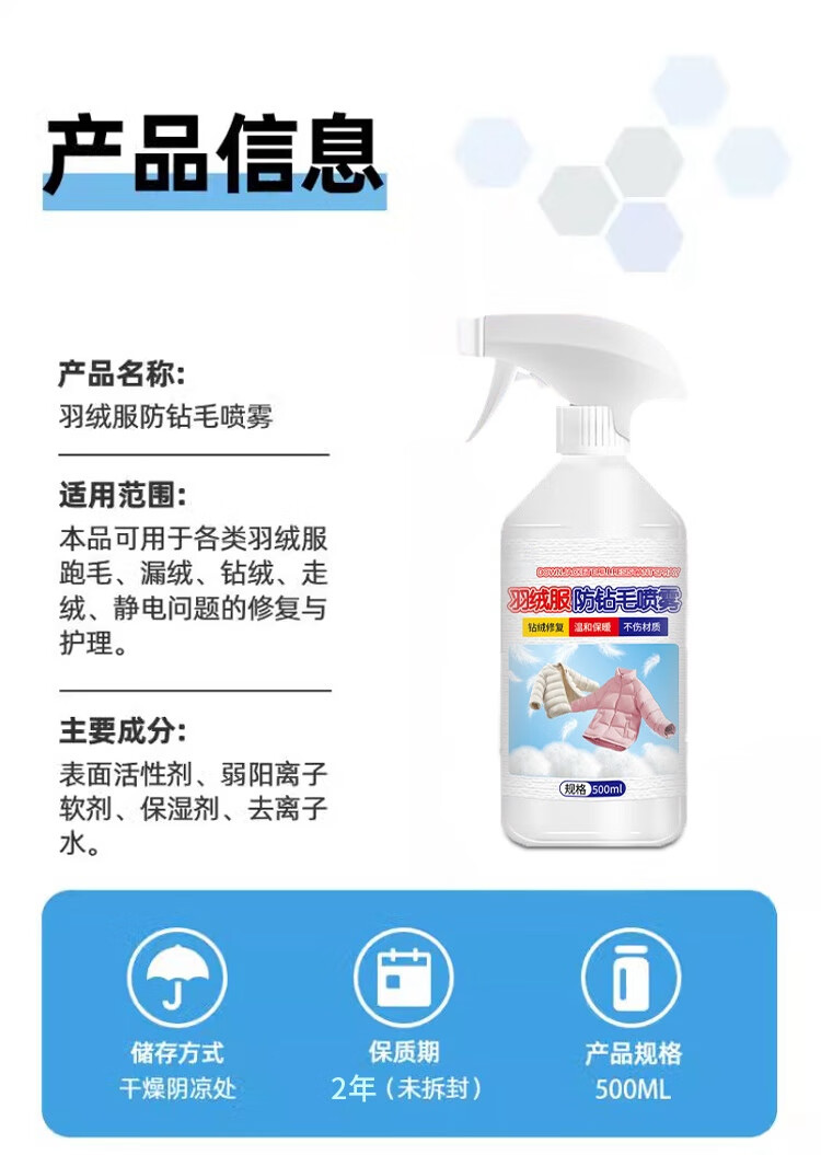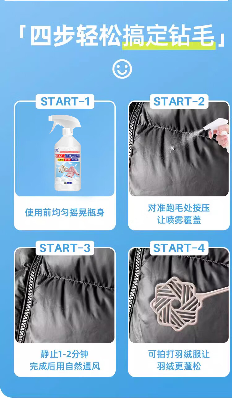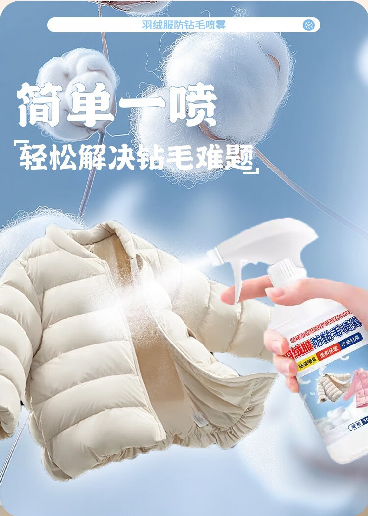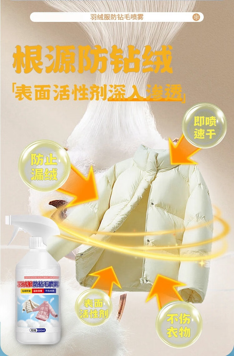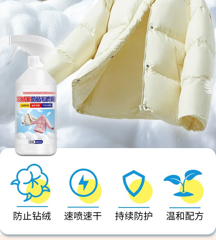 Chijuhui Down Jacket Anti-Drilling Magic Spray Lining Anti-Fleet Special Repair and Care Winter Clothing Anti-Luffing Spray 1 Bottle Anti-Drilling Spray Trial Pack Single Down Jacket Care