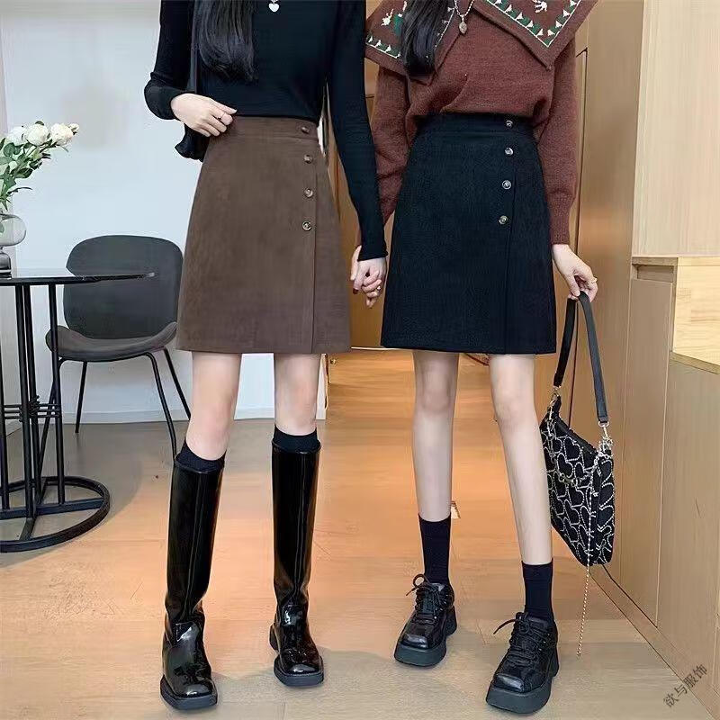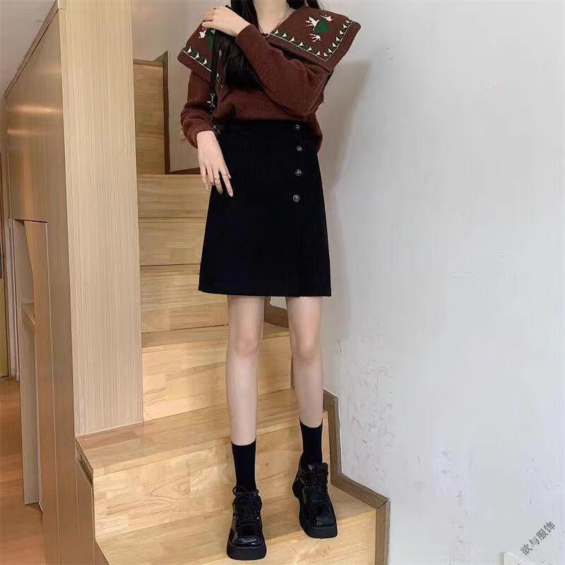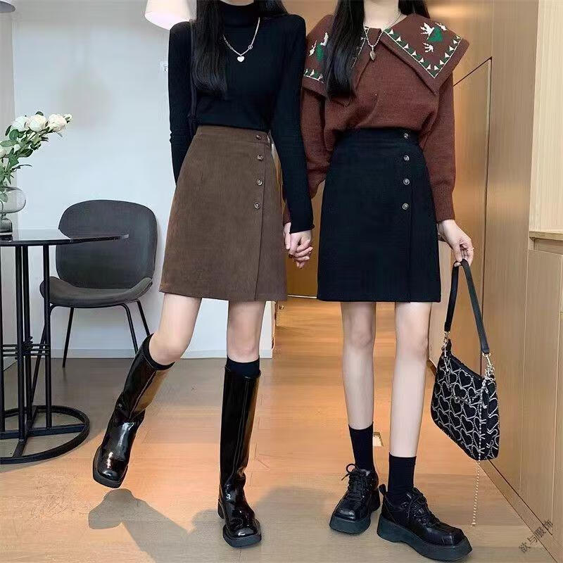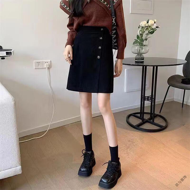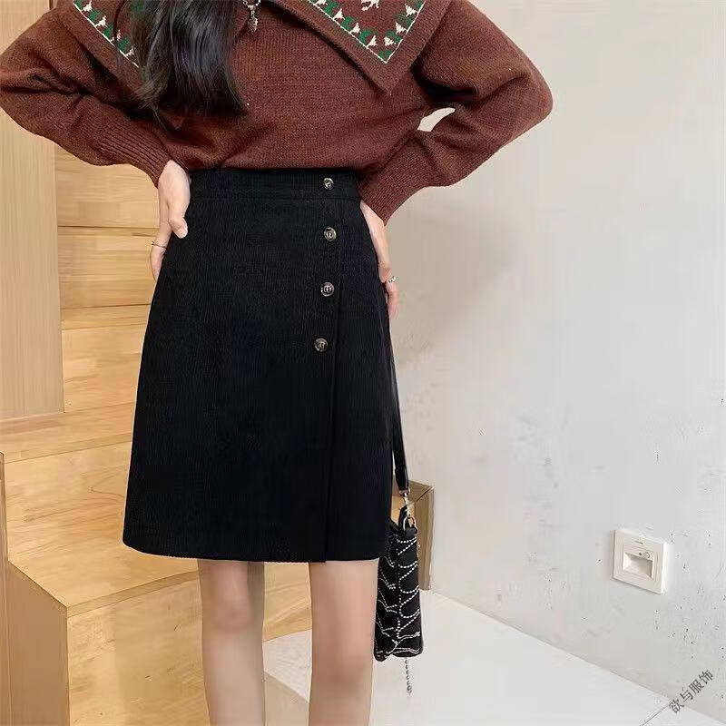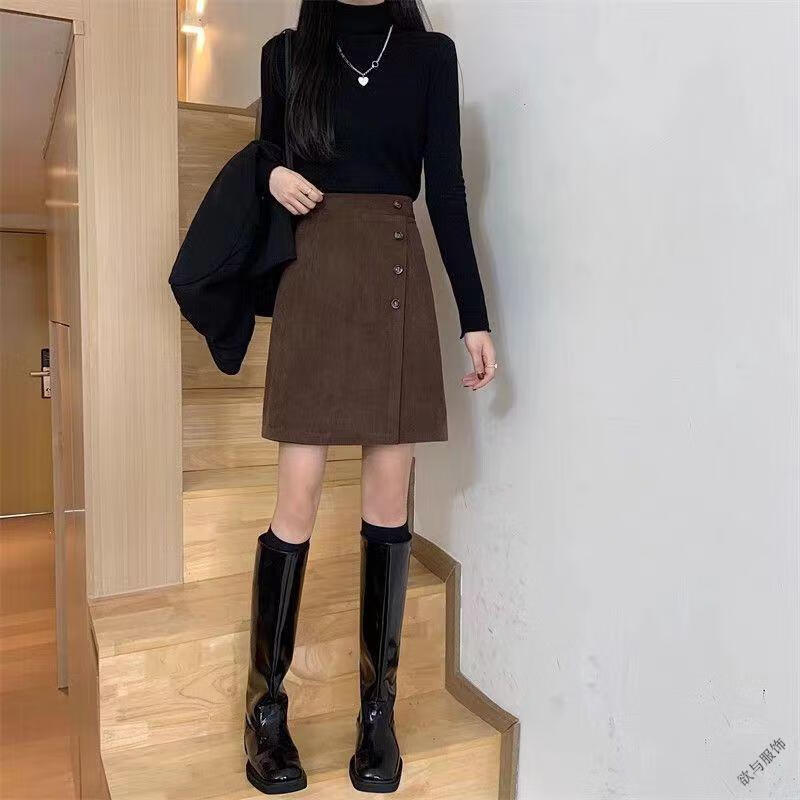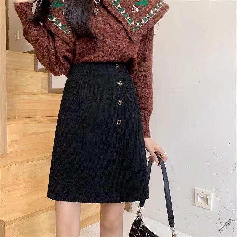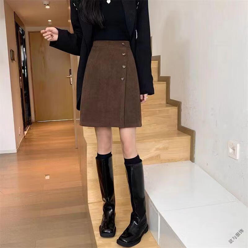 Pierre Cardin Large Size Corduroy Skirt Autumn and Winter Women's High Waist Irregular Mid Skirt Fat mm Slimming Belly Covering A-Line Skirt Short Skirt Brown M Recommended 90-100 Jin Jin equals 0.5 kg