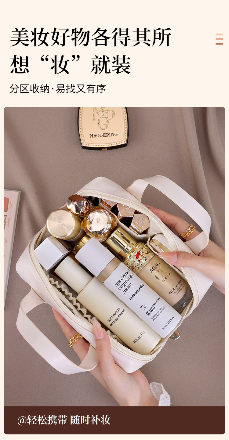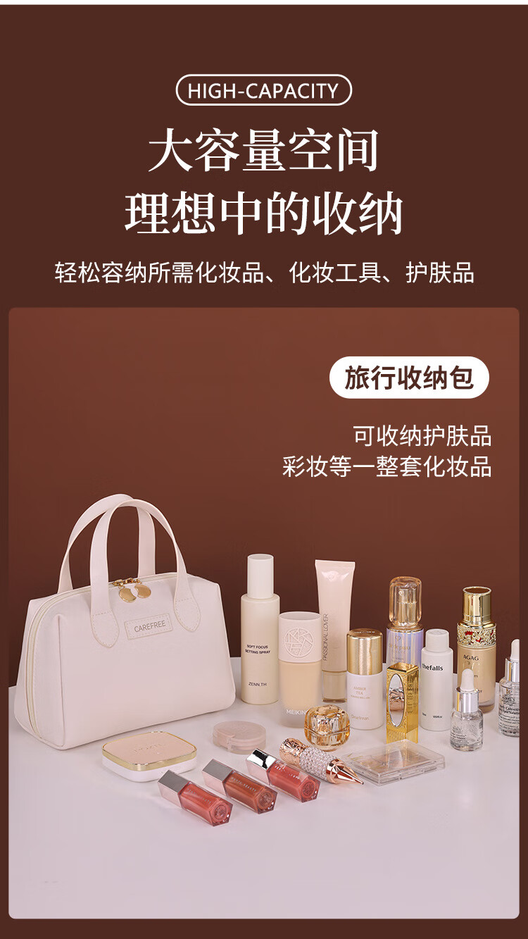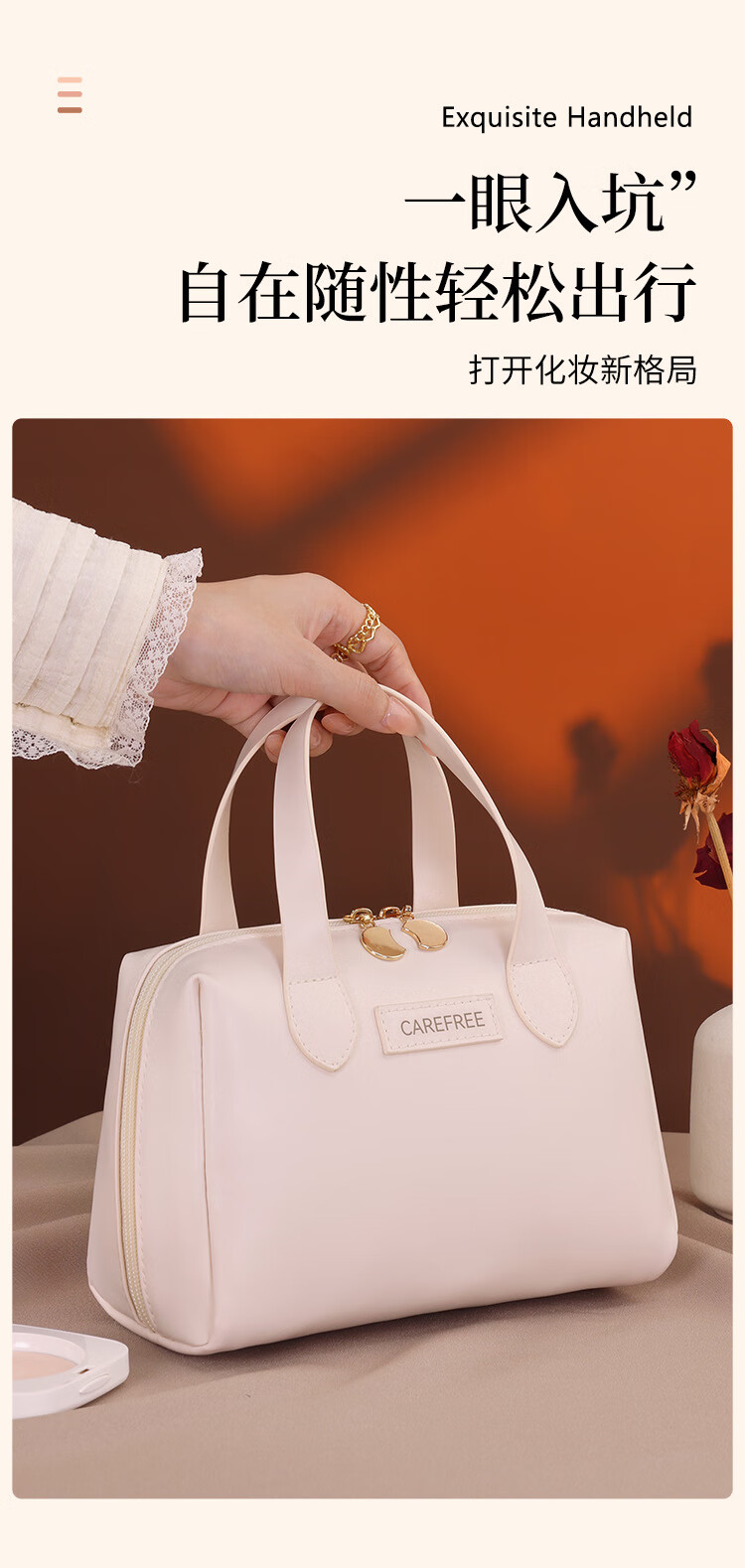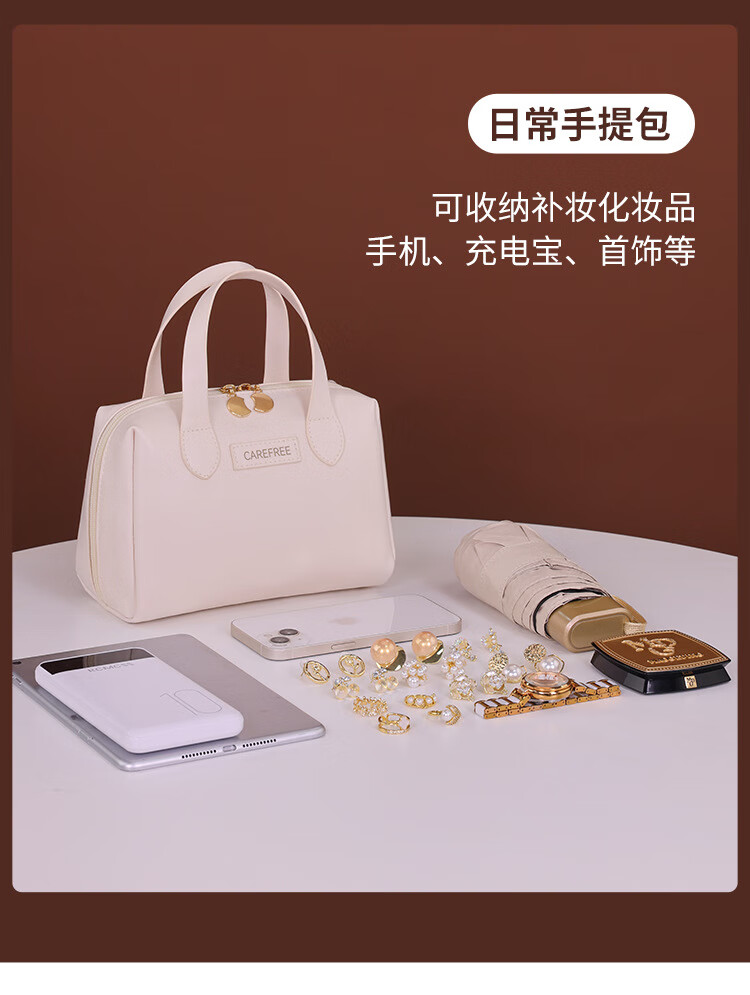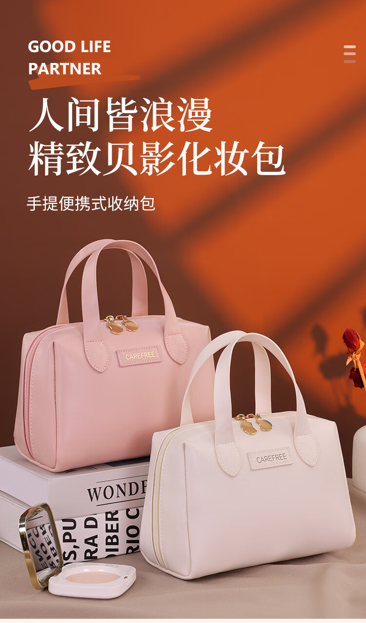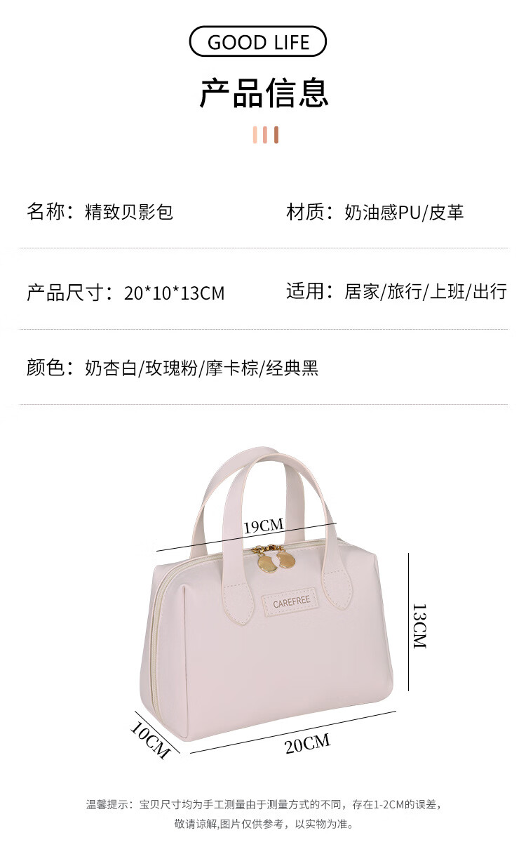 Yinuo Cosmetic Storage Bag Exquisite Portable Cosmetic Bag Large Capacity PU High-end Travel Portable Cosmetic Toilet Bag for Women 20*10*13cm Light Luxury Small Handbag-Rose Pink Thickened 1