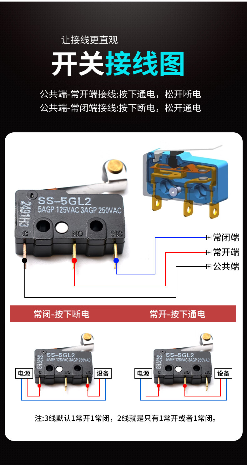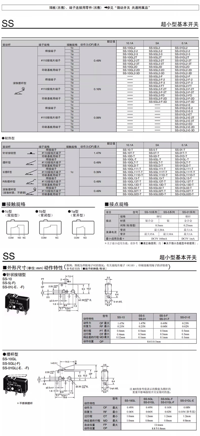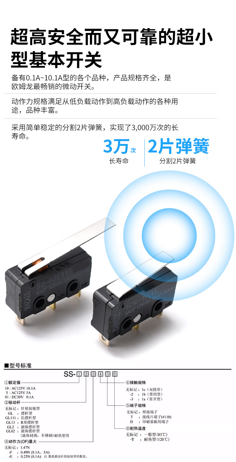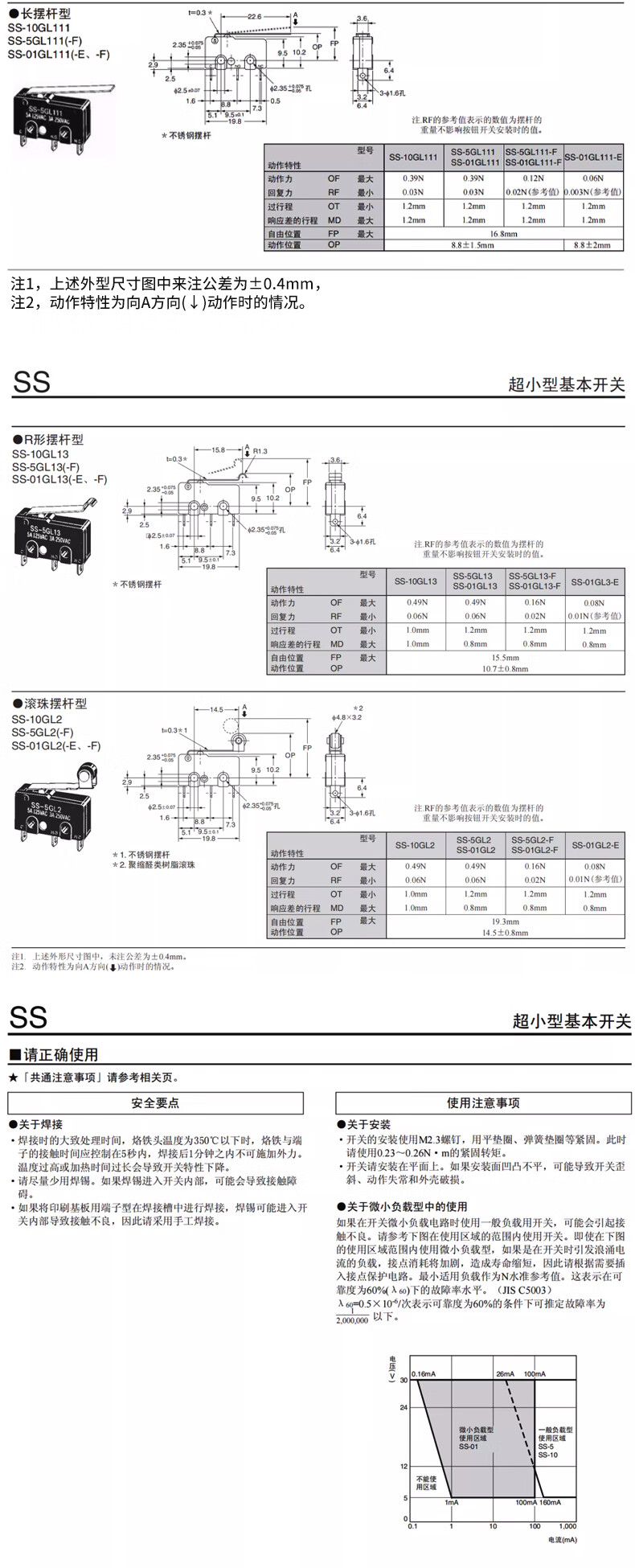 Stroke micro switch SS-5/5GL2/5GL-F 5GL13 button limit switch Omron SS-5GL111 (extended handle)