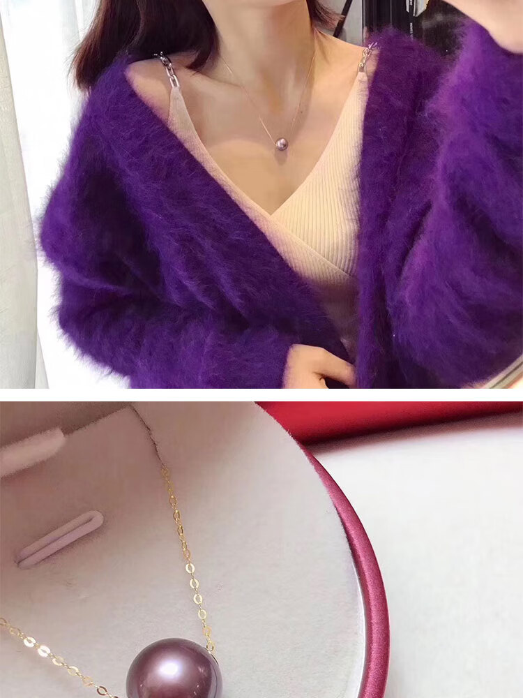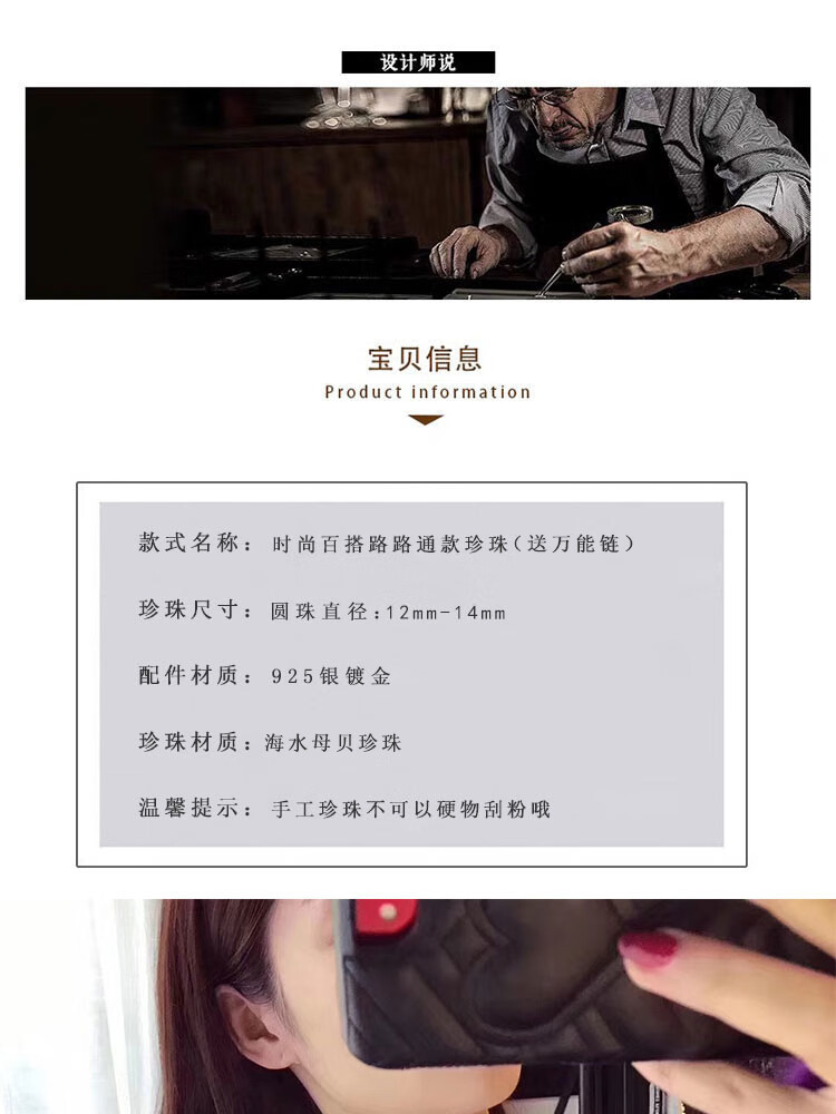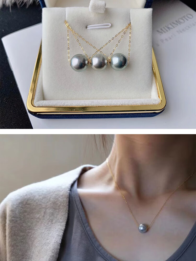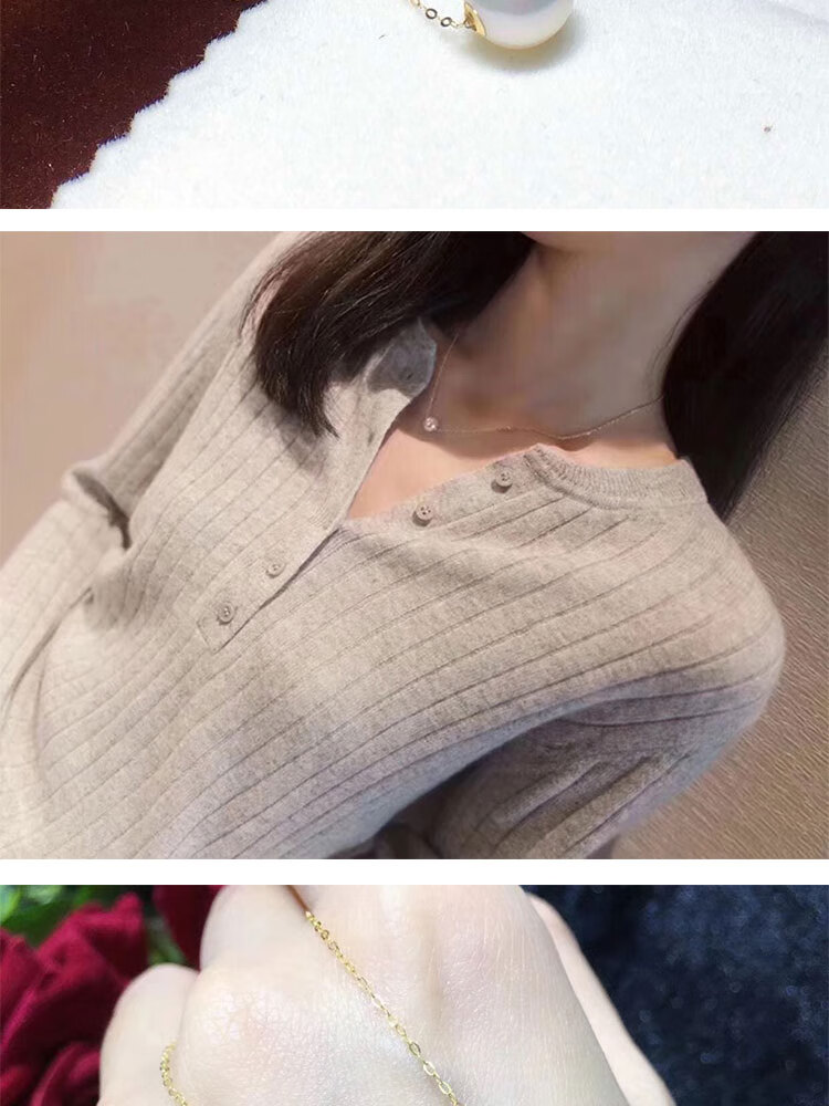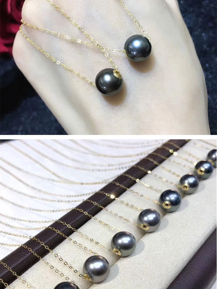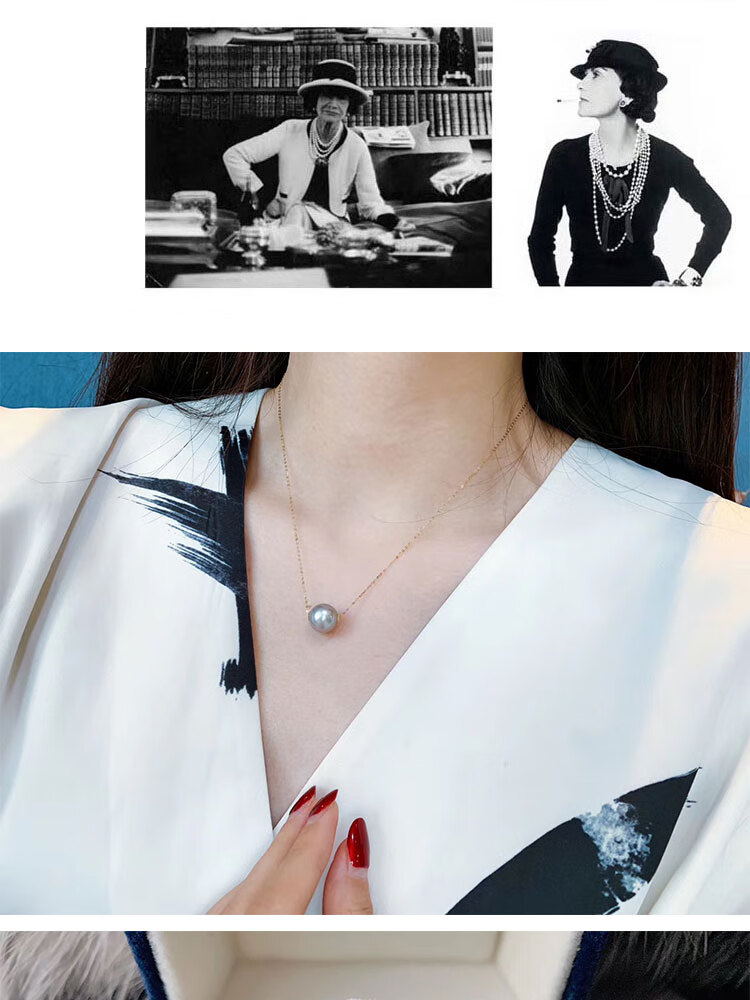 Fat Donglai's same style South Sea gold bead pendant gold pearl passepartout necklace 925 silver plated 18K gold clavicle chain single gold pearl round bead 14mm