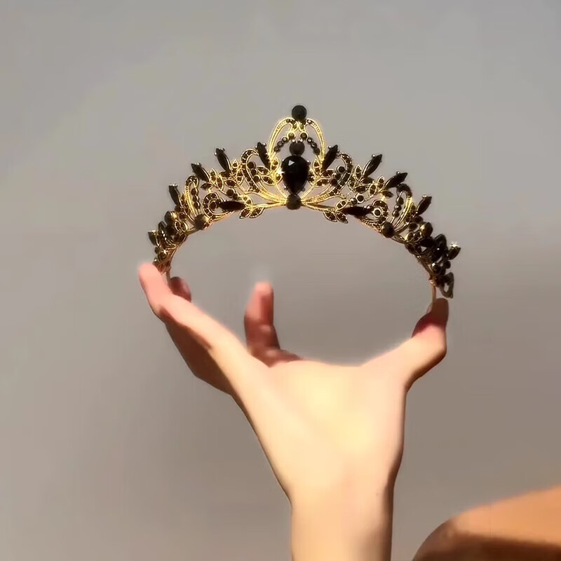 Princess Shiyun’s Bride’s Noble Crown Tiara, On the Run, Exploding Zircon, Cool and Fashionable, Luxurious and High-Value Birthday, Princess on the Run, Black Diamond Style