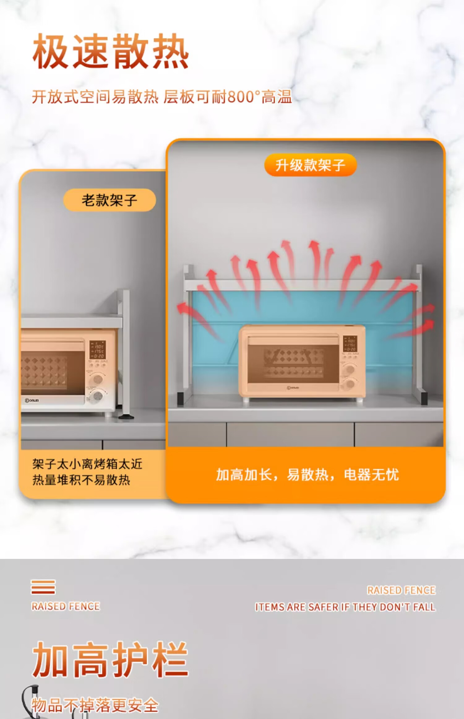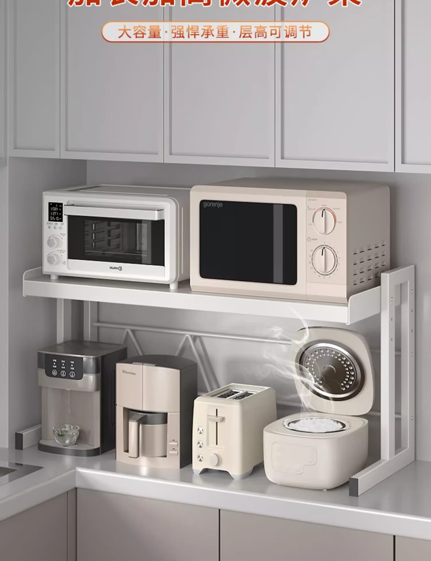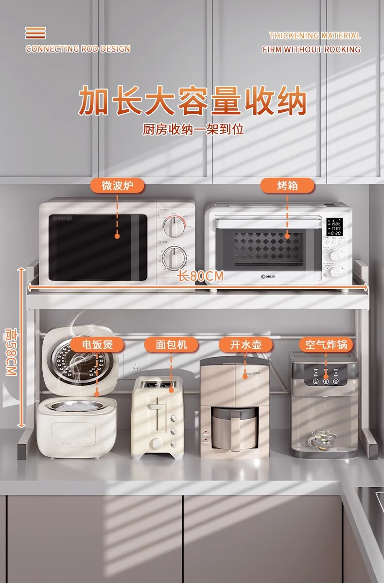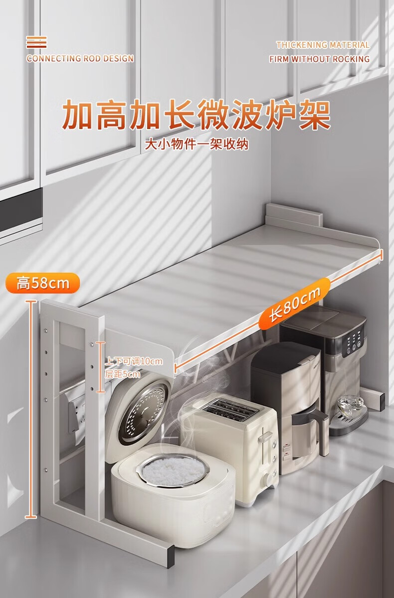 Mrs. Kitchen Microwave Rice Cooker Storage Rack Countertop Microwave Rack Telescopic Oven Storage Rack Electrical Storage Rack Height Adjustable 80cm Fully Equipped