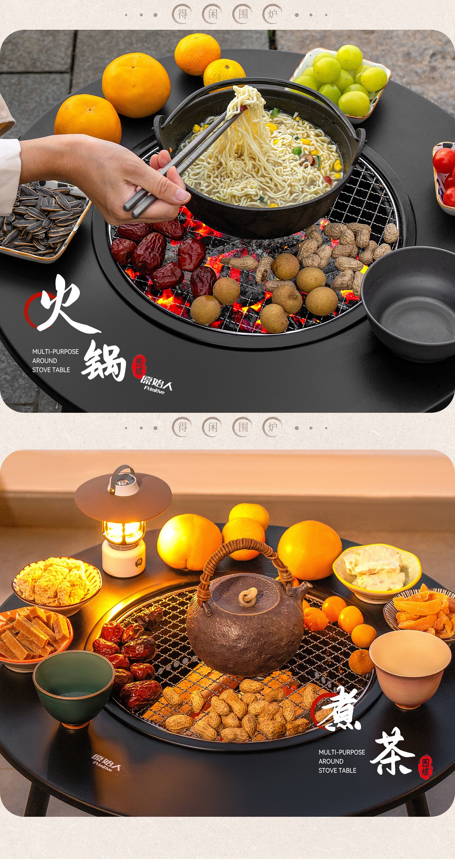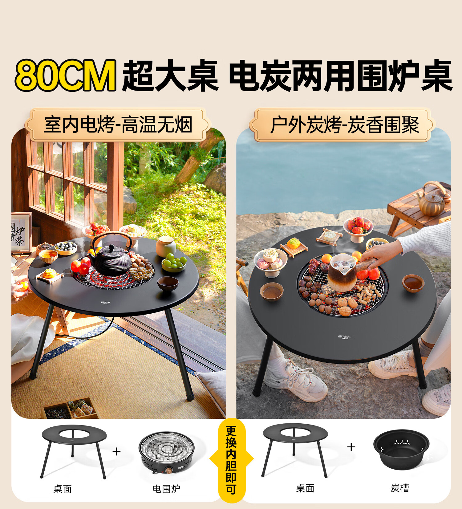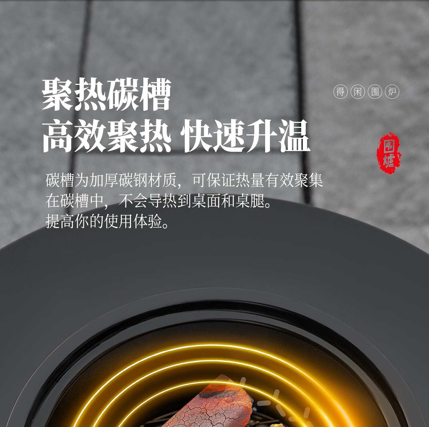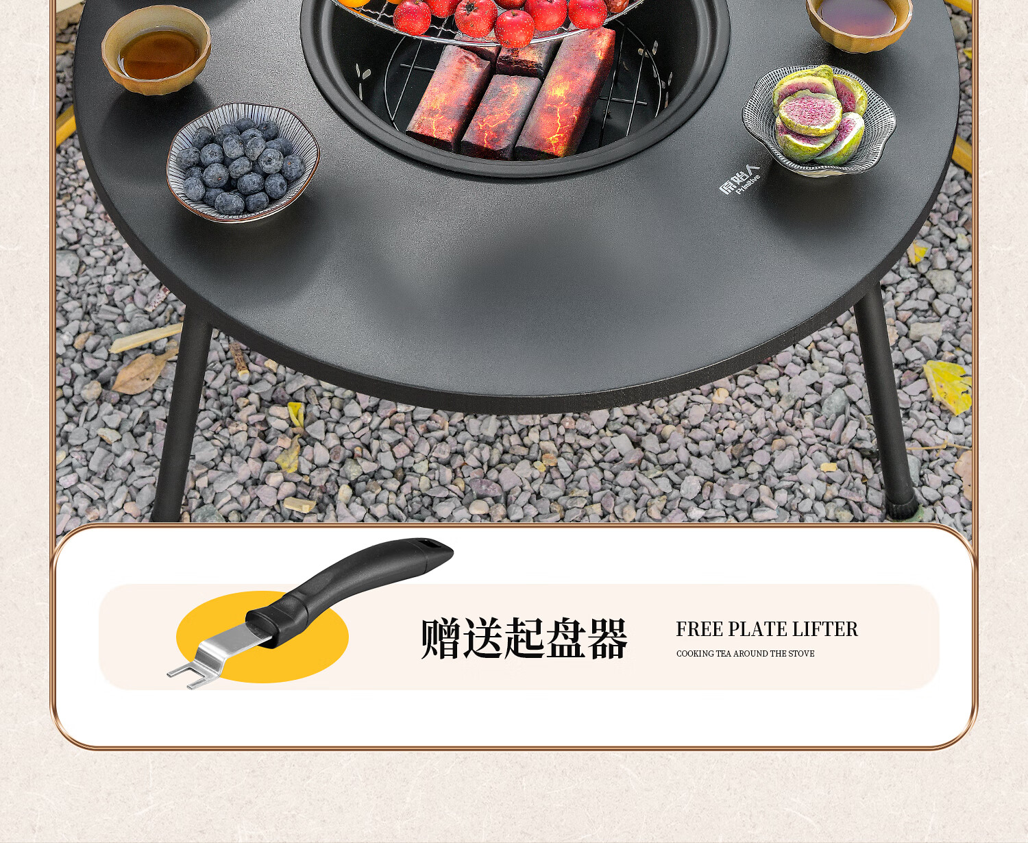 Primitive tea-making barbecue stove for household indoor barbecue stove set outdoor barbecue table heating basin charcoal barbecue grill 80CM thickened large table stove with 7-piece set + frying pan + cover + storage bag