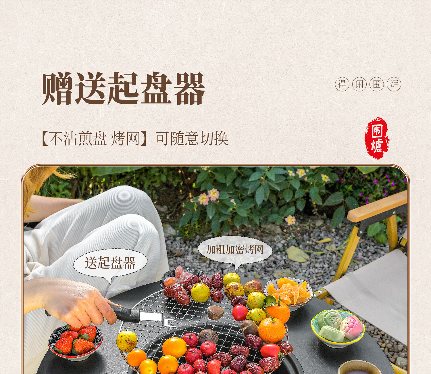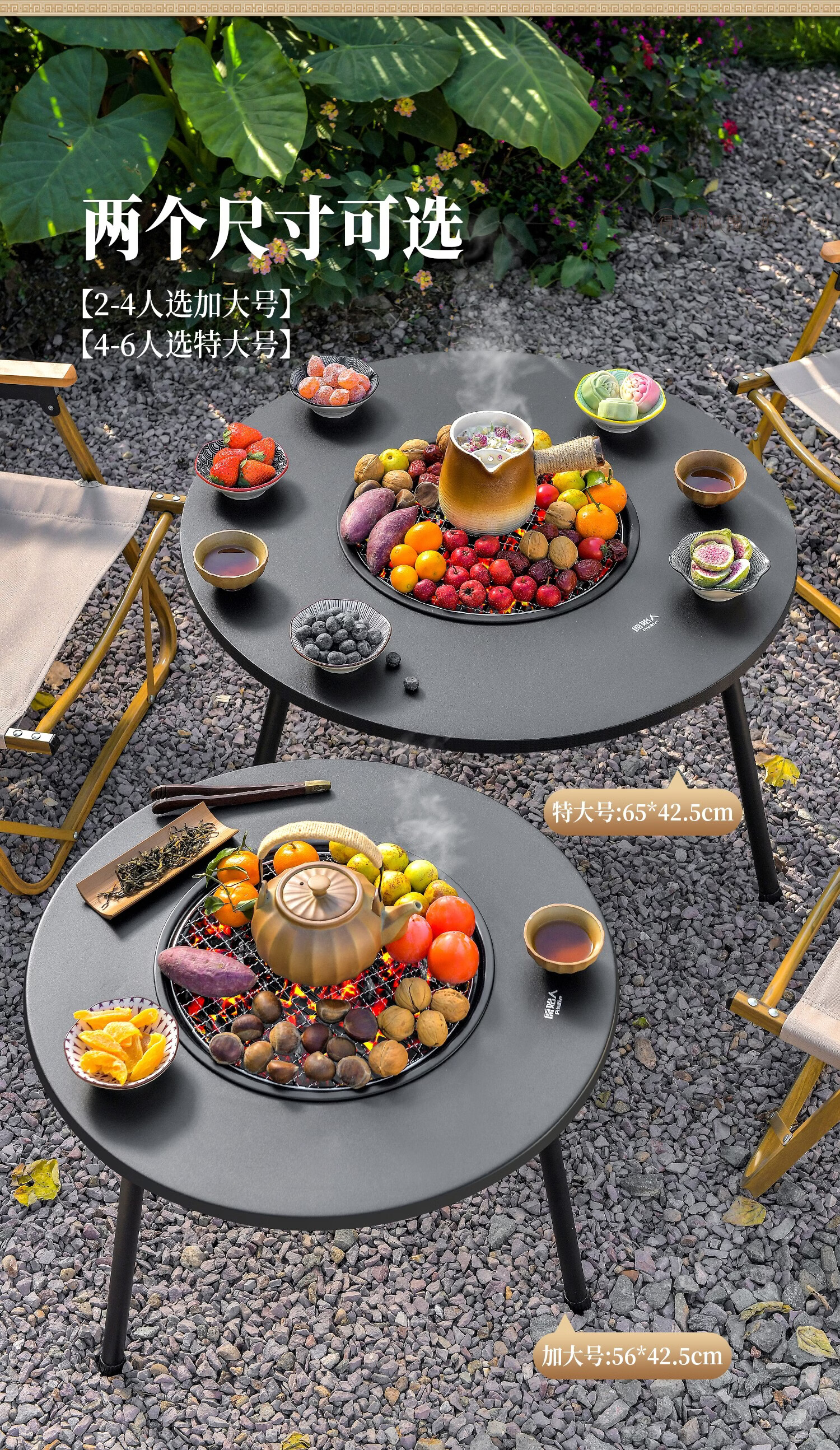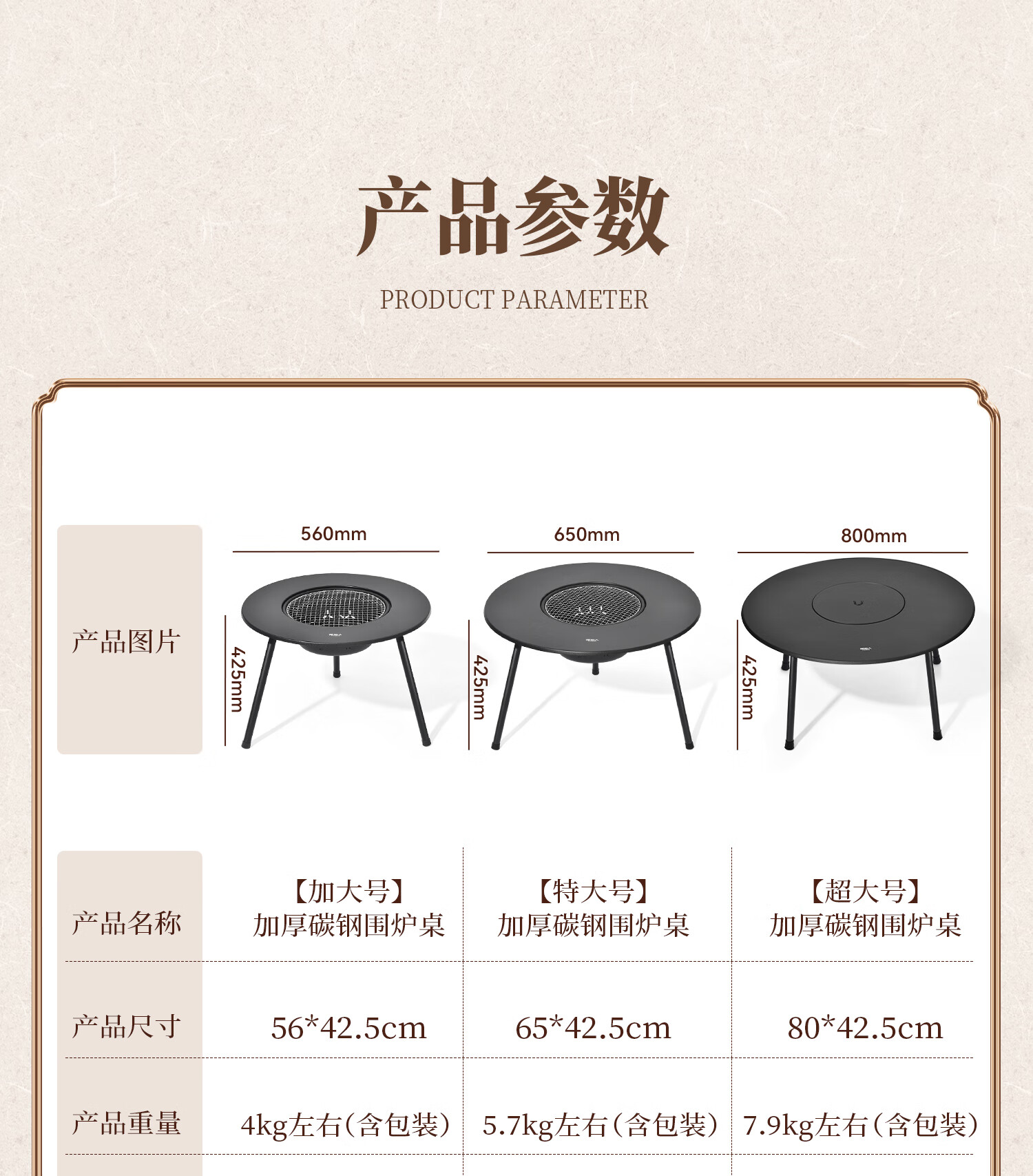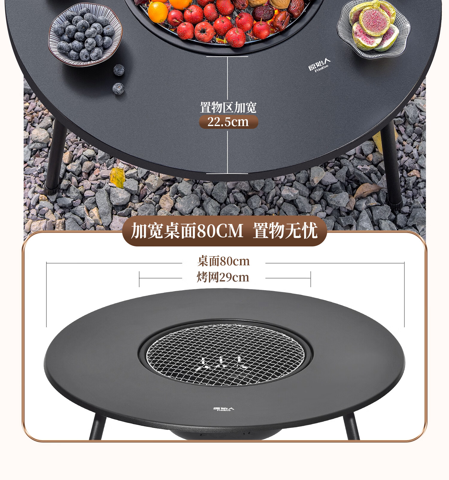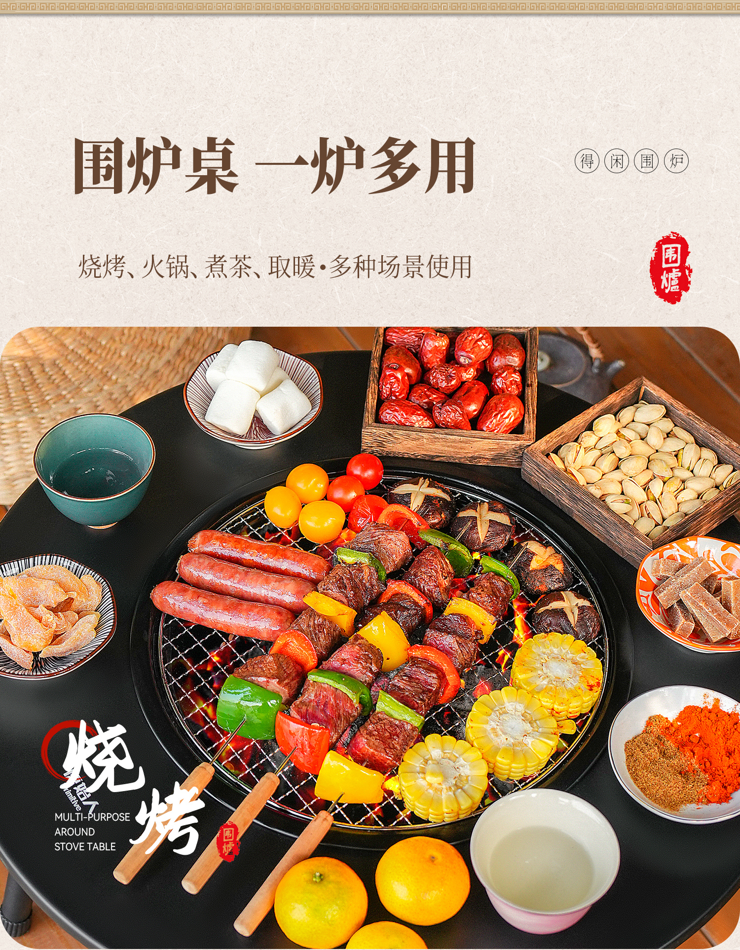 Primitive tea-making barbecue stove for household indoor barbecue stove set outdoor barbecue table heating basin charcoal barbecue grill 80CM thickened large table stove with 7-piece set + frying pan + cover + storage bag