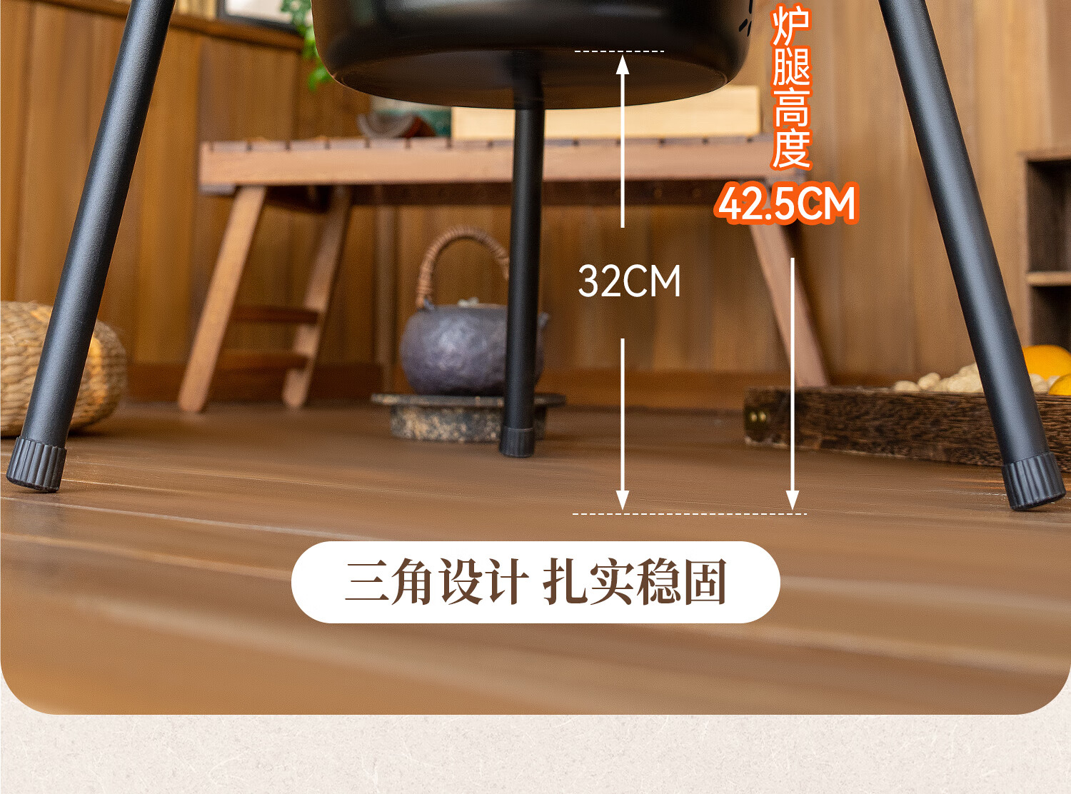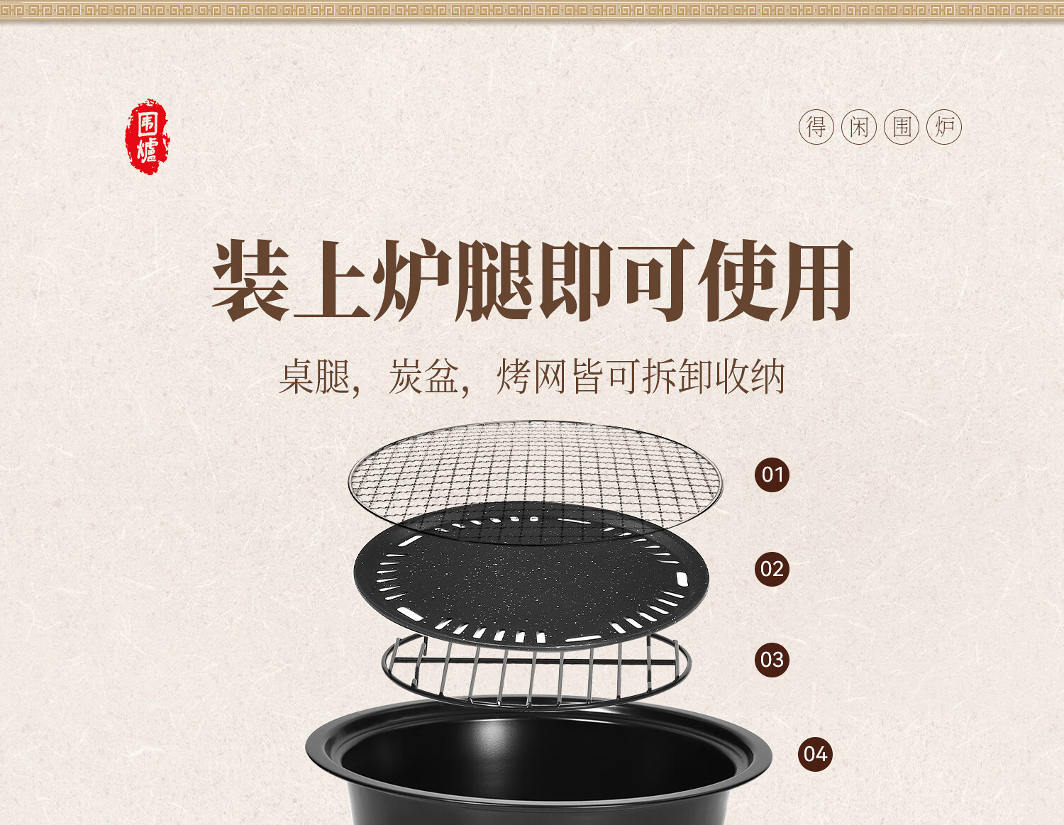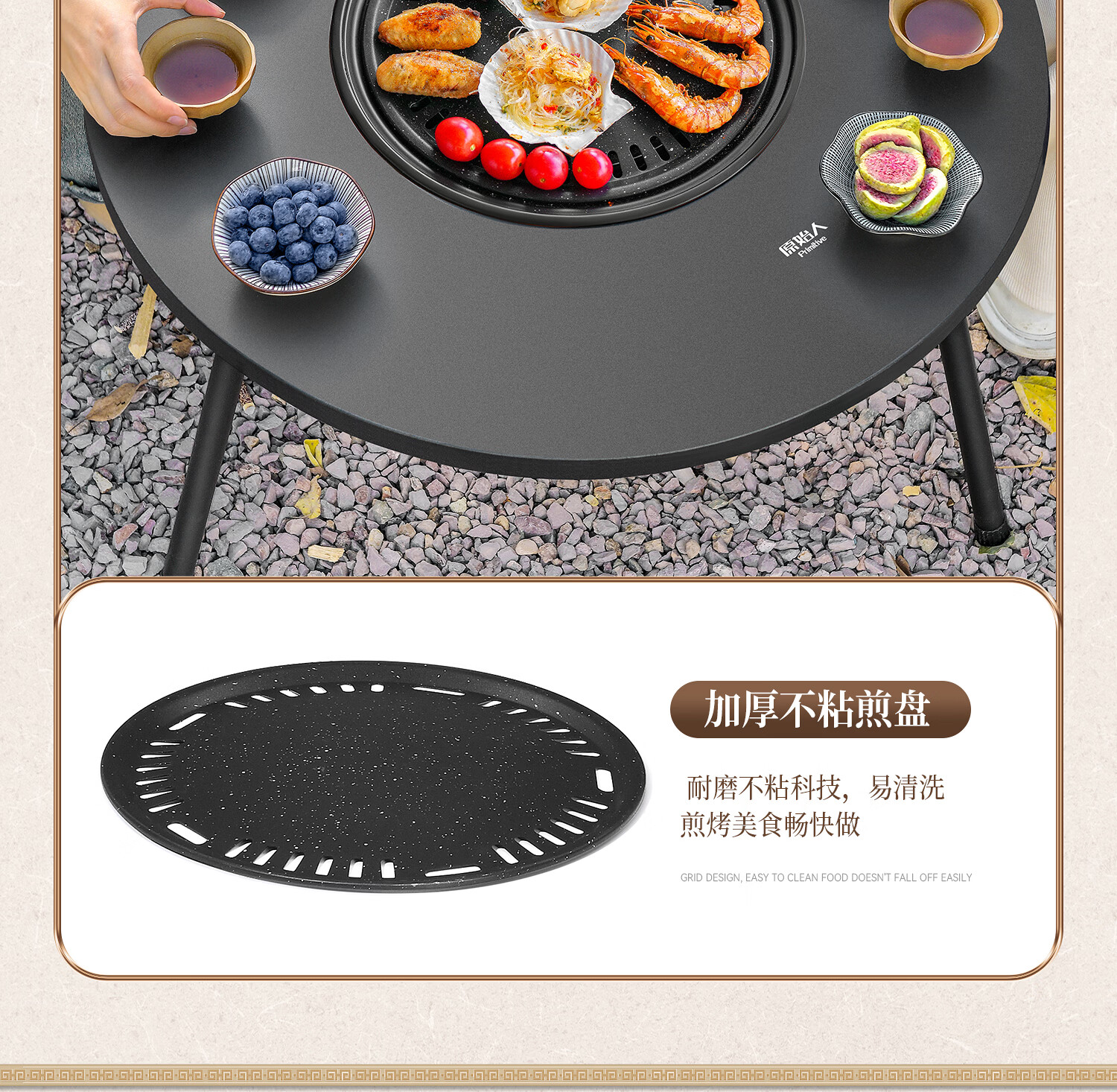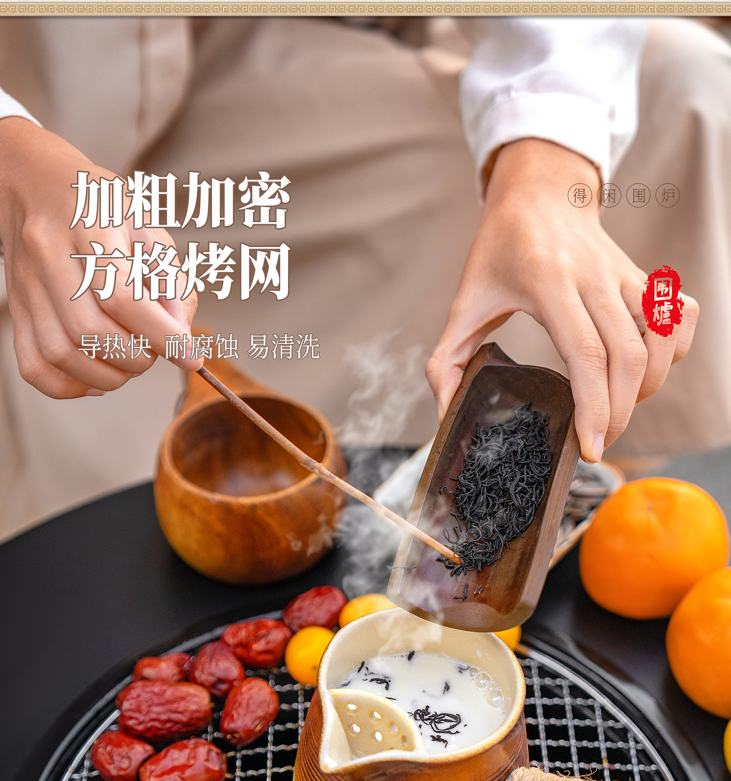 Primitive tea-making barbecue stove for household indoor barbecue stove set outdoor barbecue table heating basin charcoal barbecue grill 80CM thickened large table stove with 7-piece set + frying pan + cover + storage bag
