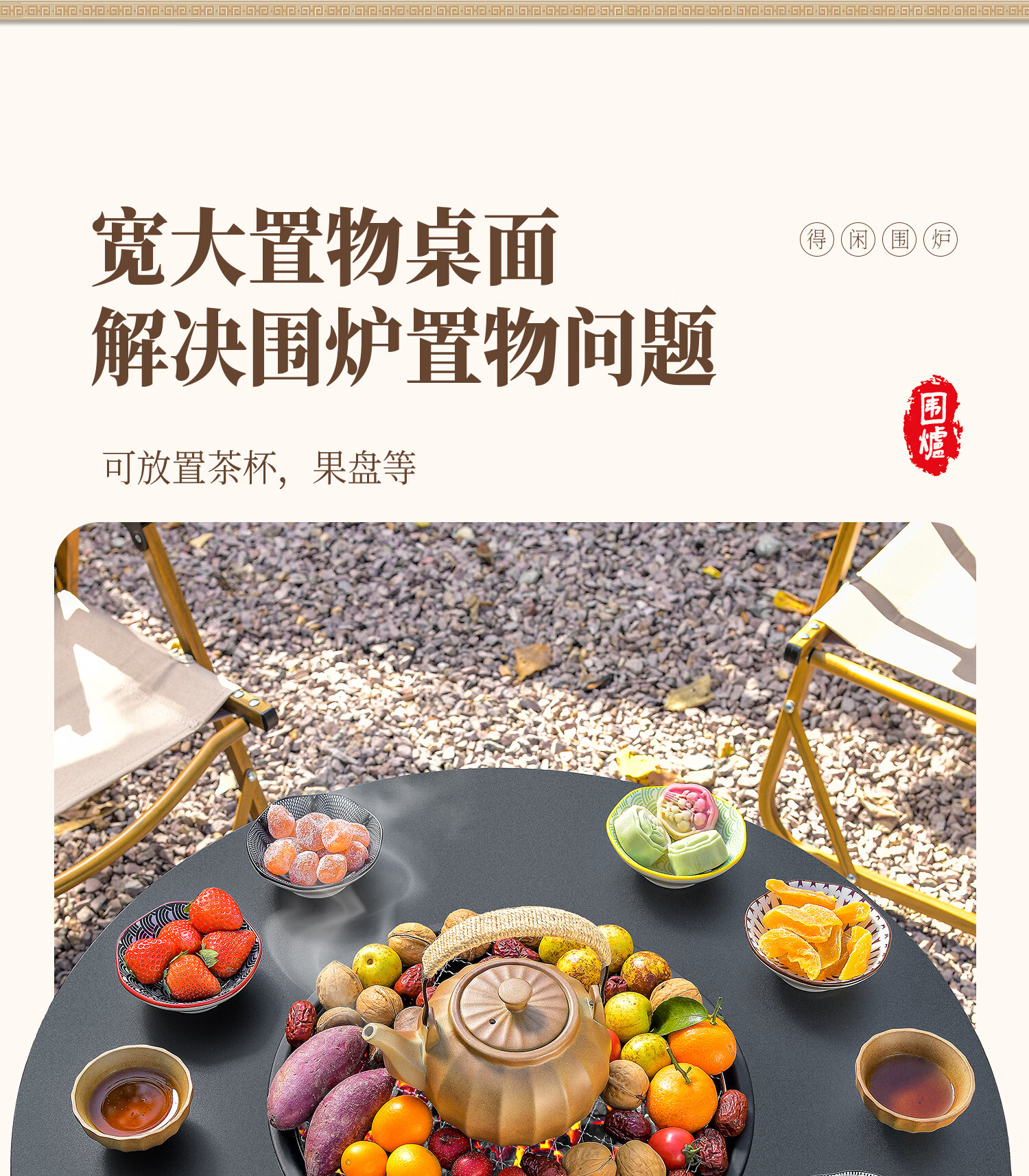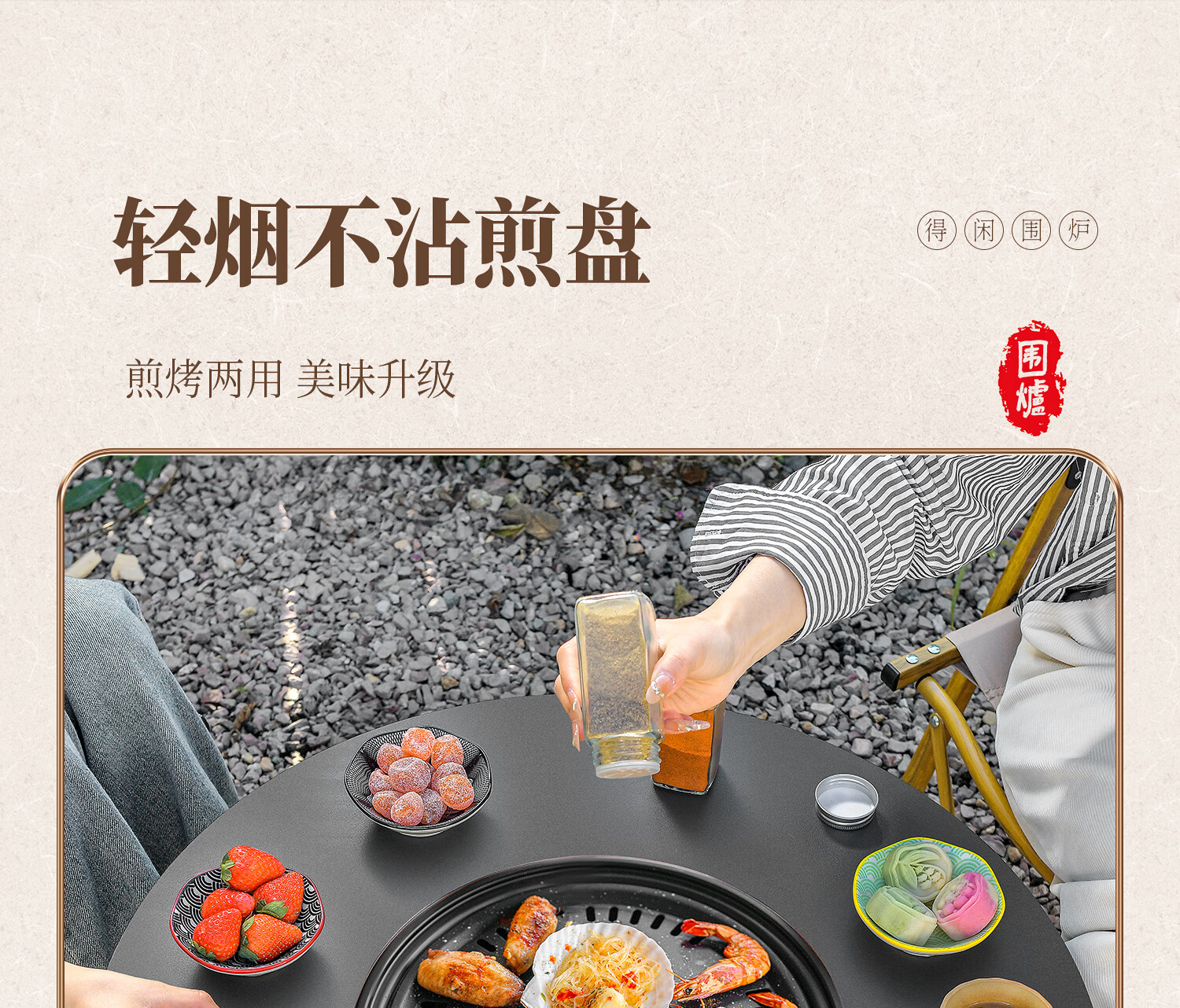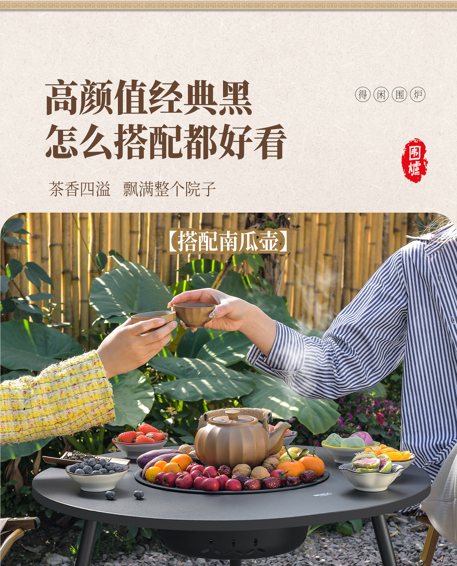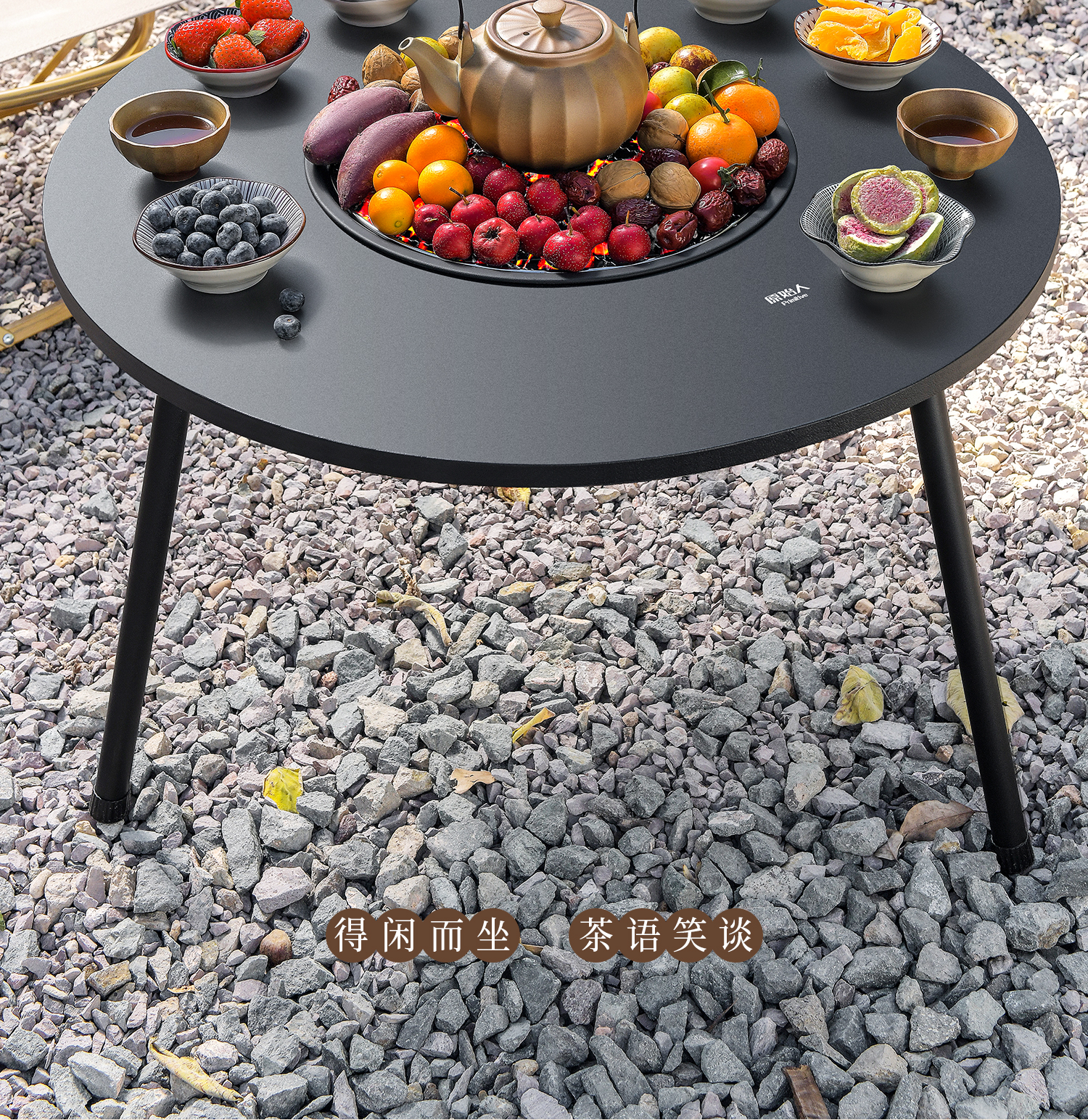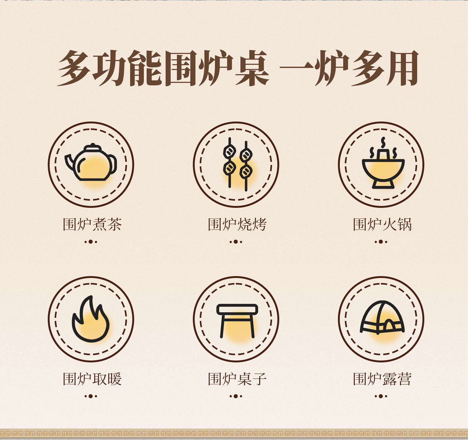 Primitive tea-making barbecue stove for household indoor barbecue stove set outdoor barbecue table heating basin charcoal barbecue grill 80CM thickened large table stove with 7-piece set + frying pan + cover + storage bag