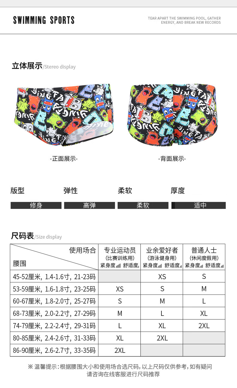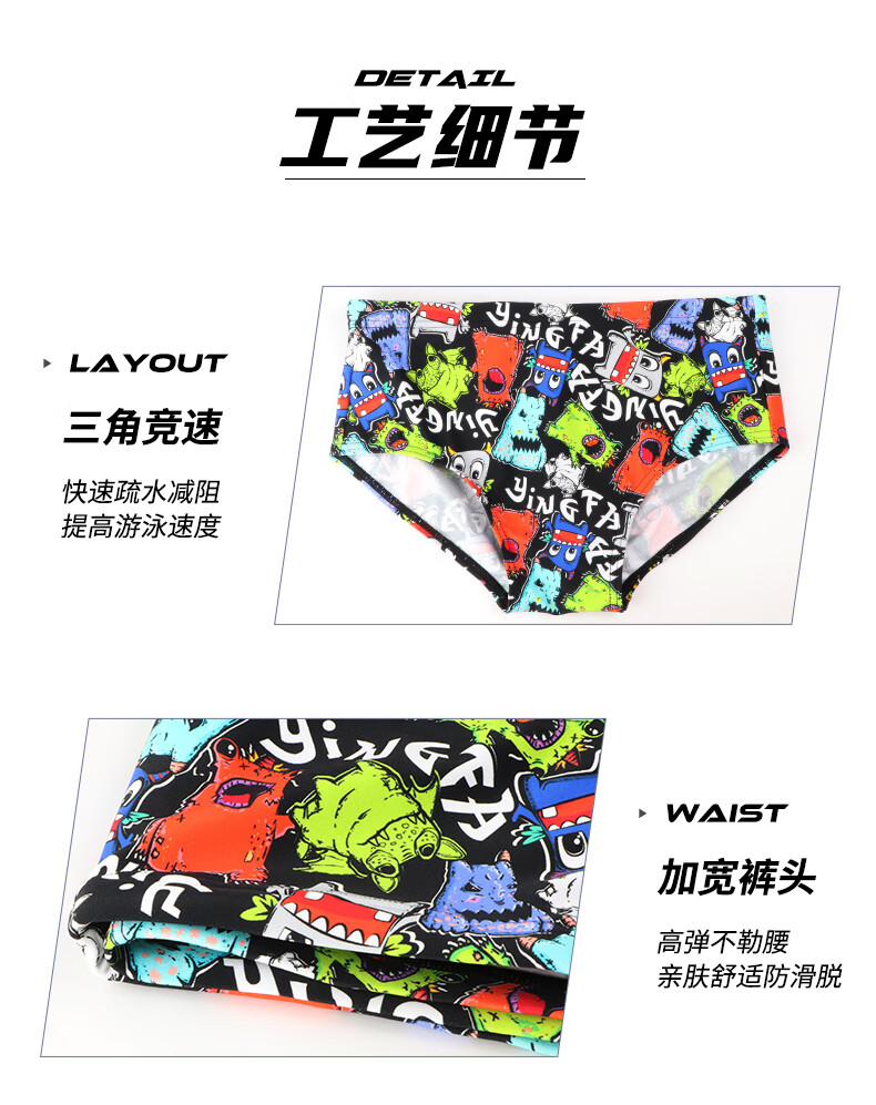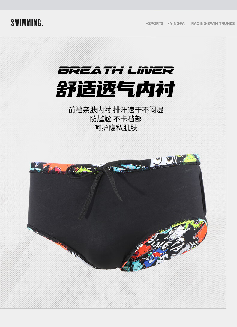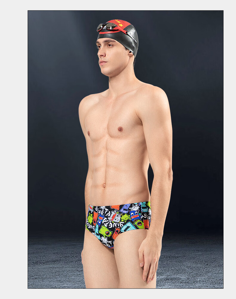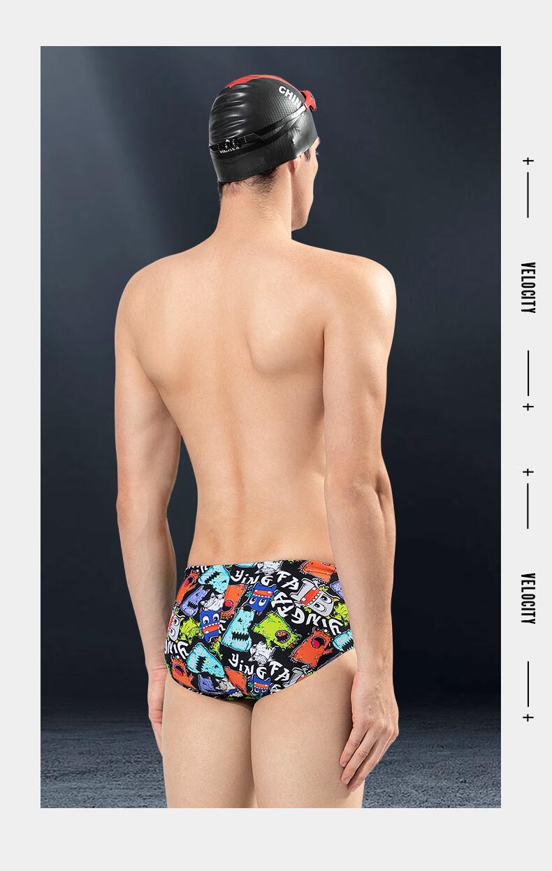 YINGFA men's swimming trunks, professional racing swimming trunks, men's swimming training equipment, children and adults new triangle swimming trunks, graffiti printing, professional wide-brimmed triangle swimming trunks S Recommended waist size 60--67CM