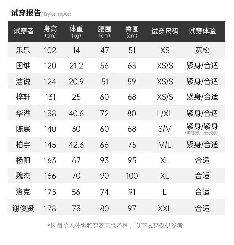 China (cm) 160-165/84-86 165-170 / 88-90 167-172 / 92-96 168-173 / 98-102 170-176 / 106-110