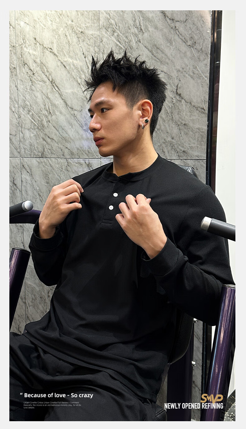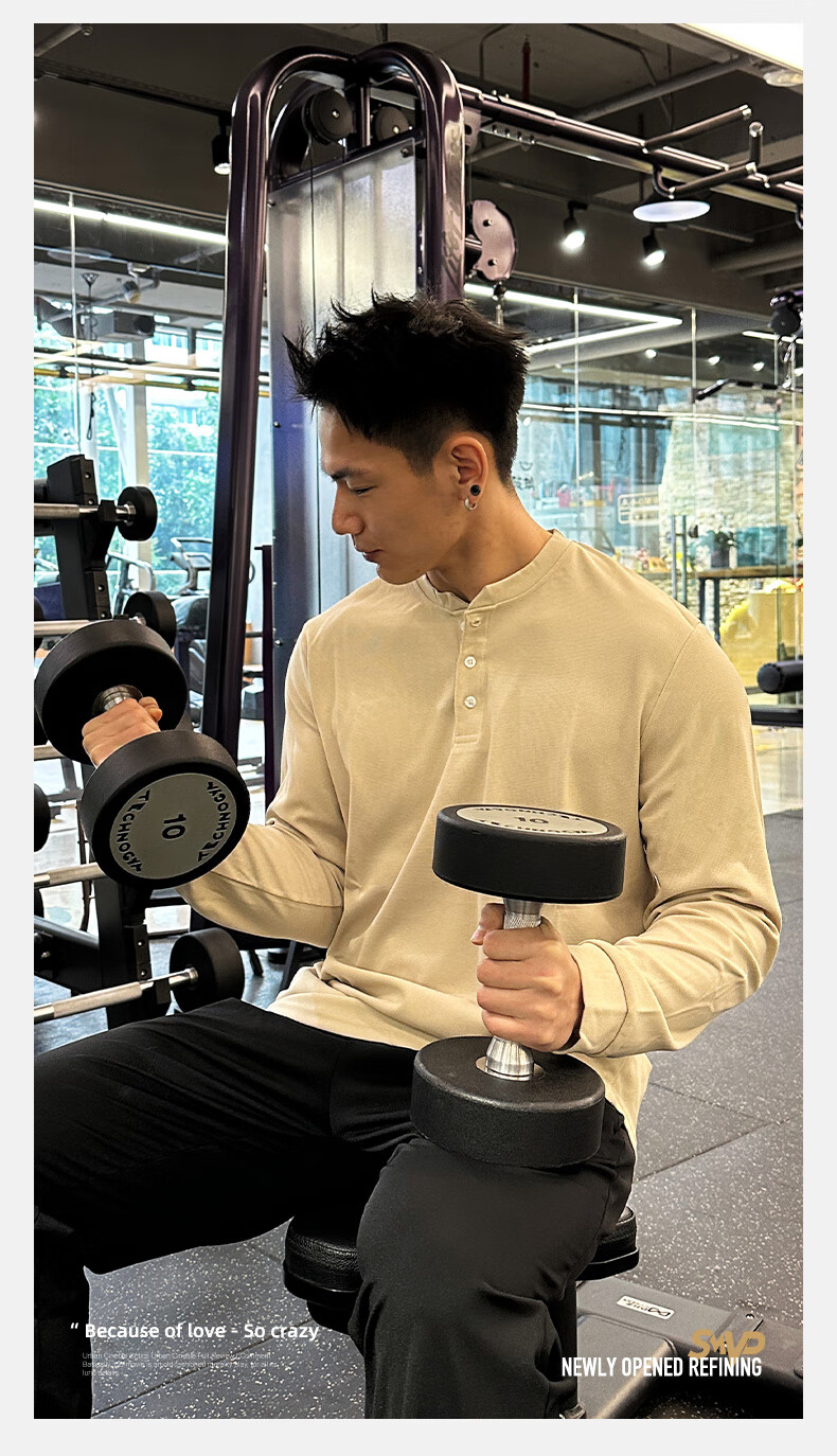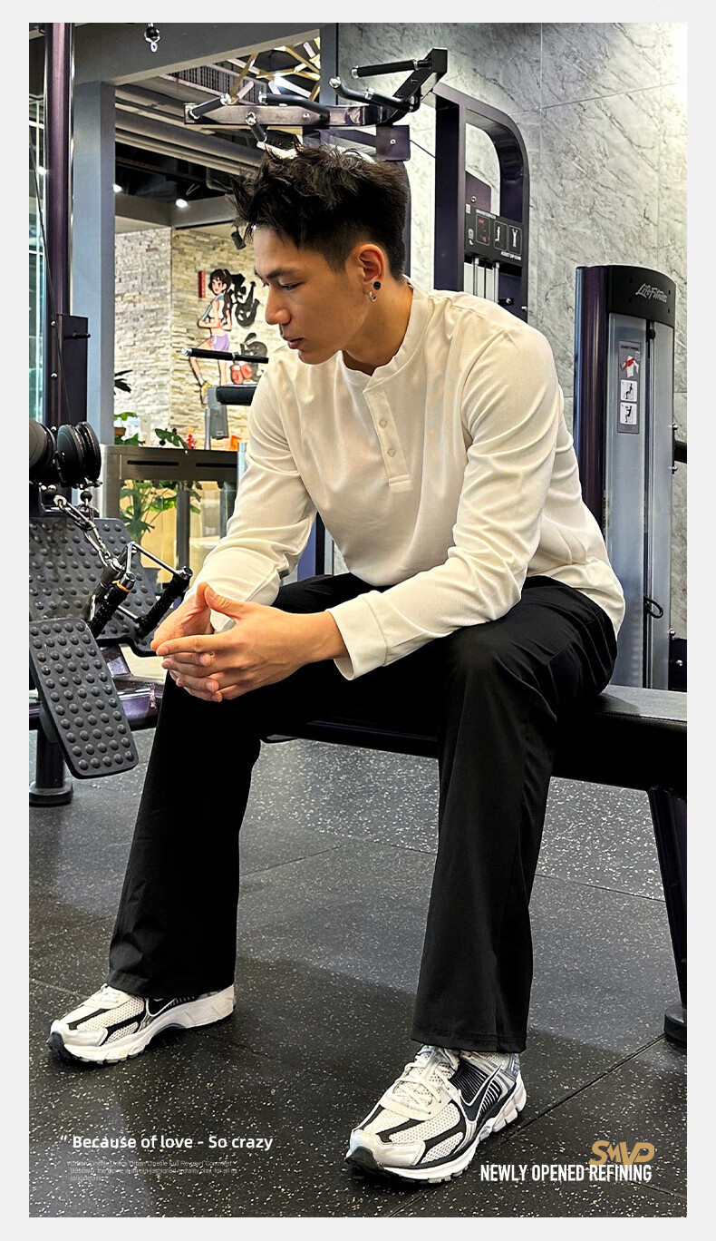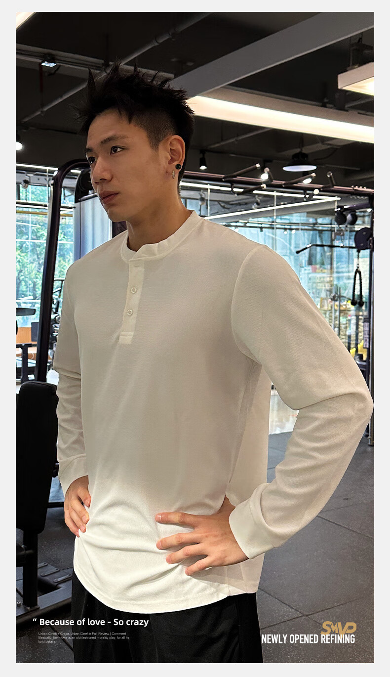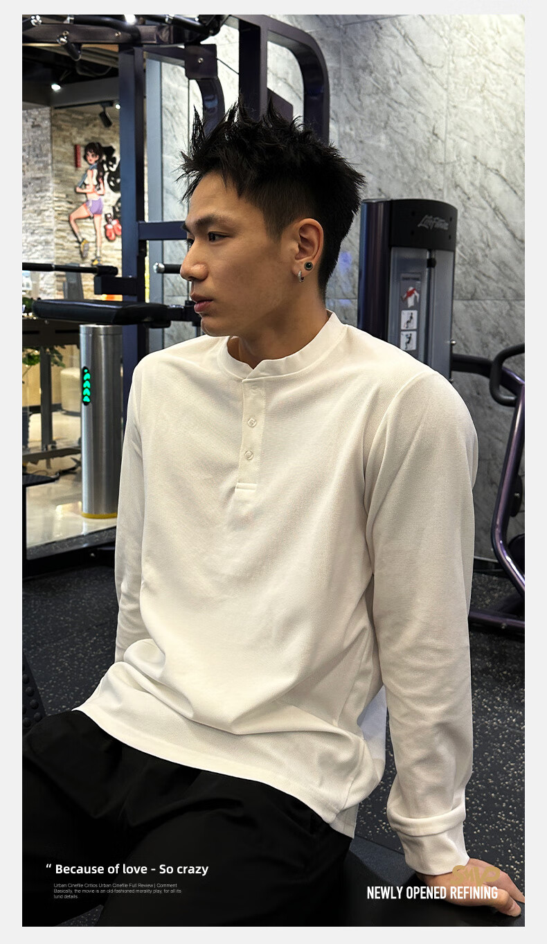 Continued pattern autumn American retro henley collar sweatshirt men's tough guy Ami khaki running fitness quick-drying shirt long sleeve waffle henley shirt long sleeve 9155-black L