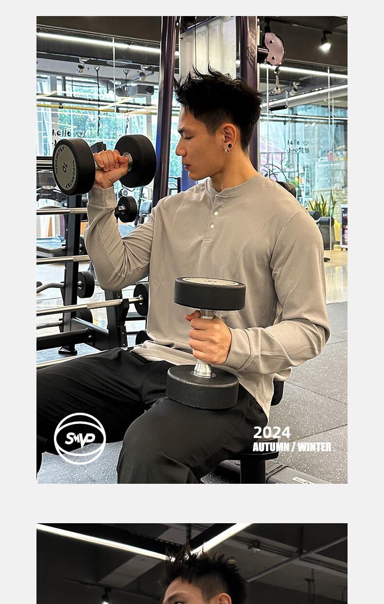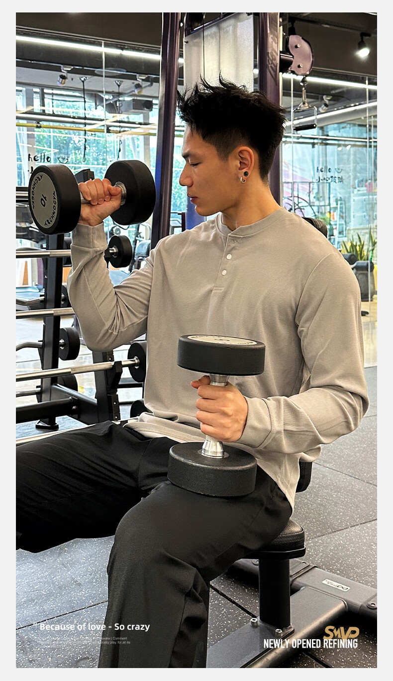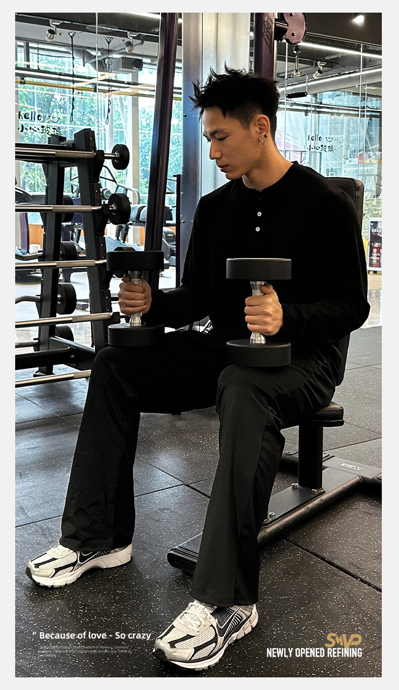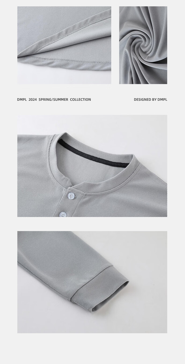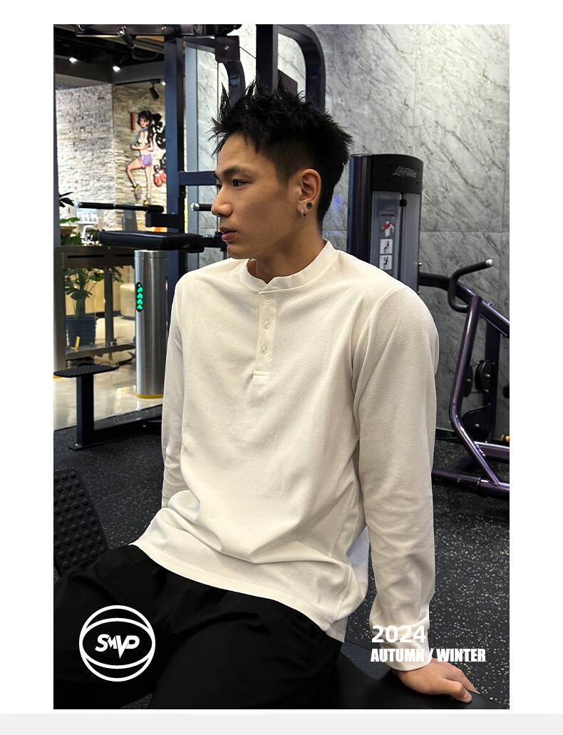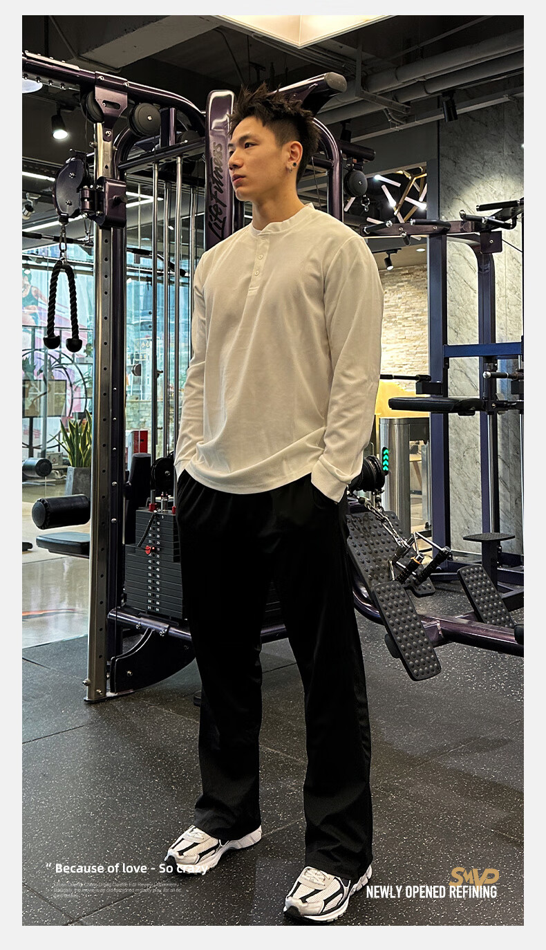 Continued pattern autumn American retro henley collar sweatshirt men's tough guy Ami khaki running fitness quick-drying shirt long sleeve waffle henley shirt long sleeve 9155-black L
