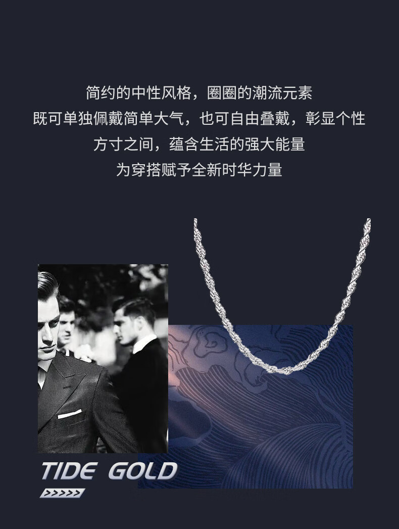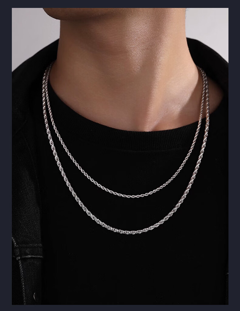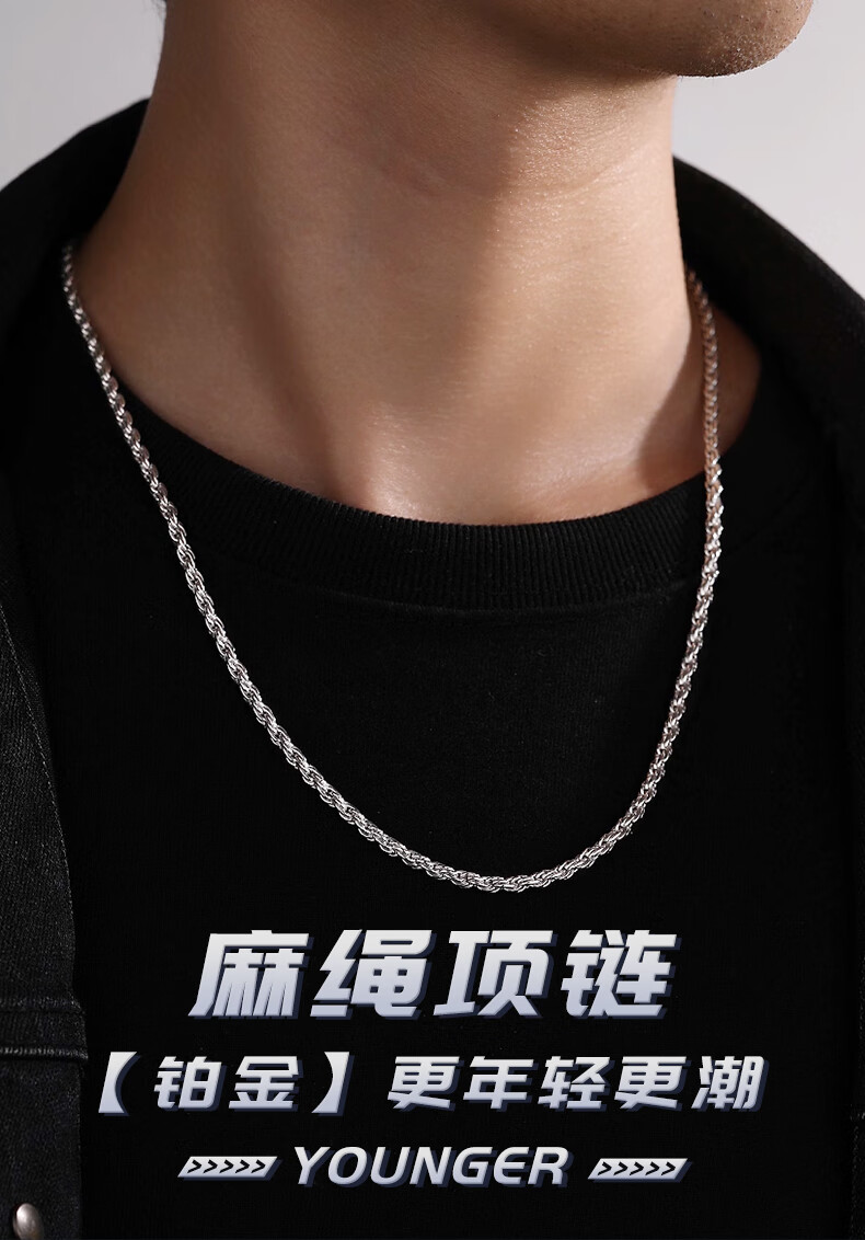 Ruofei platinum men's necklace pt950 platinum necklace men's simple trendy brand hemp rope necklace men's solid necklace gift platinum 950 length 60-65cm weight 53-55 grams