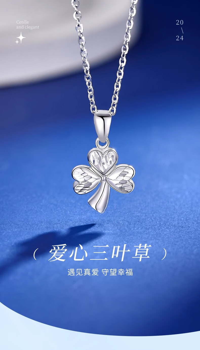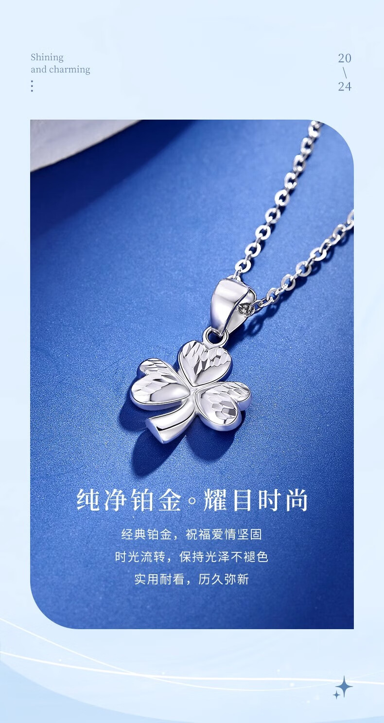 China Gold (CHINA GOLD) Clover Platinum Pendant for Women PT950 Platinum Necklace Clavicle Chain Wedding and Birthday Gift for Girlfriend and Wife Platinum Clover Pendant About 1.8g Free Silver Chain