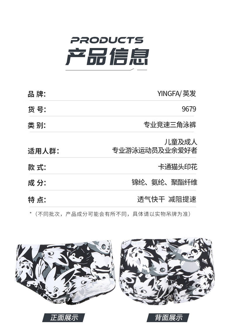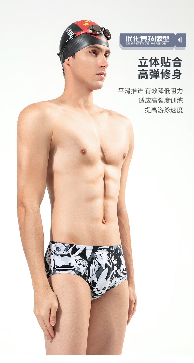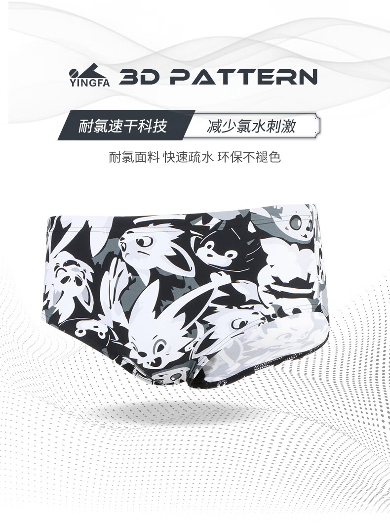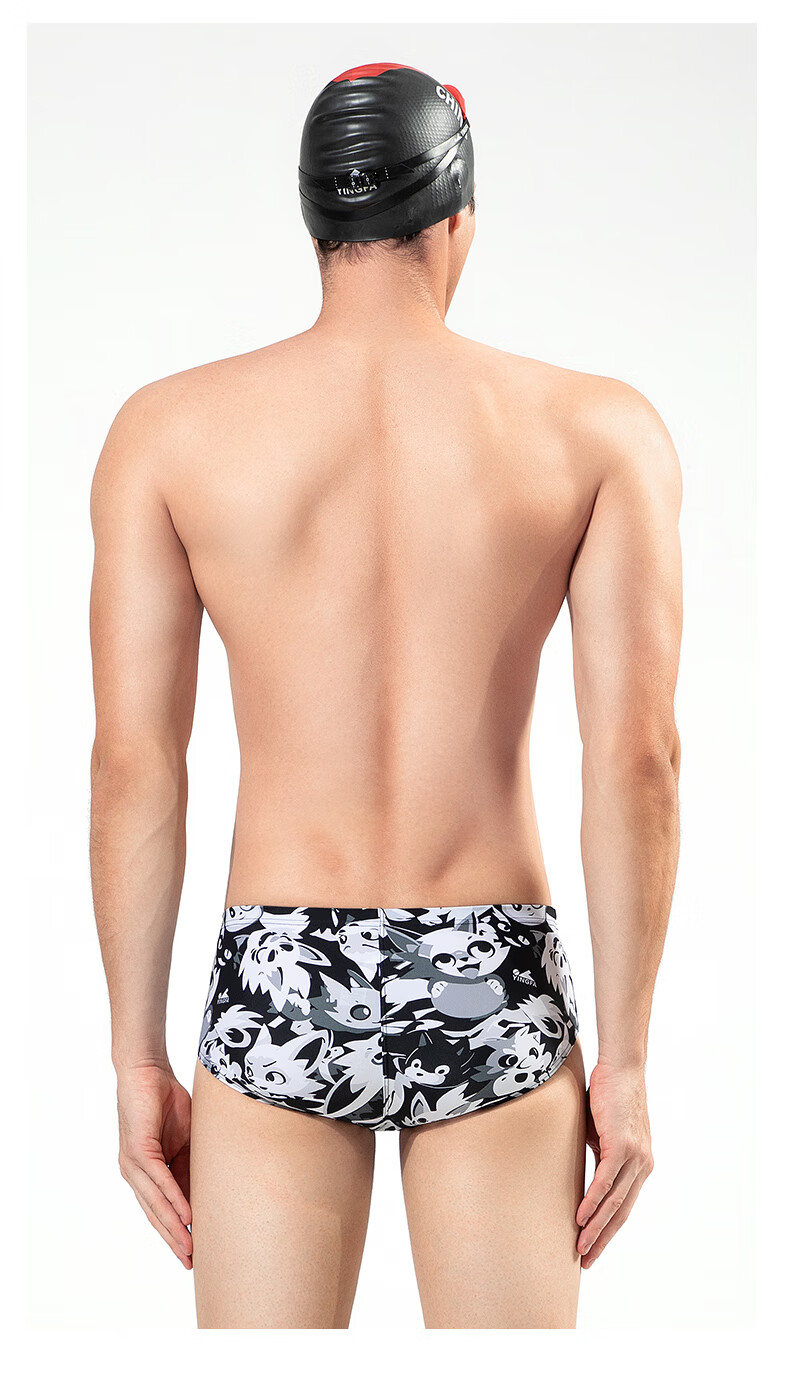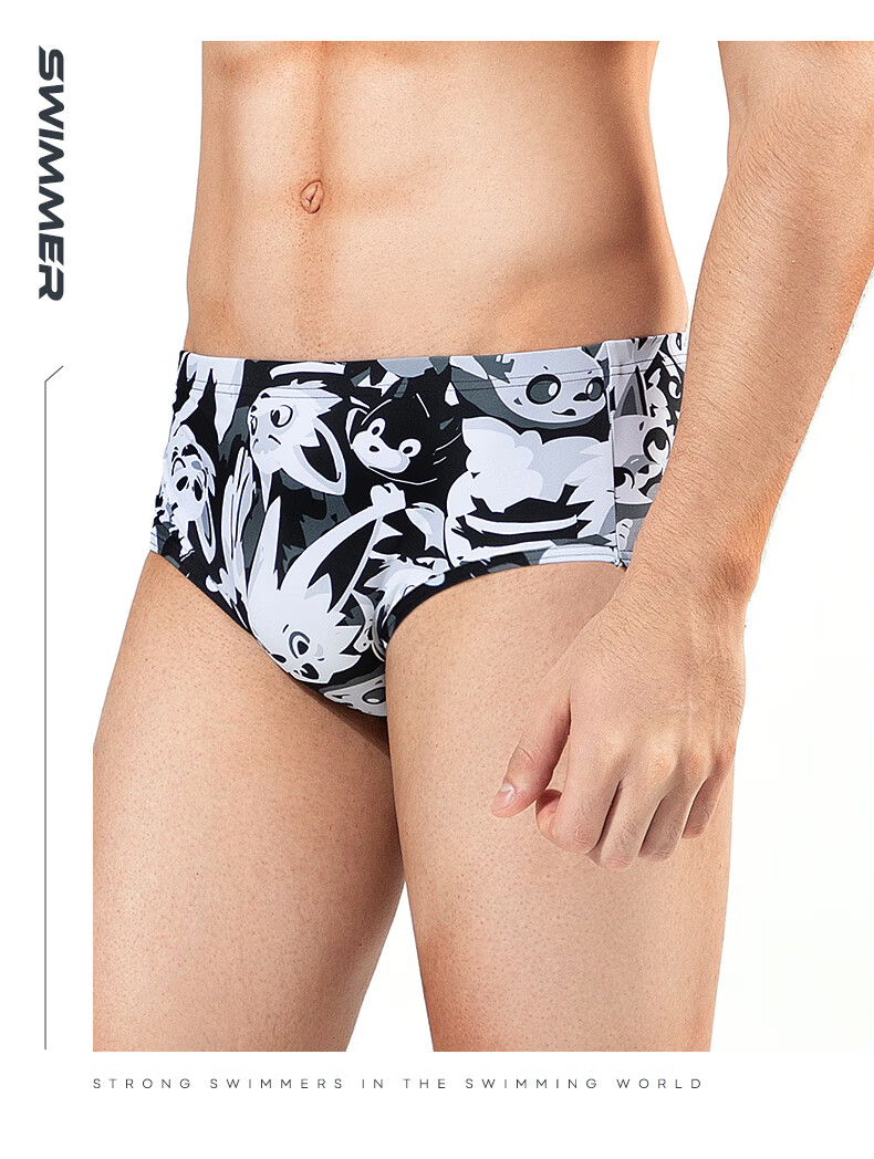 YINGFA swimming trunks men's professional racing briefs men's swimsuit new adult swimming training fashionable swimming briefs black and white print professional wide-brimmed briefs S recommended waist 60--67CM