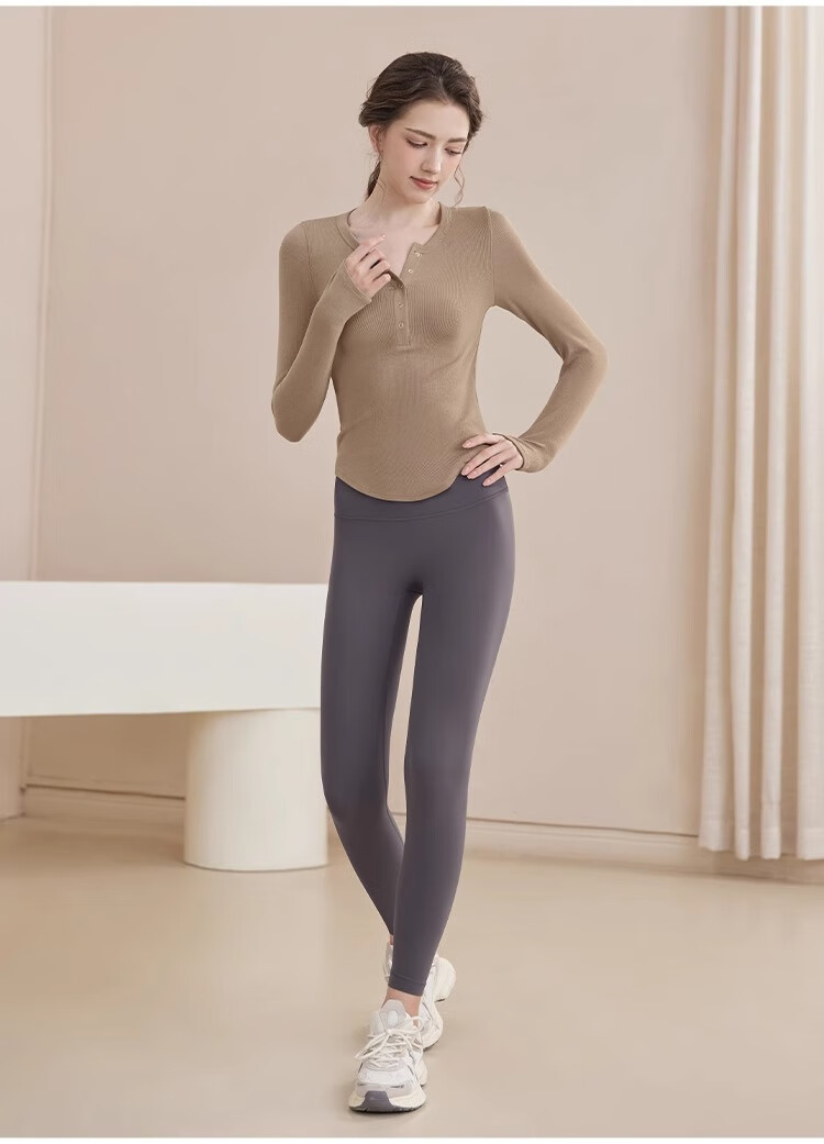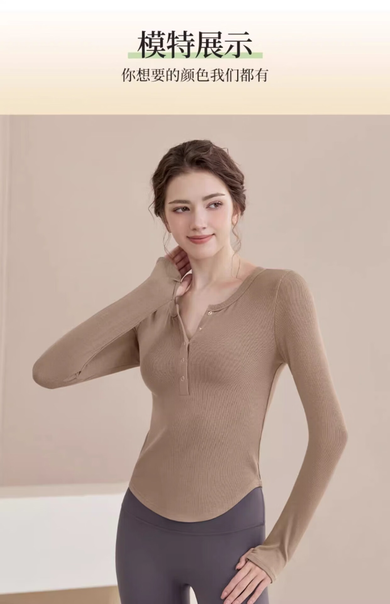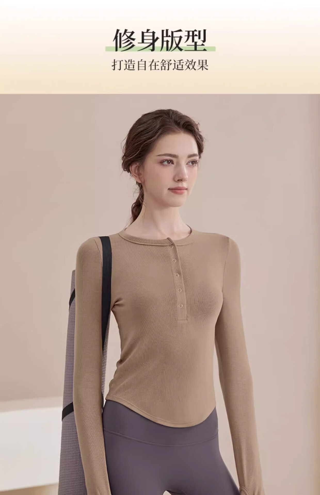 LULU CENTURY Slim Casual Button Yoga Wear Women's Long Sleeve 2025 New Slim Fitness Pilates Sports Top Training Wear Rose Pink L