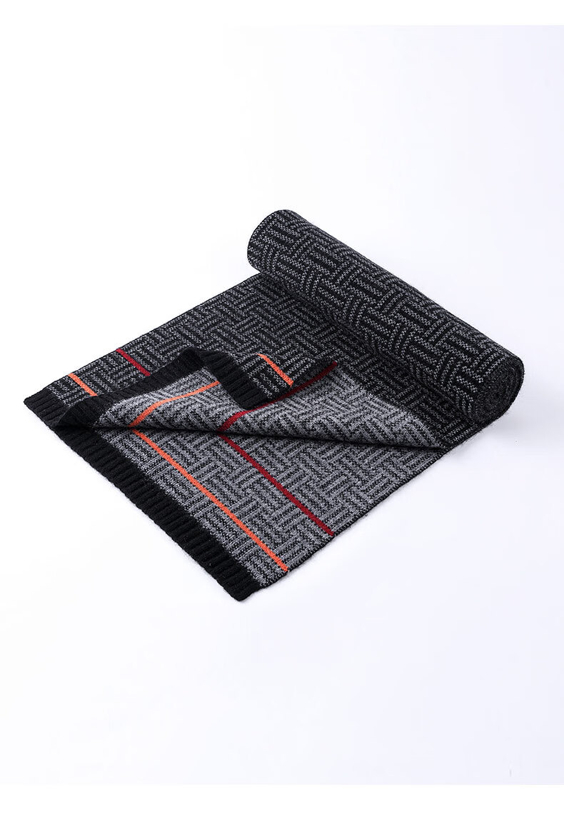 Hengyuanxiang winter scarf men's warm cashmere red all-match casual scarf wool cold-proof thickened animal year gift 9467 black gray