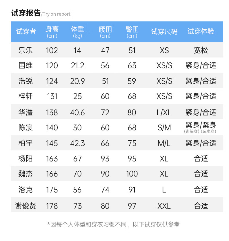 China (cm) 160-165/84-86 165-170 / 88-90 167-172 / 92-96 168-173 / 98-102 170-176 / 106-110