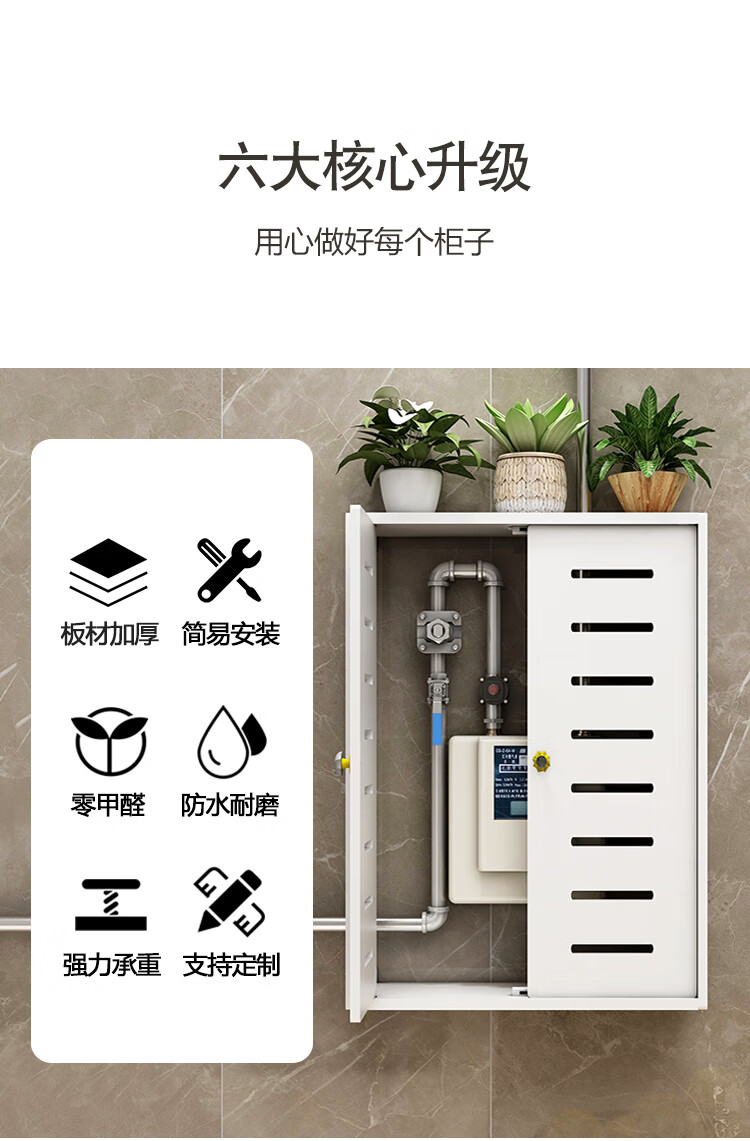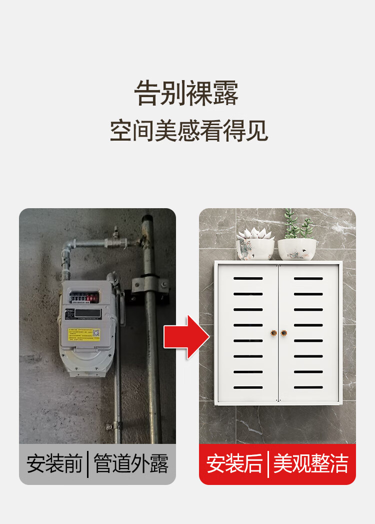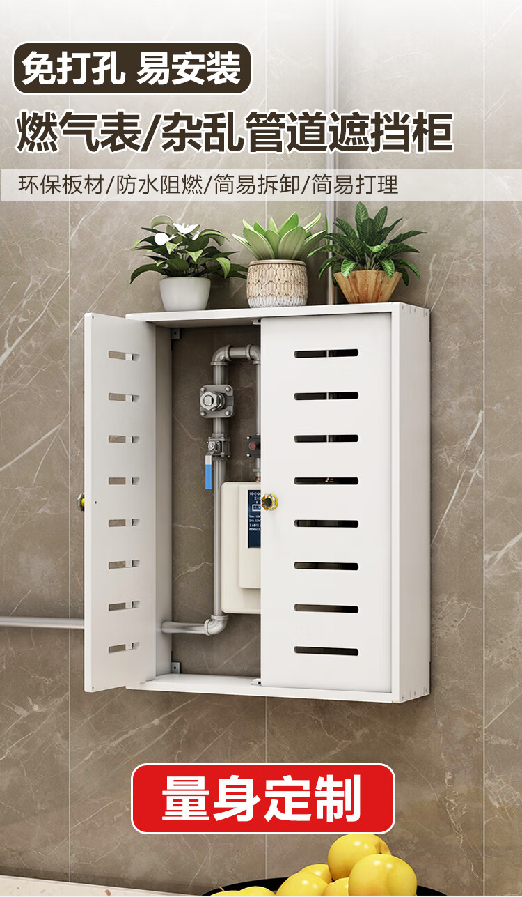 Bianzhuang Kitchen Gas Meter Natural Gas Pipe Blocking Decoration Gas Water Heater Decorative Blocking Cover Wall-hung Furnace Covering Box Width 40 Height 50 Thickness 20 Double Door Wood Plastic Board Material - Hanging Top Plate Model