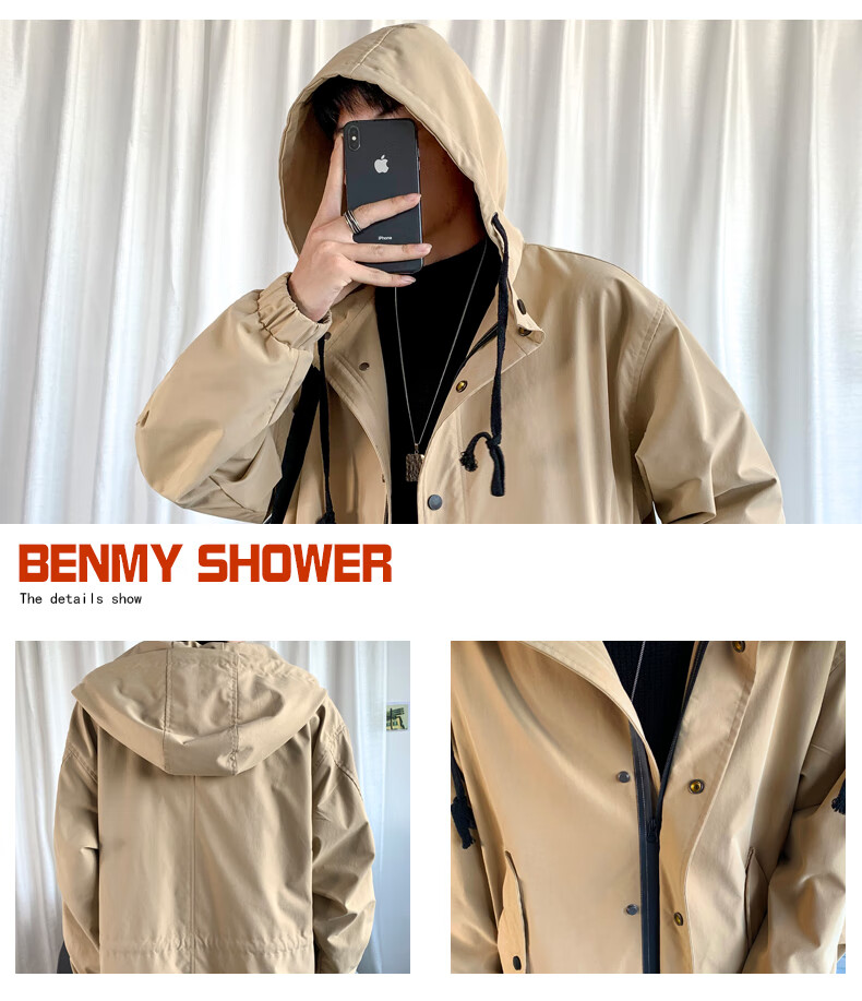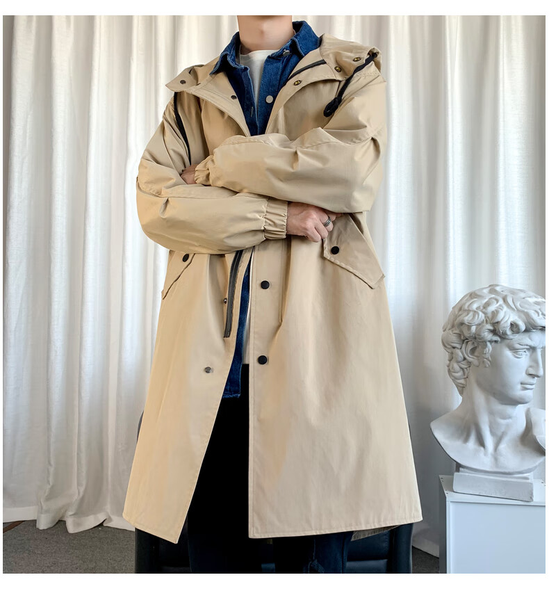 JEEP SPIRIT Jeep Windbreaker Men's Spring and Autumn Mid-Length Over-the-Knee Loose Hooded and Velvet Jacket Large Size Trendy Brand Winter Thickening 174-Dark Gray Cotton 3XL 210-230Jin Jin is equal to 0.5 kg