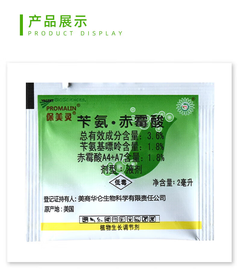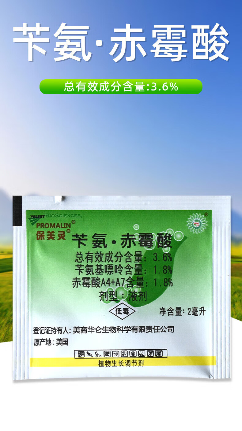 Premarin American Hualun gibberellic acid fruit tree grape strawberry expansion agent elongation agent growth agent regulator pesticide 2ml/bag