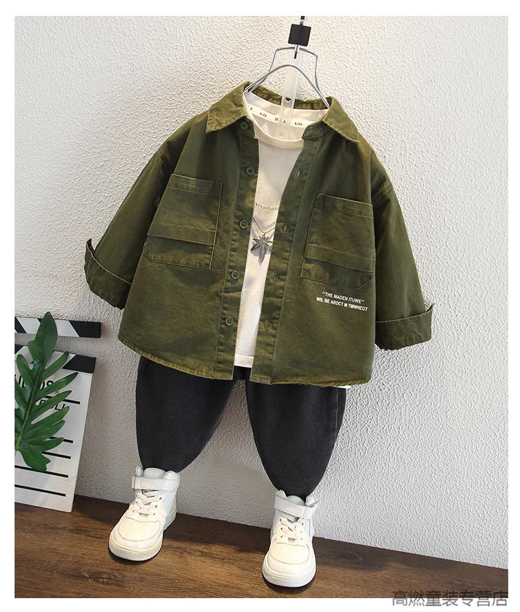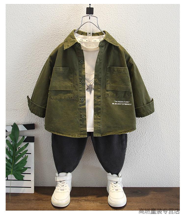 G.duck boys jacket spring and autumn children's cotton tops 2024 new baby autumn fashionable workwear jacket trendy green 90 recommended height 80cm-85cm