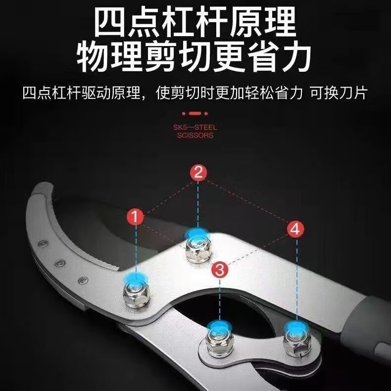 Japan's original imported Dahong thick branch shears, high-branch powerful shears, gear telescopic powerful shears, special shears for garden fruit trees, Japan's Dahong shark mouth telescopic shears nine centimeters