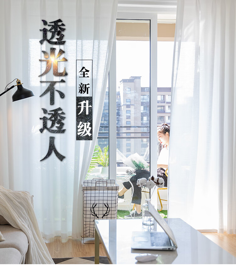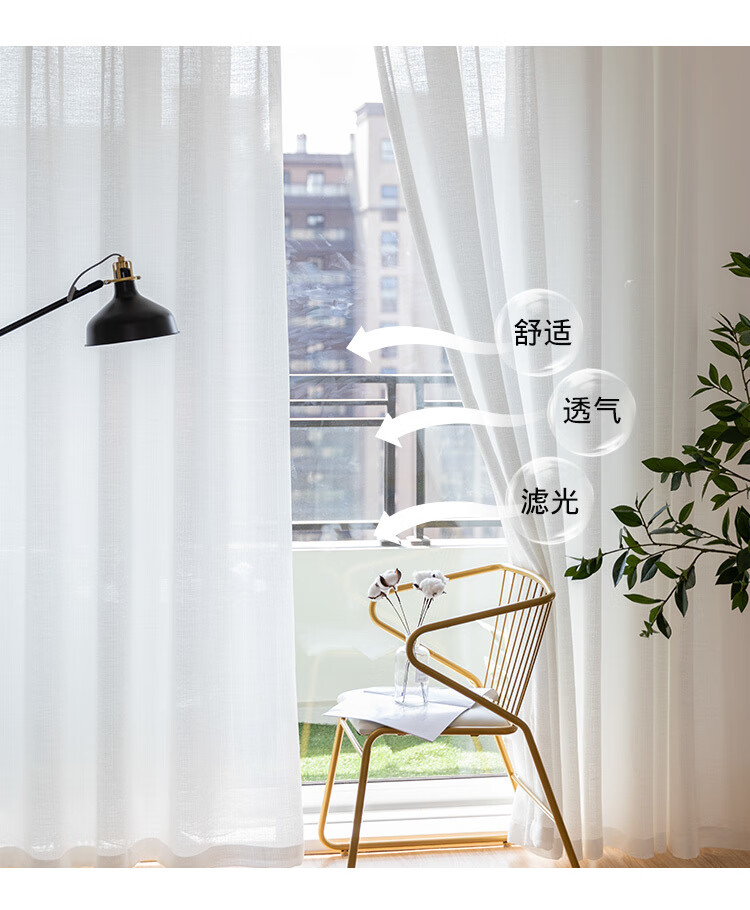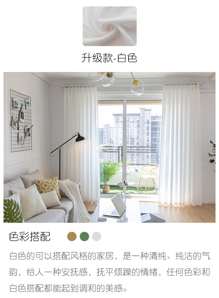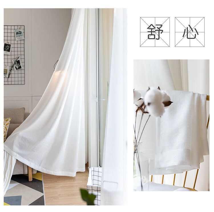 Curtain gauze curtain light-transmitting opaque gauze bay window white gauze balcony gauze partition living room semi-blackout window gauze white fabric thickened tangled gauze-white width 1.0*height 1.3 hook style one piece