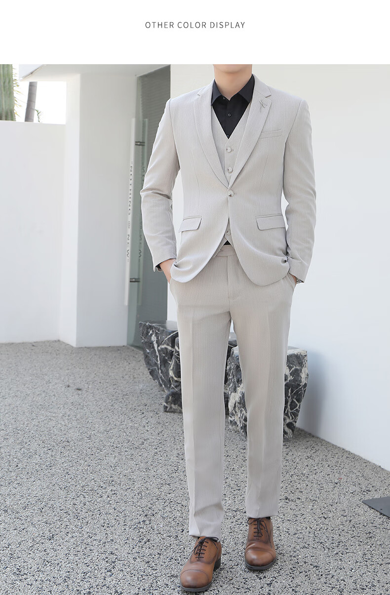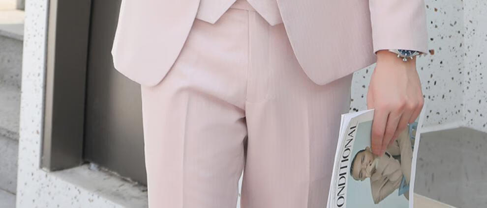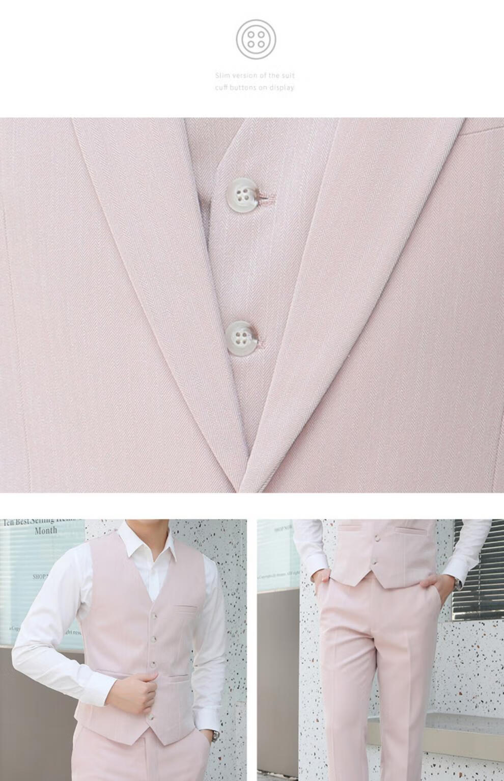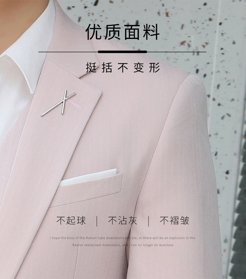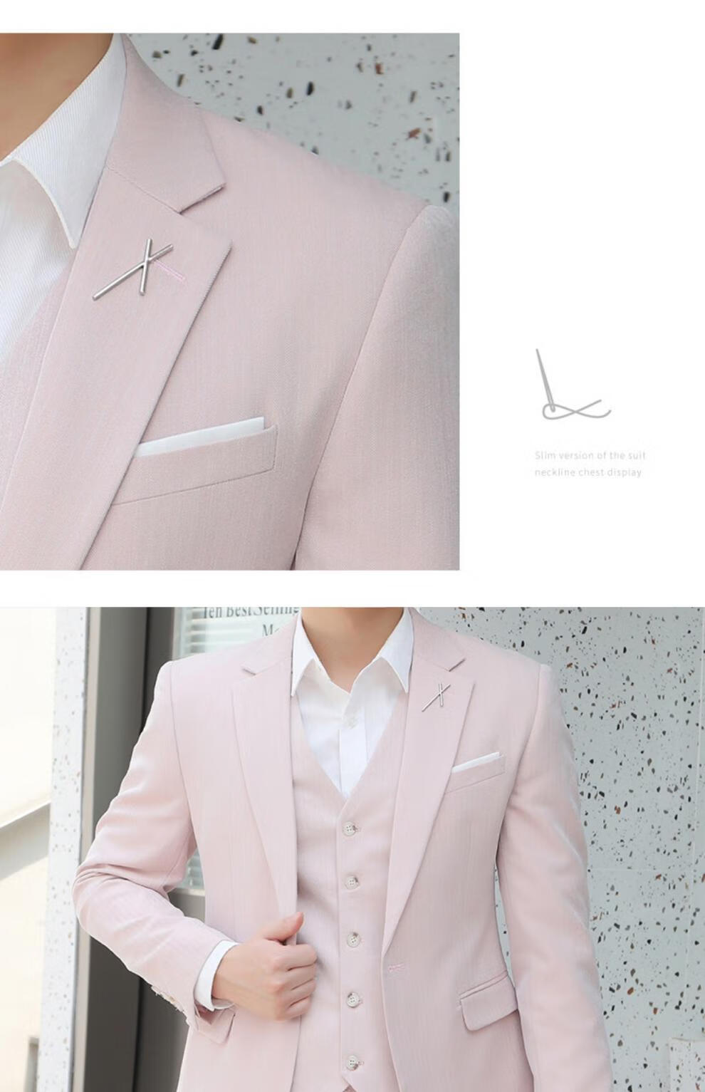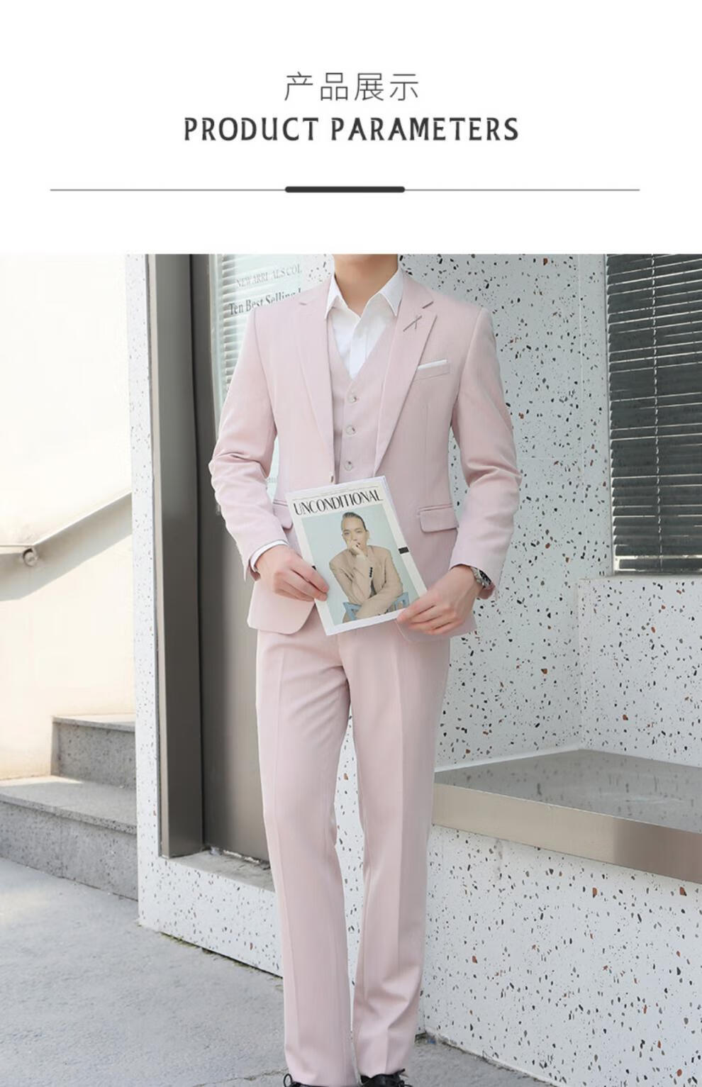 Pierre Cardin suit Korean style three-piece suit trendy slim fit business casual suit men's formal jacket men's suit pink (single suit) XL 52 (120-130Jin Jin equals 0.5kg)