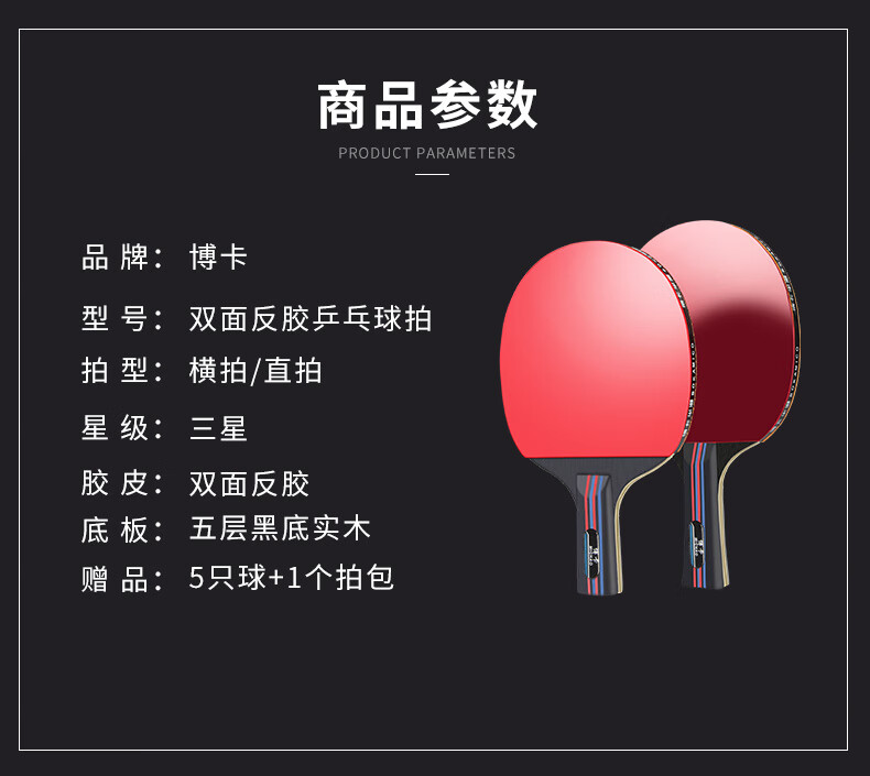 Table tennis racket 2 pack comes with three balls. Professional training for adults, students and children. Durable competition racket. 2 classic long and short handles - 5 balls + racket bag included.