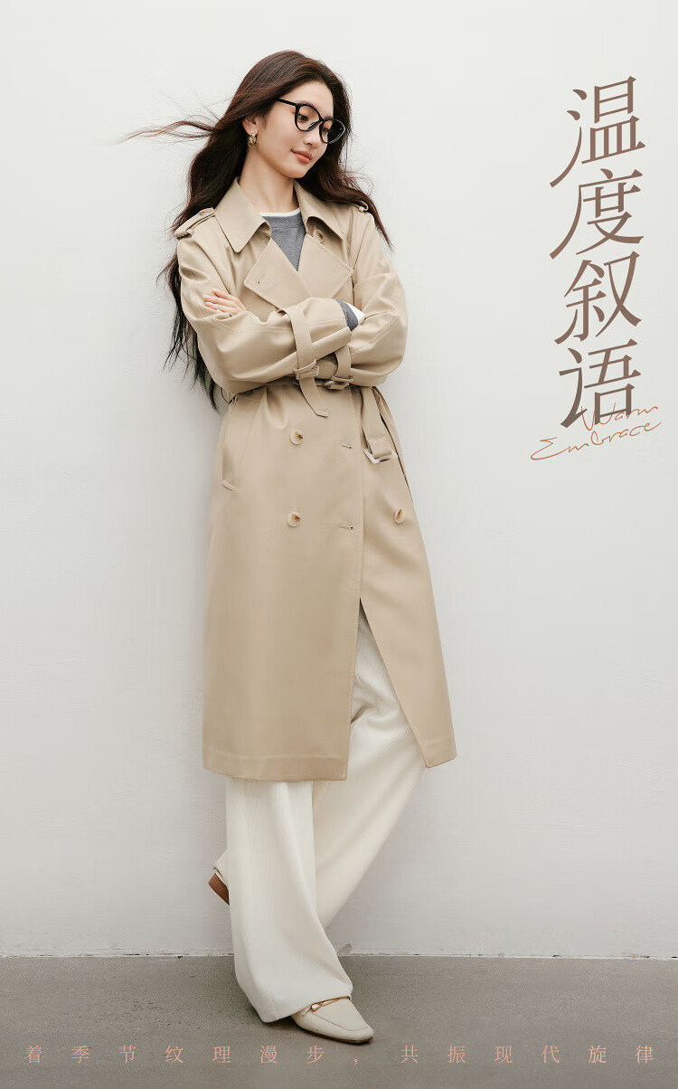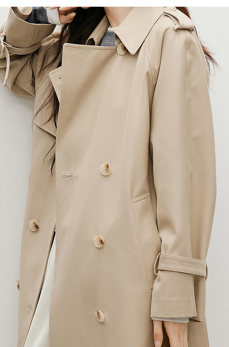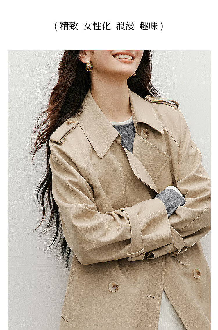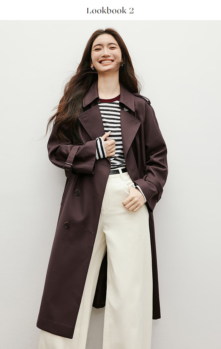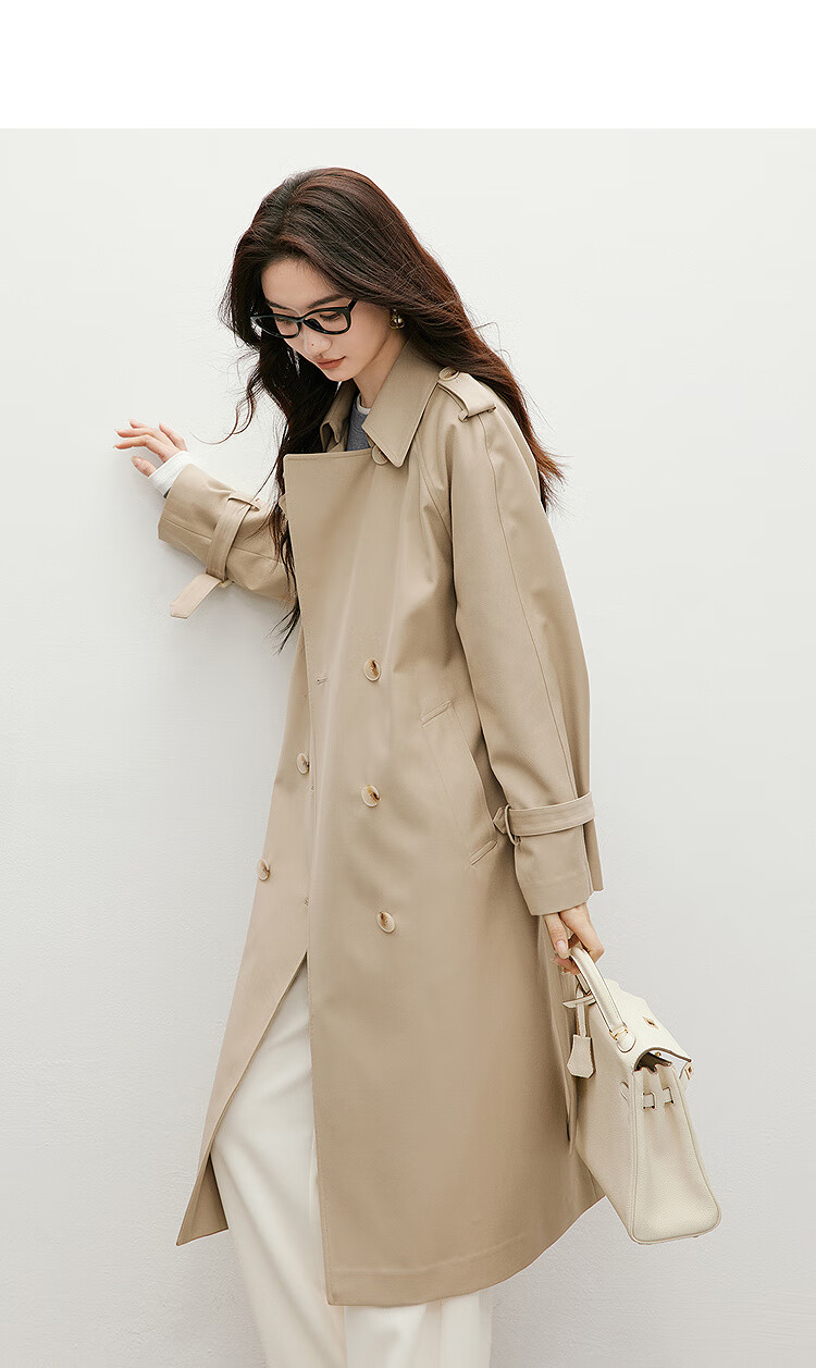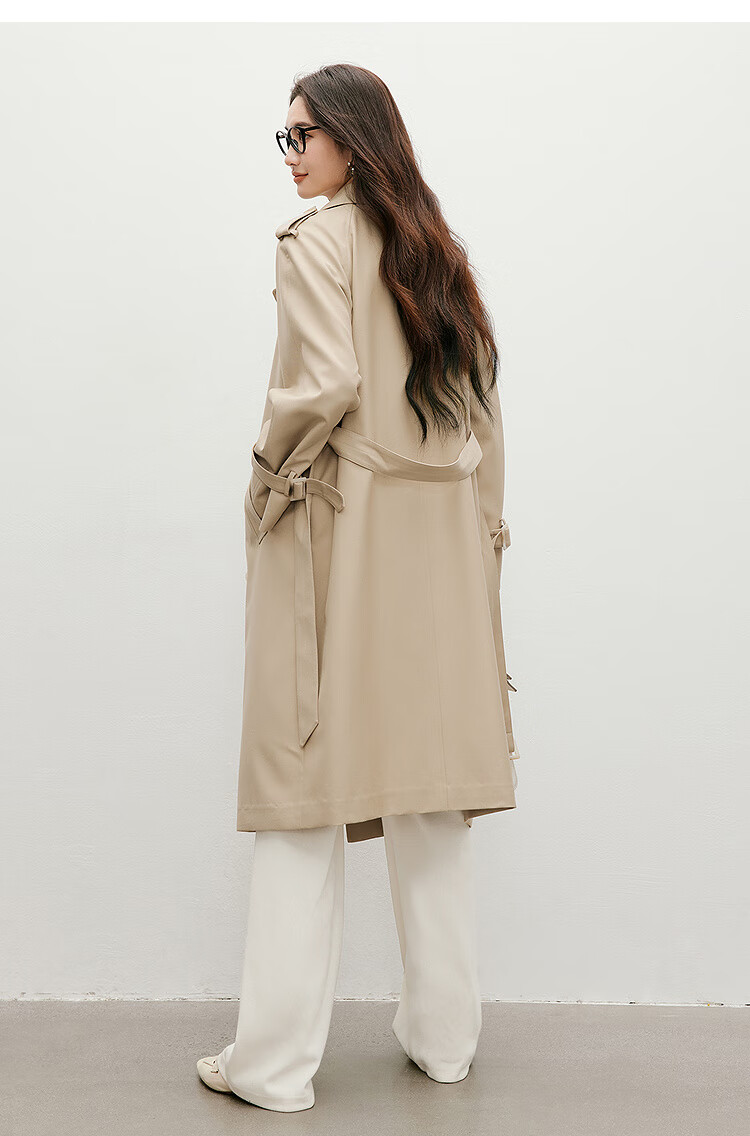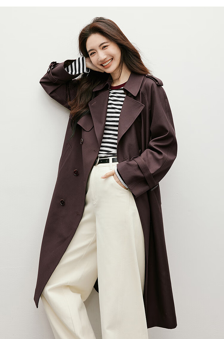 Red sleeves this year's popular windbreaker spring 2025 new women's intellectual style loose lapel casual long coat Coffee 037 S
