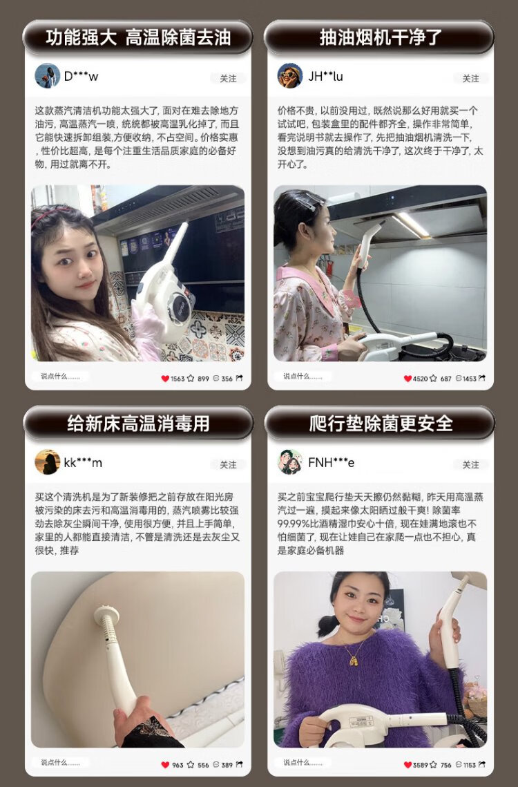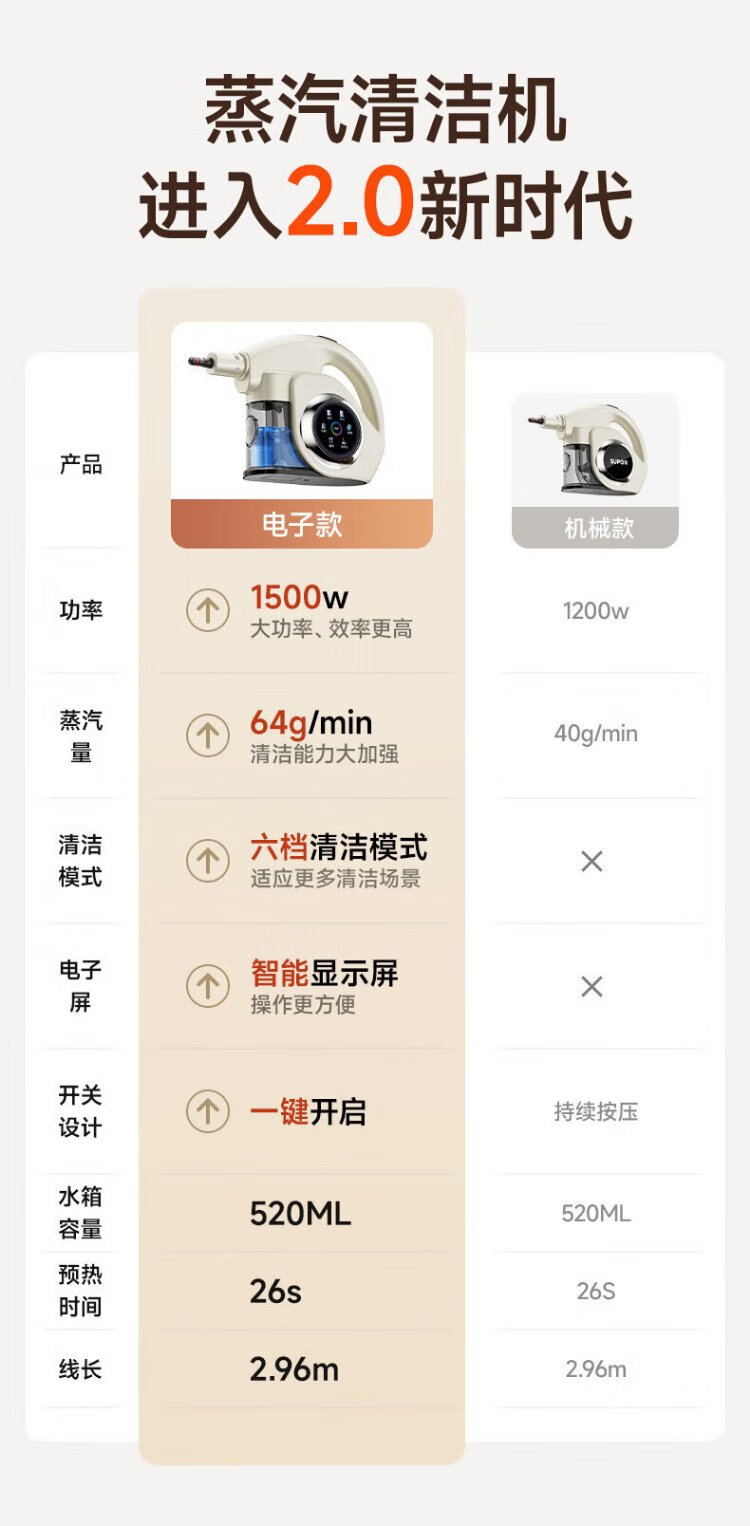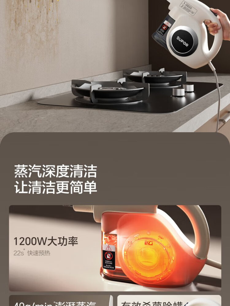 Supor Official Genuine Steam Cleaner No. 1 Household High Temperature and High Pressure Portable Sterilization Kitchen Range Hood Air Conditioner Multi-Function Cleaning Machine Small Cleaning Artifact A Newly Upgraded Smart Model Six-speed High-Temperature Cleaning Steam Engine + Oil Cleaner