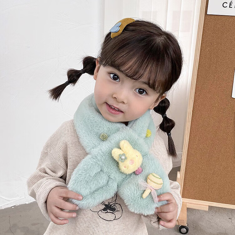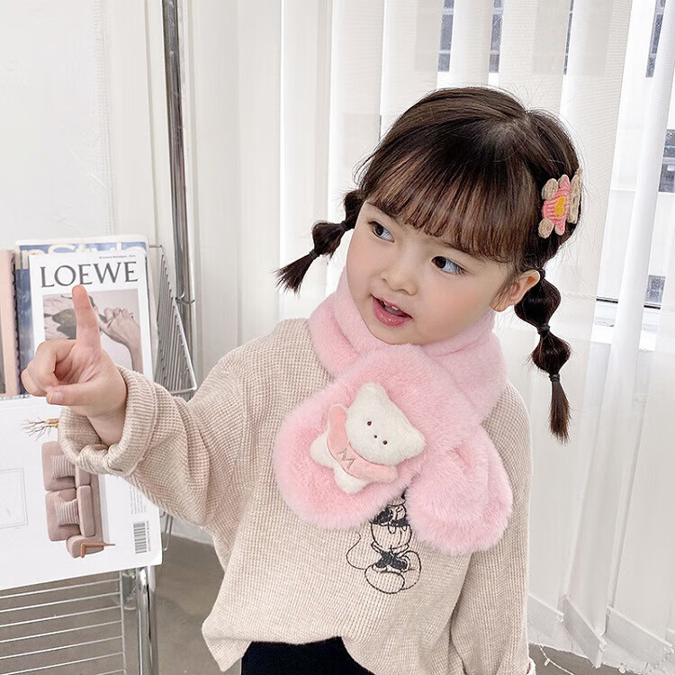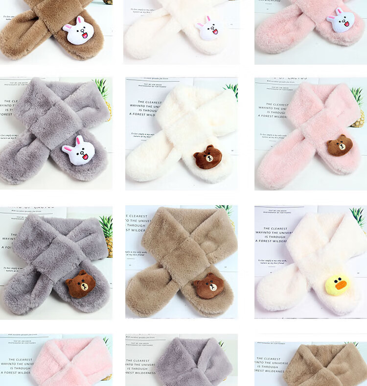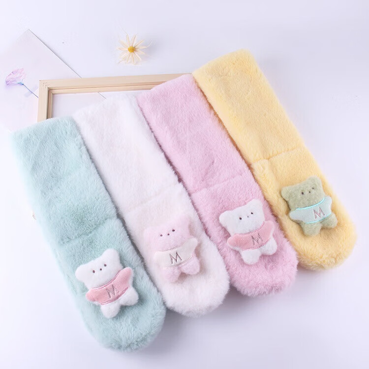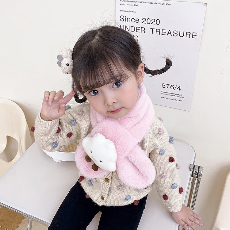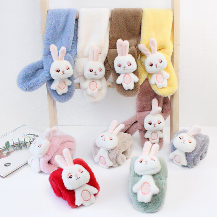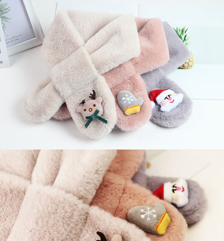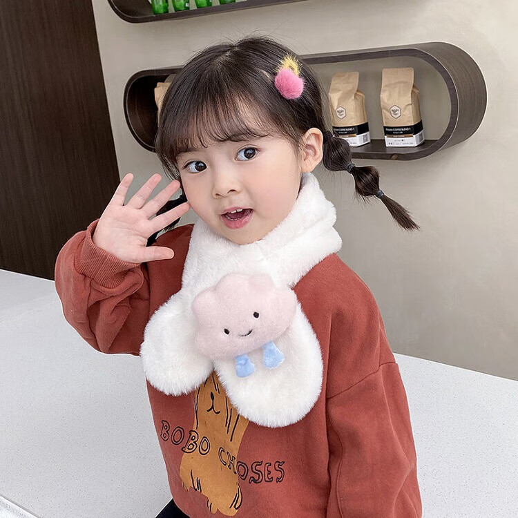 Children's scarf autumn and winter plush parent-child Christmas cute thickened cartoon imitation rabbit scarf bear white 72-76cm