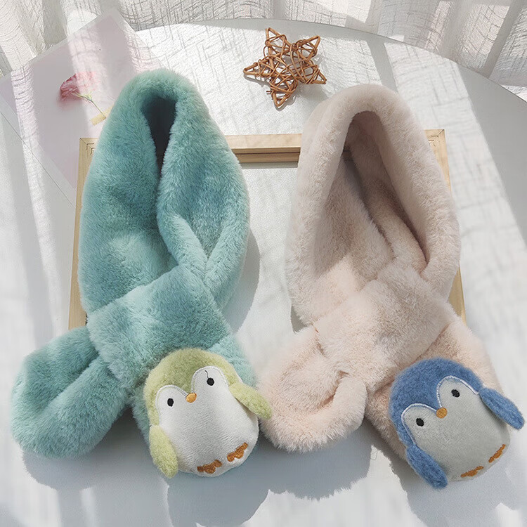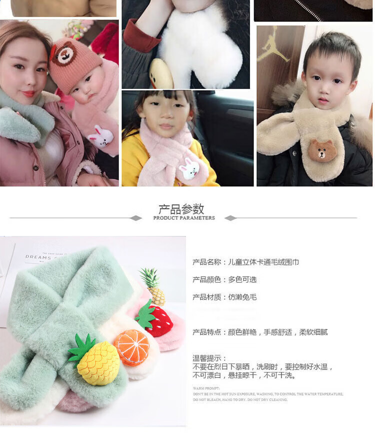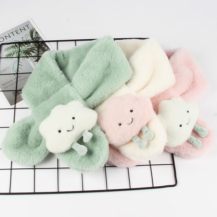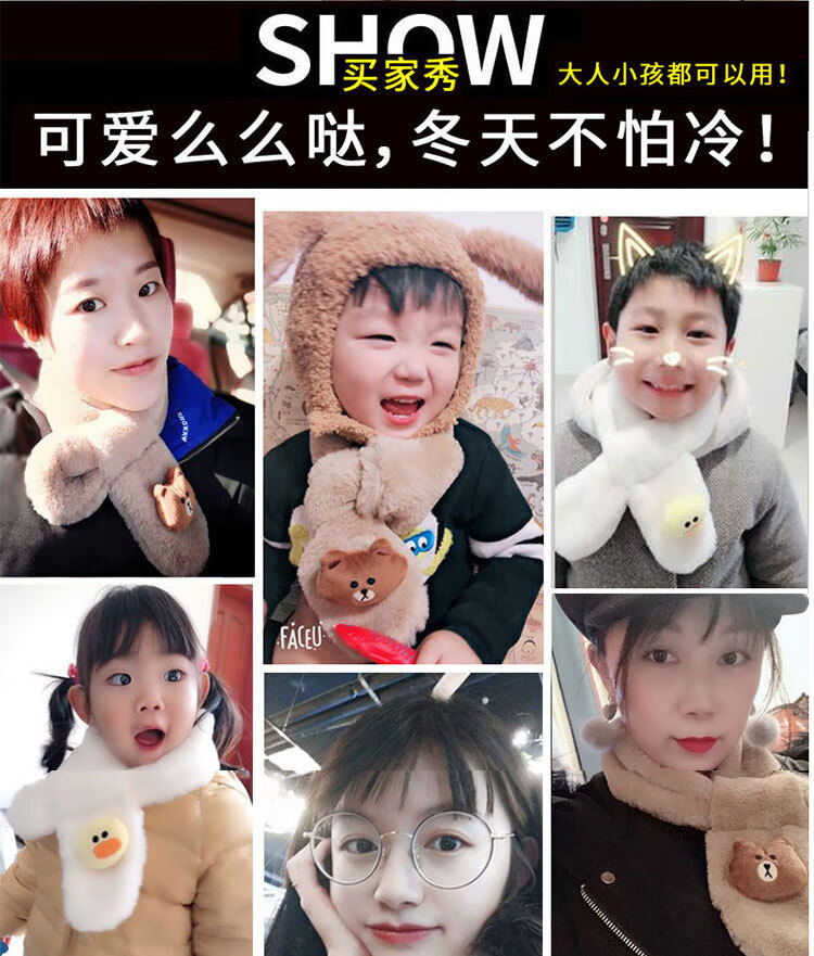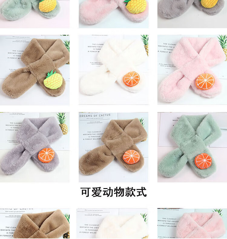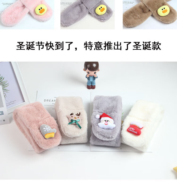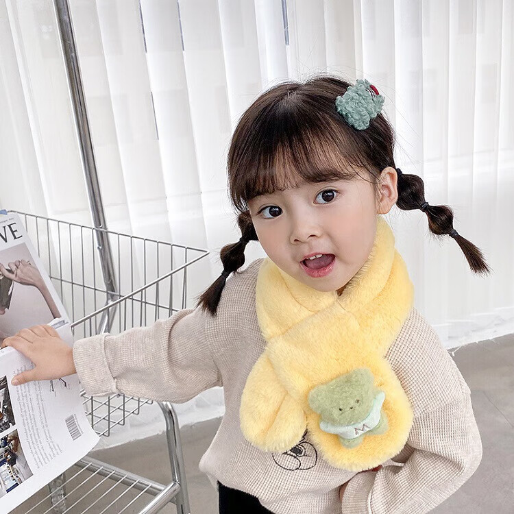 Children's scarf autumn and winter plush parent-child Christmas cute thickened cartoon imitation rabbit scarf bear white 72-76cm