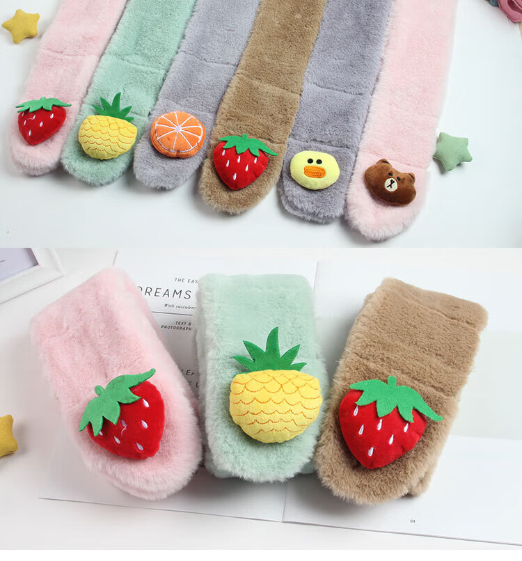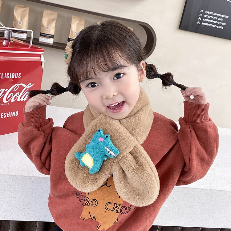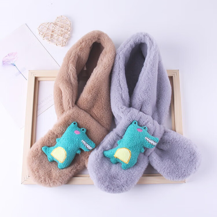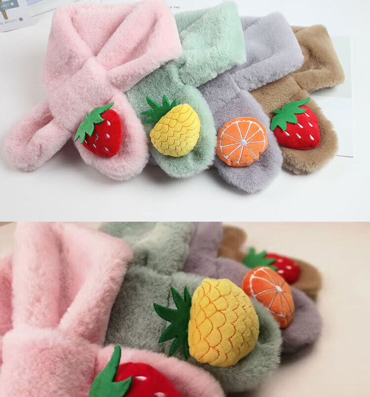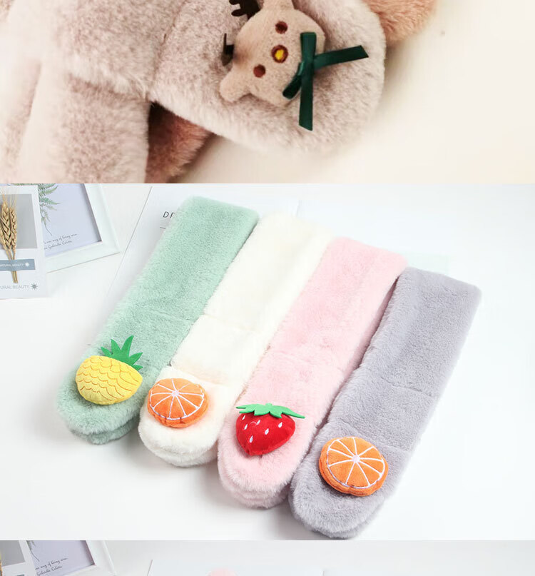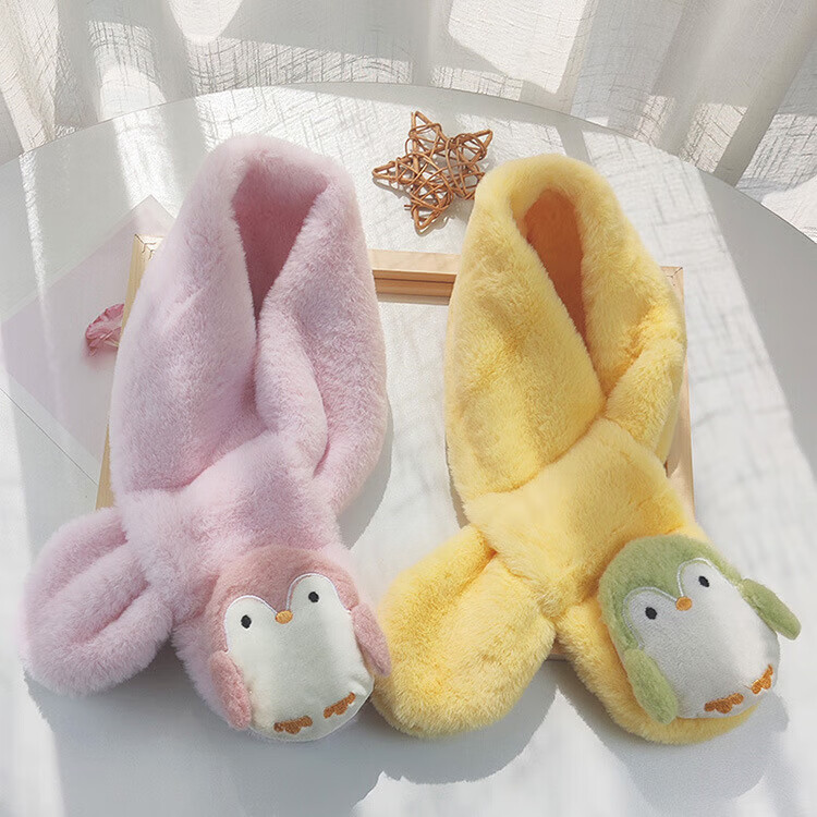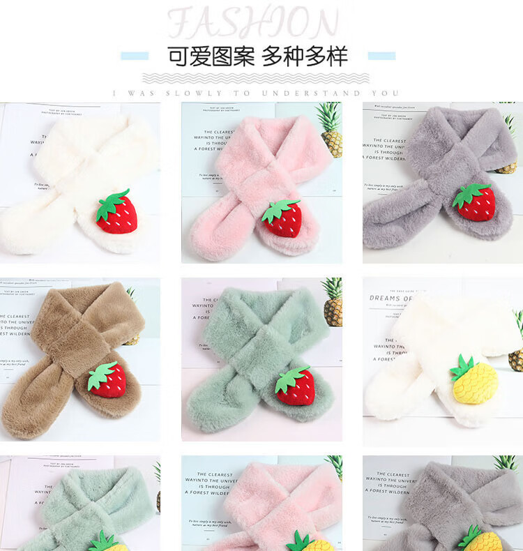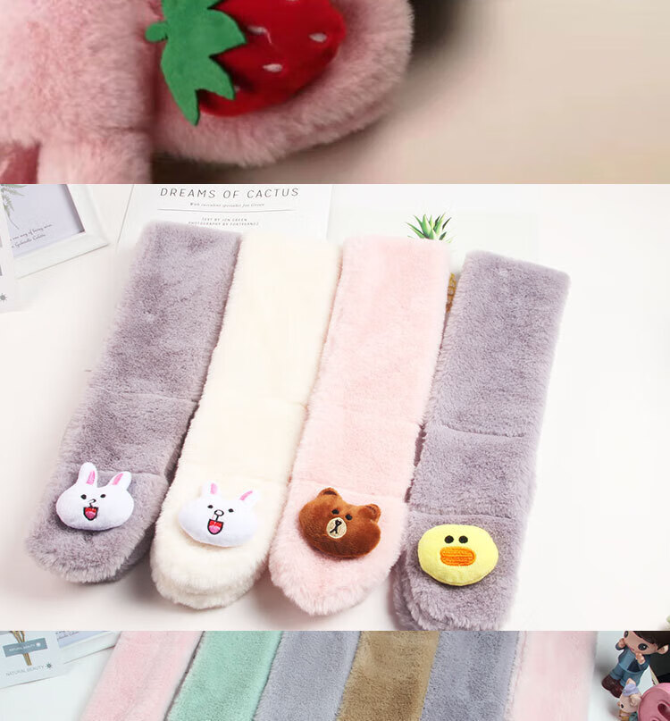 Children's scarf autumn and winter plush parent-child Christmas cute thickened cartoon imitation rabbit scarf bear white 72-76cm