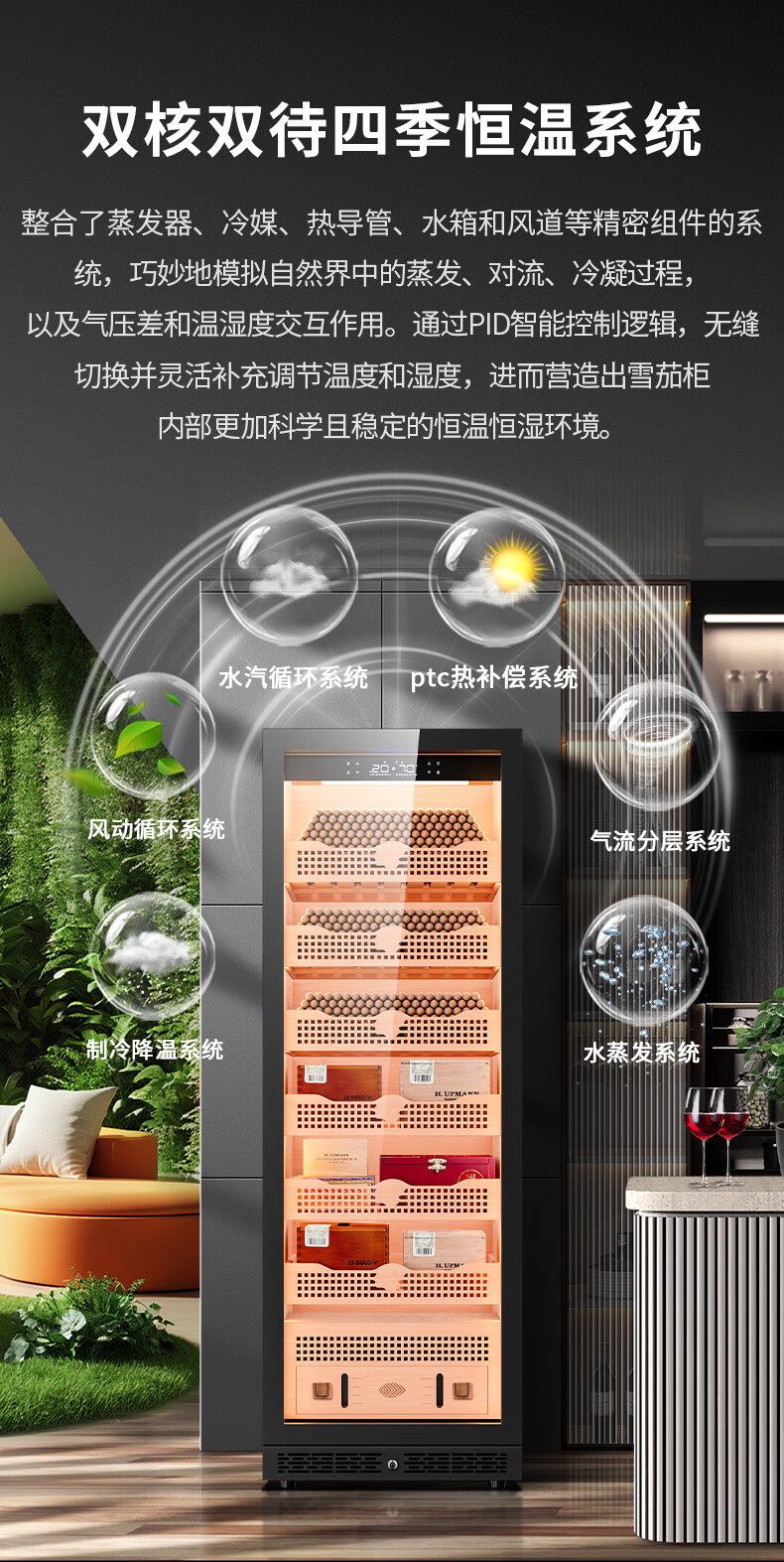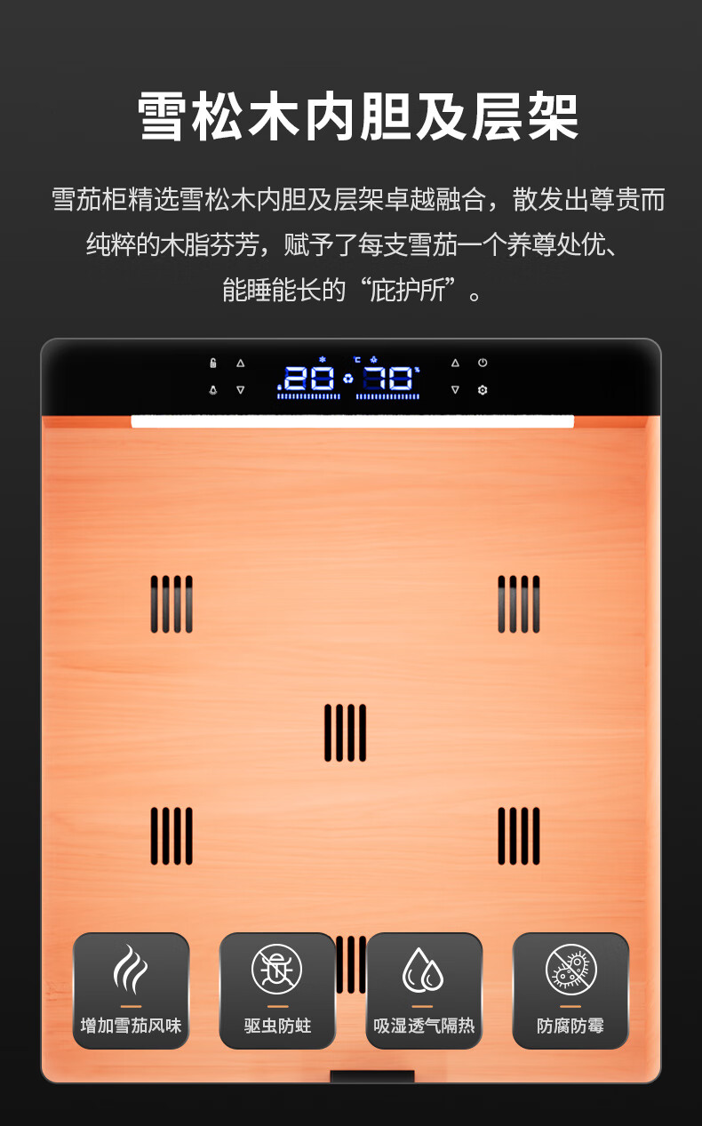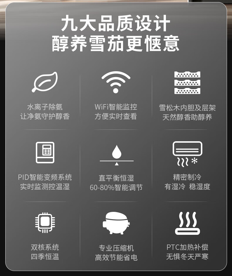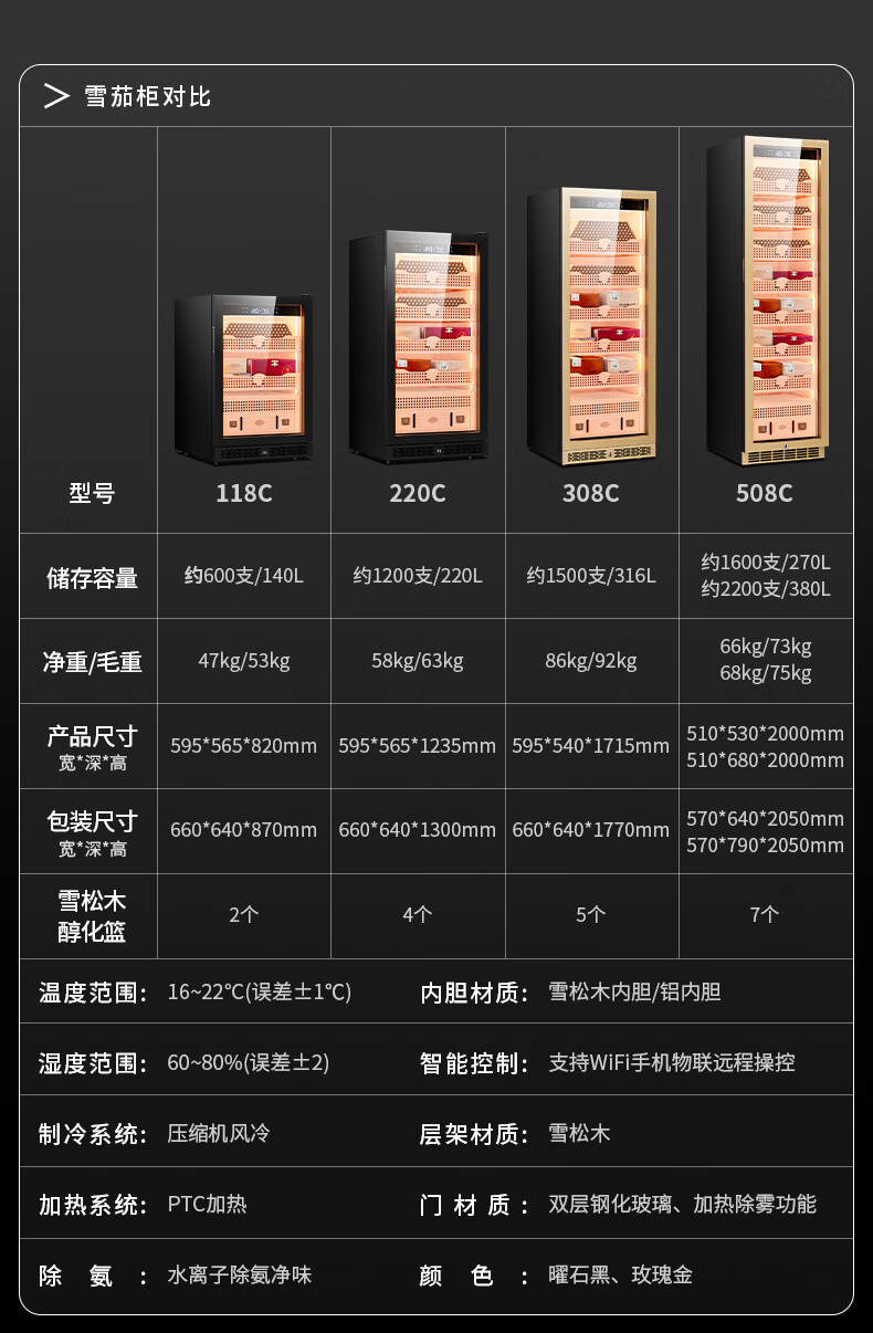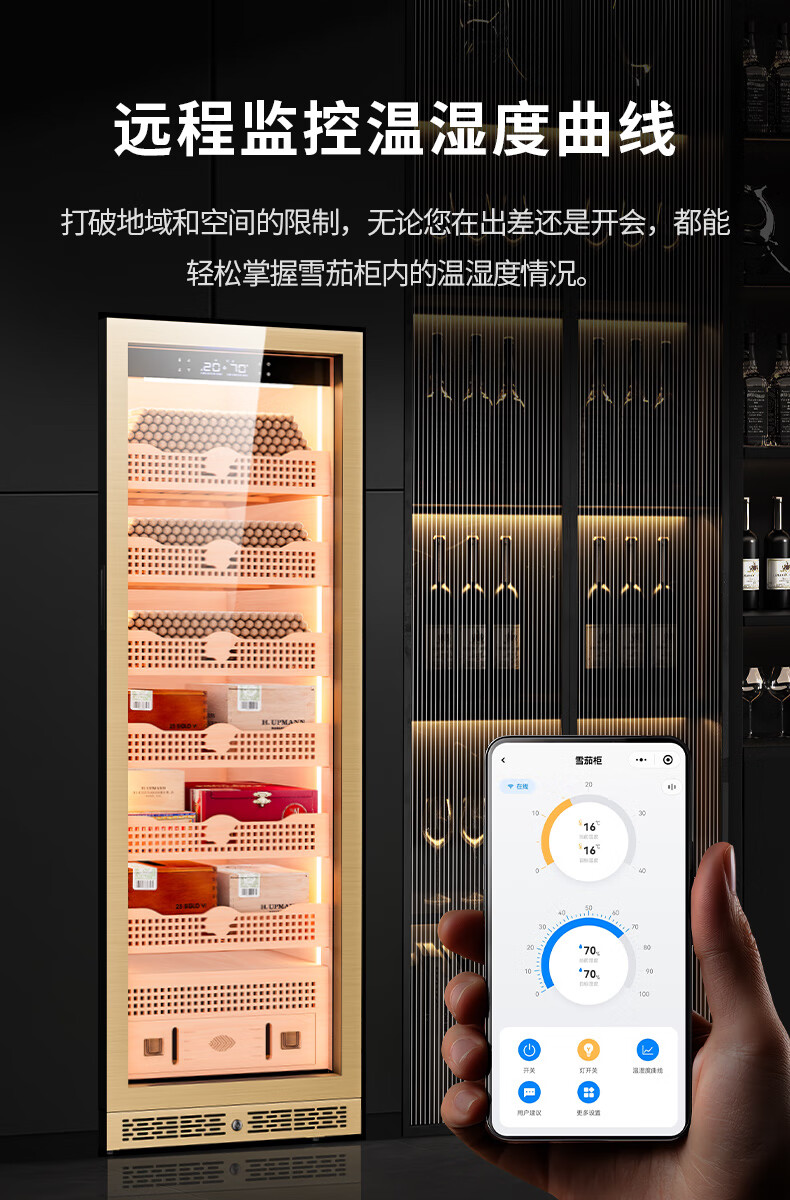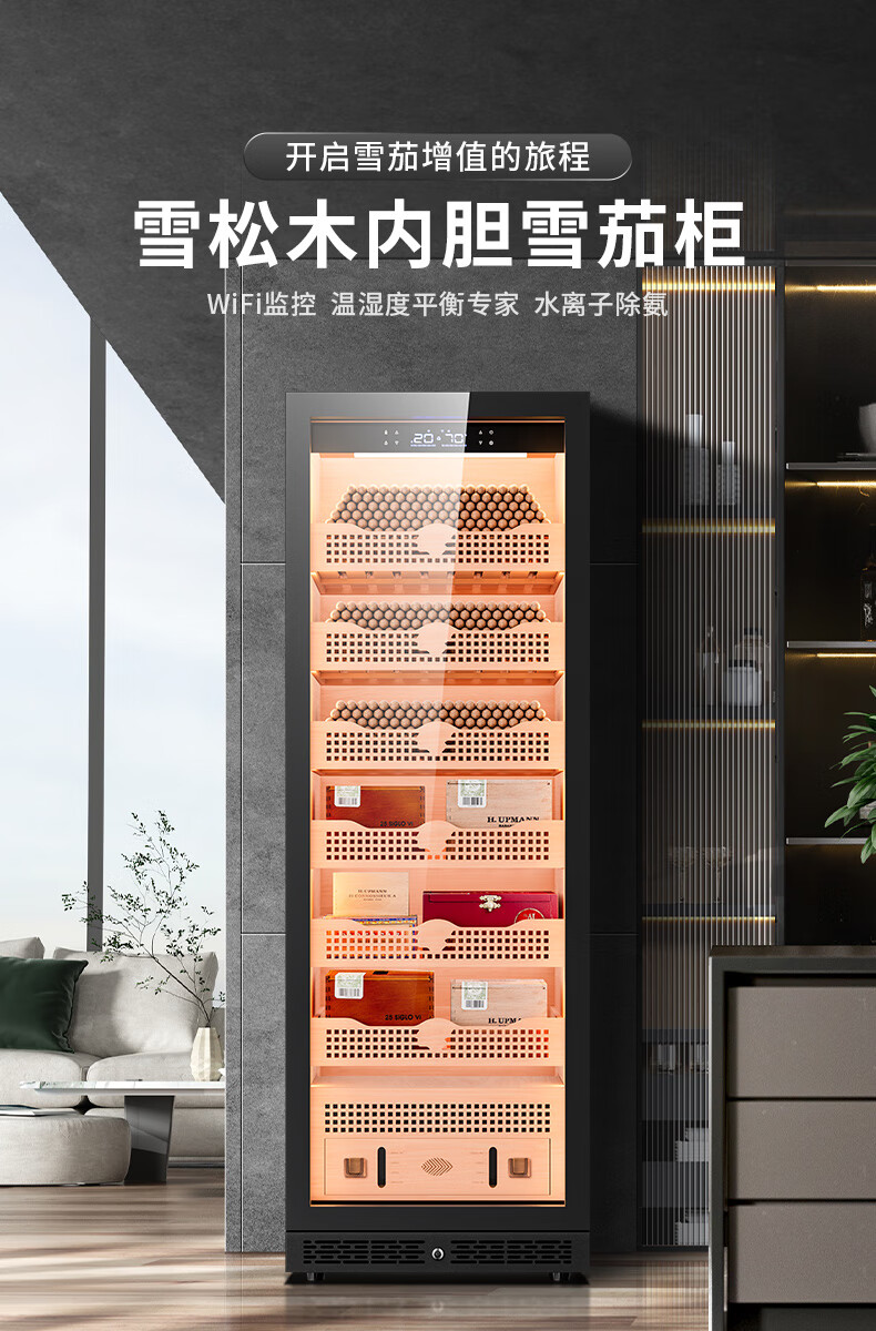 CIGARLOONG 408C cigar cabinet, precise constant temperature and humidity, cedar wood liner, alcoholized water ion ammonia removal, cigar humidifier, smart WiFi remote control, compressor refrigeration cabinet, cigar cabinet, obsidian black luxury accessories, purified ammonia + WiFi + cedar wood liner and shelf