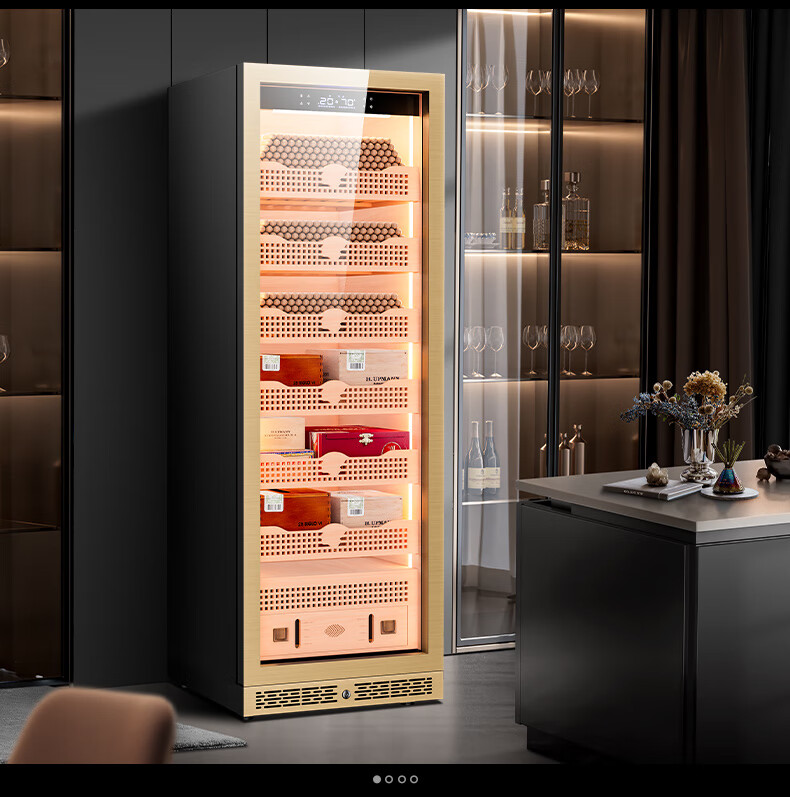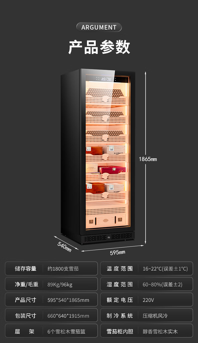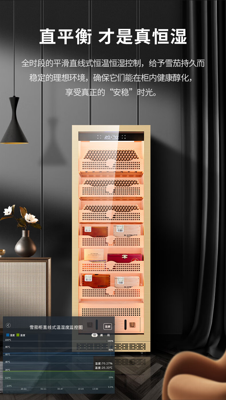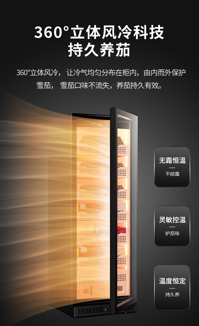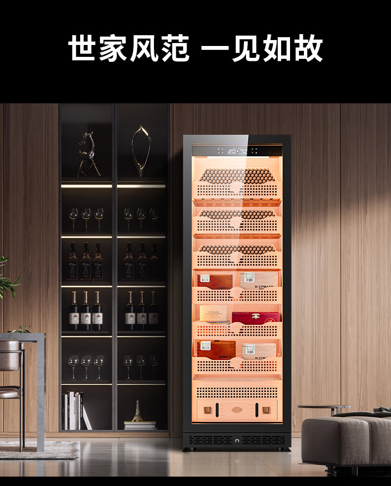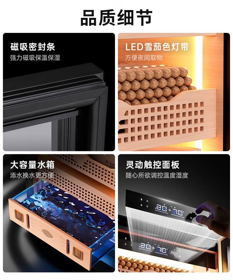 CIGARLOONG 408C cigar cabinet, precise constant temperature and humidity, cedar wood liner, alcoholized water ion ammonia removal, cigar humidifier, smart WiFi remote control, compressor refrigeration cabinet, cigar cabinet, obsidian black luxury accessories, purified ammonia + WiFi + cedar wood liner and shelf